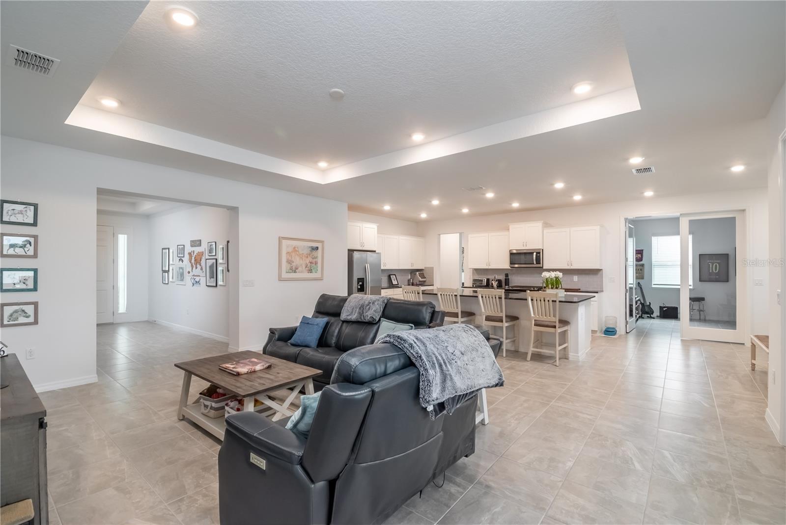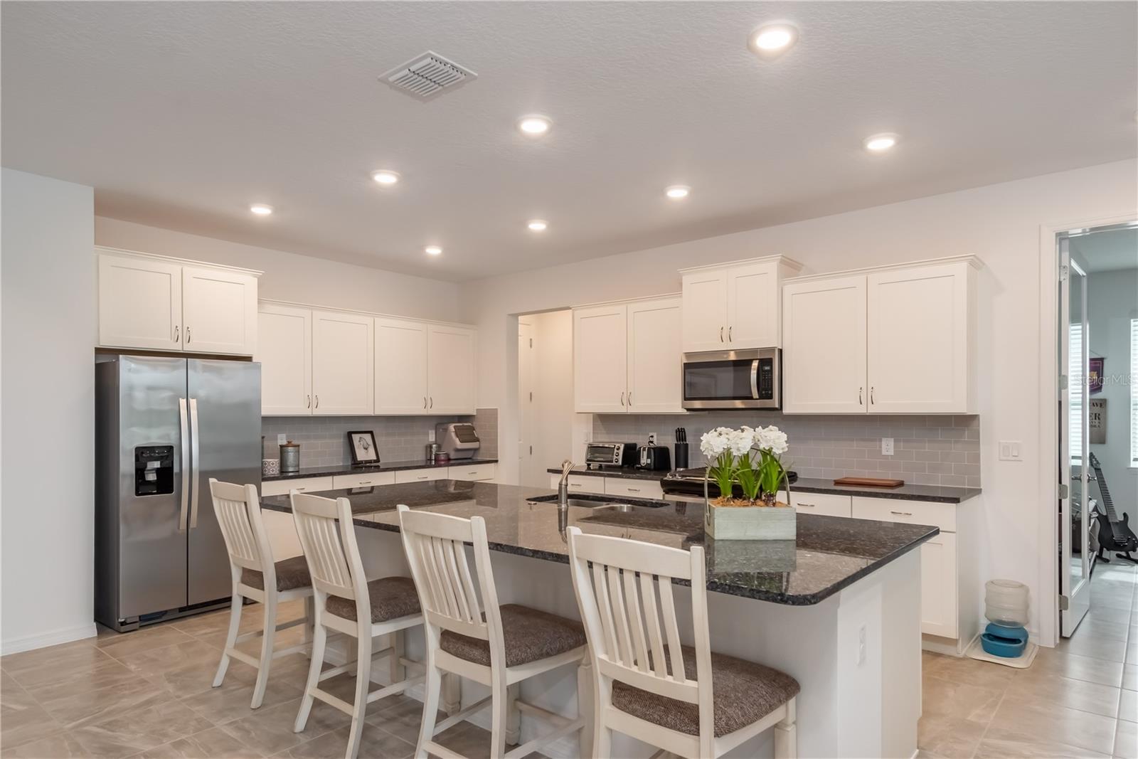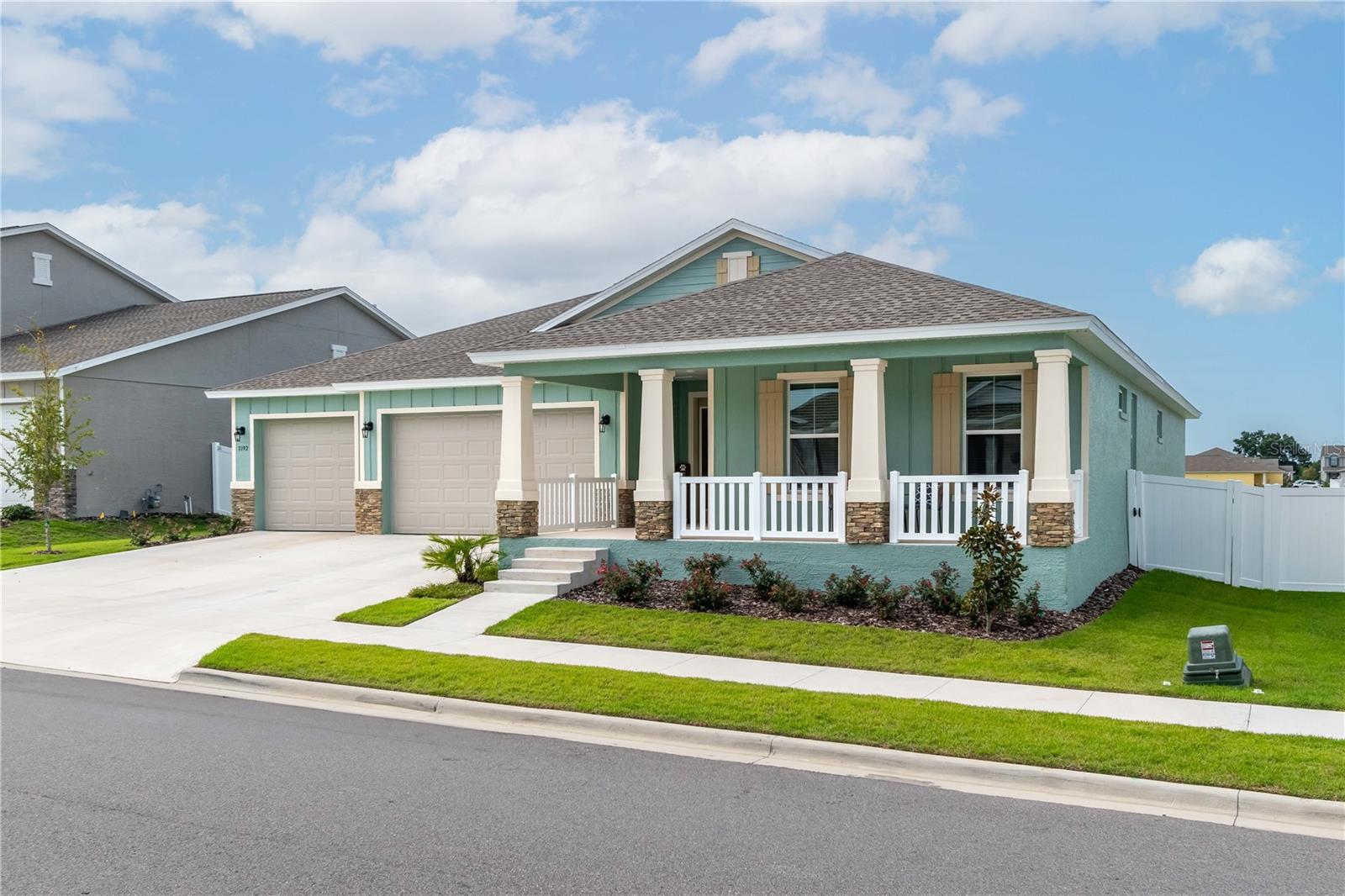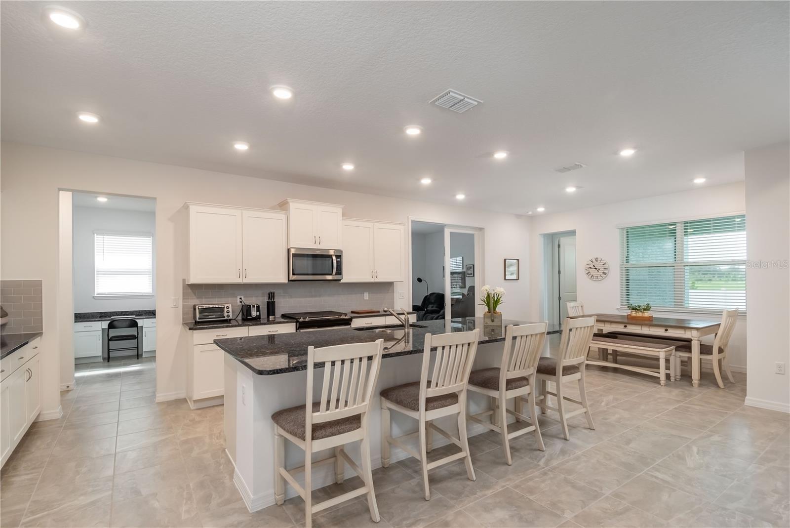 Situado na comunidade altamente procurada de Calesa Township, este modelo de acácia de Calesa, que vivia em casa, foi concluído em 2023 e é uma opção notável a considerar. Com paisagismo de bom gosto, uma grande varanda coberta e opções de tinta externas modernas, o apelo desta casa é óbvio, mesmo desde o primeiro olhar. Oferecendo um total de 4 quartos e 3 banheiros, o interior apresenta opções de design orientadas a detalhes, incluindo tetos altos e pisos de ladrilhos por toda parte. Entrando para dentro, o vestíbulo apresenta detalhes de teto dividido e um cubinho de barro, perfeito para casacos e sapatos. Além, a área de estar possui um amplo espaço e detalhes do teto da bandeja, todos diretamente abertos à cozinha para adicionar a facilidade. Para quem gosta de cozinhar, a cozinha está bem equipada com bancadas em granito expansivas, utensílios de aço inoxidável, uma grande ilha central com bar de café da manhã, uma enorme despensa com prateleiras e um recanto de café da manhã adjacente. Logo fora da cozinha, há um escritório formal com armários embutidos, bancadas e espaço de trabalho, além de uma sala ou sala de família separada com portas francesas que oferecem um espaço fantástico para vários usos. Cada quarto é grande e convidativo, com uma suíte primária extra grande que é particularmente notável com tetos de bandeja, uma suíte privada com vaidades duplas, um enorme chuveiro e grandes armários. Na parte de trás da casa, há o espaço tranquilo perfeito para você desfrutar de privacidade-totalmente cercado com cercas de privacidade de vinil, o quintal oferece muito espaço, todos esquecidos por um grande Lanai, fechado pela tela. Outros recursos notáveis incluem a garagem de 3 carros anexada, bem como uma grande lavanderia com pia adicional e armazenamento de gabinete. A Calesa Township oferece aos residentes uma extensa lista de comodidades em estilo resort, incluindo uma piscina com construção de cabana coberta e splash pad, churrasqueiras ao ar livre e áreas de churrasco, um parque de playground e um lote, basquete em quadra completa, campos de futebol, uma escola pública de K-8 no local e o Fast Aquatic Center. A comunidade também possui 4 quilômetros de trilhas com várias surfes, túneis de pedestres para viagens seguras por toda a comunidade e quiosques de trilhas em toda a comunidade que facilitam a desfrute do sol durante todo o ano. Perto de uma variedade de lojas, restaurantes e escolas, a Calesa Township é o lugar perfeito para quem procura comunidade e conveniência!