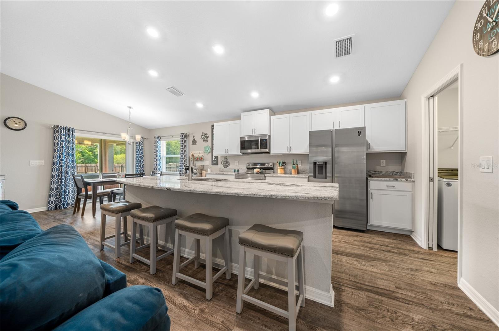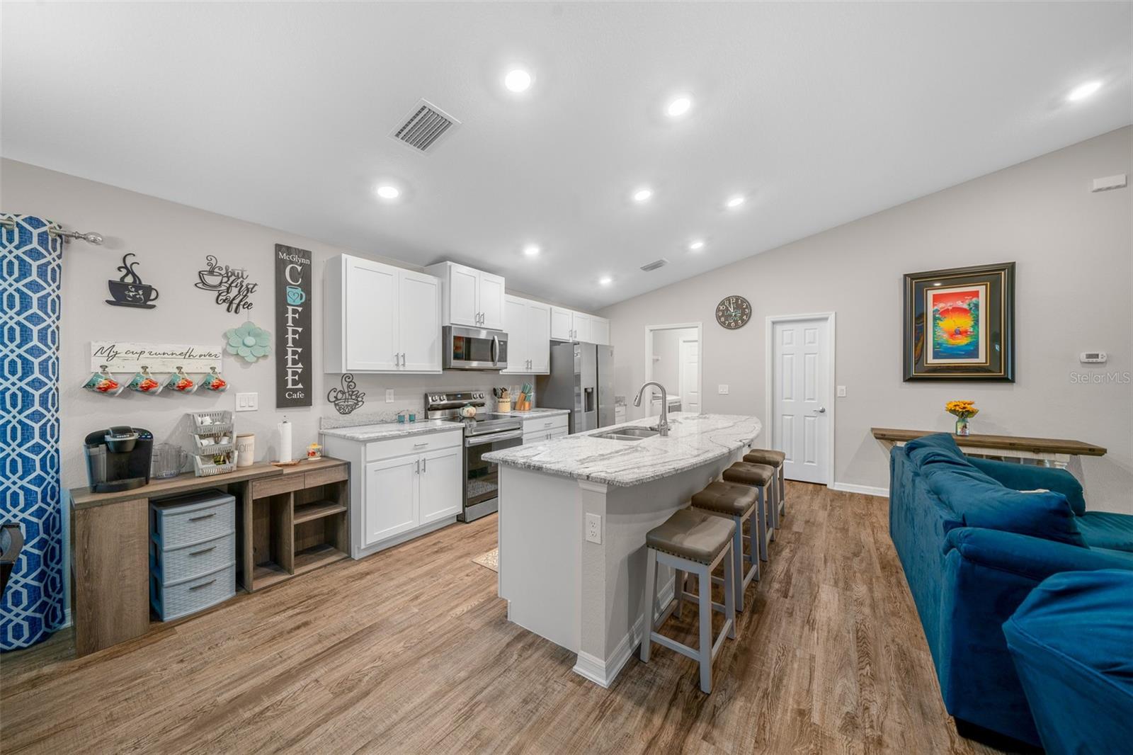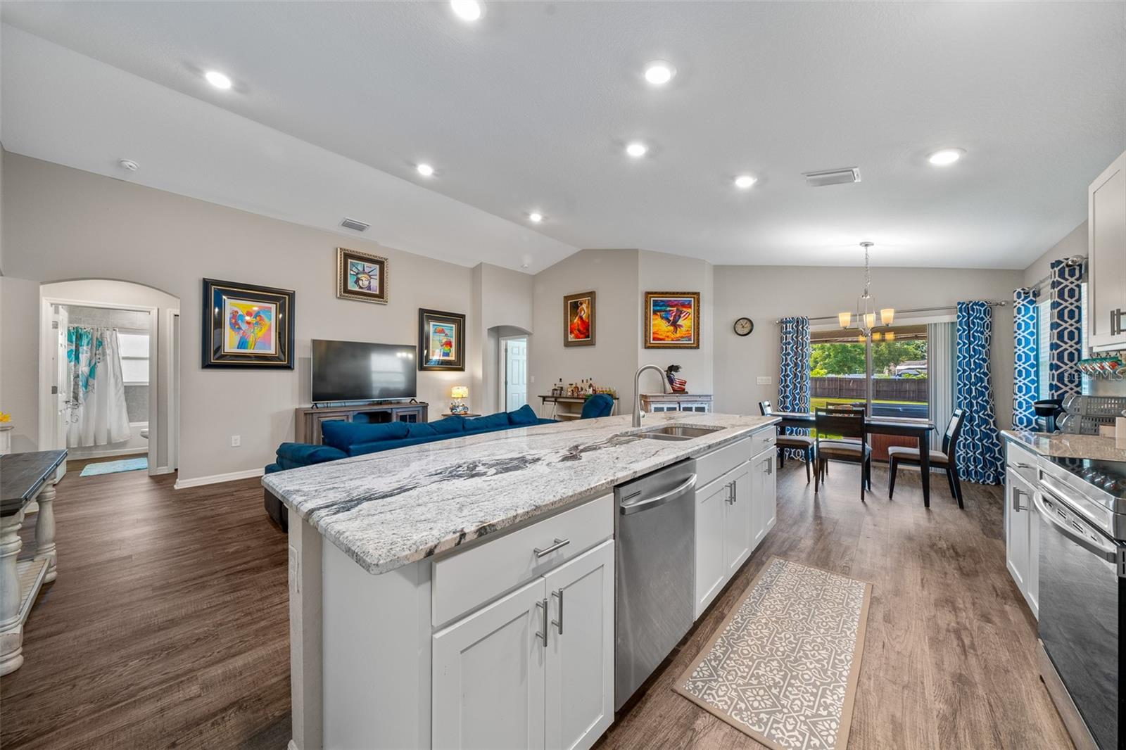 Com a eleição atrás de nós, o vendedor está oferecendo um INCENTIVO AO COMPRADOR de até 3% para pagar os custos de fechamento ou reduzir a taxa de juros! Esta casa foi construída em 2021 e foi gentilmente amada!! Com estilo artesanal, esta casa fica em um terreno premium que oferece muito espaço para passear e estacionar seu trailer. Uma charmosa varanda frontal recebe você, convidando-o a uma planta aberta para receber familiares e amigos. A casa possui 3 quartos, 2 banheiros em uma planta dividida com conceito de vida aberto. As características internas incluem tetos abobadados, piso de pranchas de vinil, balcões de granito, armários personalizados, despensa e lavanderia com mesa embutida. A suíte principal oferece pia dupla, box amplo e ótimo closet personalizado! Este lote de esquina tem 0,43 acre com sistema de irrigação e o quintal é totalmente cercado. A entrada de automóveis foi alargada para permitir espaço para estacionamento e esta seção de Kingland Country permite que você estacione seus veículos recreativos no quintal.