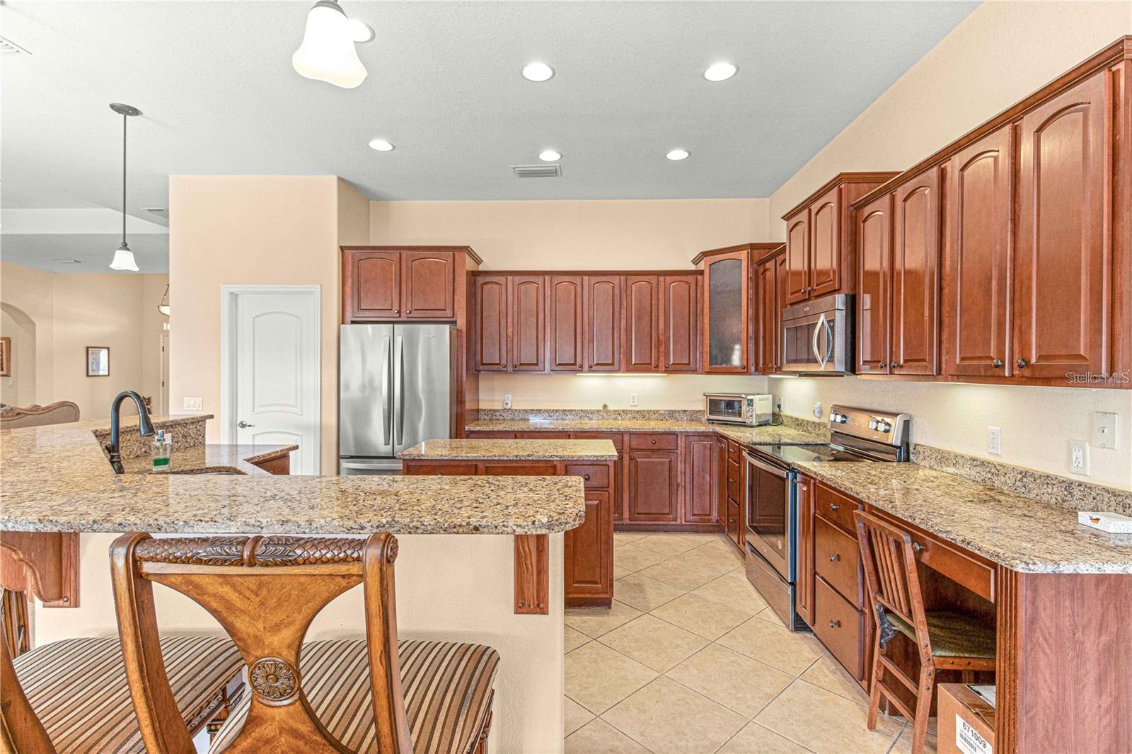 Mudando para a área de Ocala? Casa de alto padrão para quem deseja conforto, tranquilidade e muito espaço. O vendedor oferece incentivo de custo de fechamento de US$ 10 mil. Espetacular casa de 4 quartos (cada um com seu próprio banheiro) + lavabo com garagem para 3 carros no condomínio fechado SE Ocala de Deer Path Estates. Elegante e espaçosa, esta casa oferece muito espaço para uma família extensa ou convidados. Flórida vivendo no seu melhor! Com mais de 4.900 pés quadrados sob o telhado! O belo paisagismo maduro, a entrada frontal coberta e a fachada com detalhes em pedra proporcionam excelente apelo ao meio-fio e uma entrada convidativa. Portas de entrada duplas levam você ao grande hall de entrada de azulejos, onde você encontrará uma planta espaçosa com: tetos de bandeja de 10'-12', escritório/sala de estar/sala de família com lareira de canto e portas francesas para a varanda; cozinha ampla com ilha central e copa bistrô/café da manhã, despensa, balcões de granito, balcão para café da manhã, armários de 42" e novos eletrodomésticos de aço inoxidável; espaçosa sala de jantar; master com área de estar ou de exercícios, 2 closets, quarto duplo penteadeira com penteadeira, banheira de imersão glamorosa e box de vidro; o segundo quarto também é uma suíte com área de estar, WIC grande e "banheira de piscina" com porta própria para o exterior. A lavanderia interna é ampla e possui pia. e armários embutidos. Ao ar livre, você encontrará um grande espaço protegido com uma cozinha de verão e um deck de 12 x 24 pés com vista para o belo quintal. Os recursos adicionais incluem: pisos de cerâmica e madeira em toda a casa; mais. Esta casa de qualidade está situada em um maravilhoso condomínio fechado com HOA de apenas US $ 20 mensais, perto de inúmeras oportunidades de compras, restaurantes e entretenimento. 5 min do parque estadual Silver Springs, 12 min do centro histórico de Ocala, 25 min. W.E.C e 90 min Orlando!