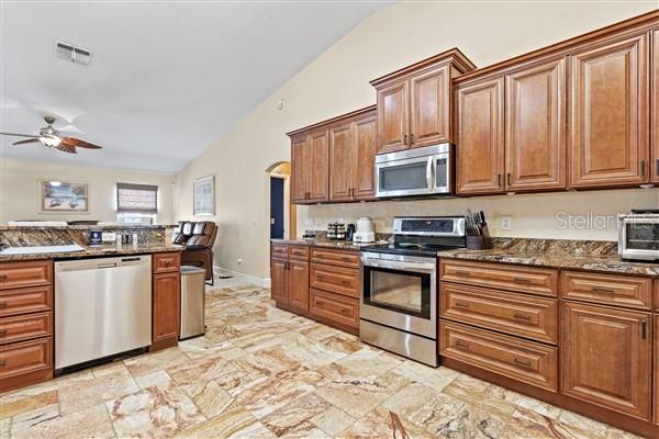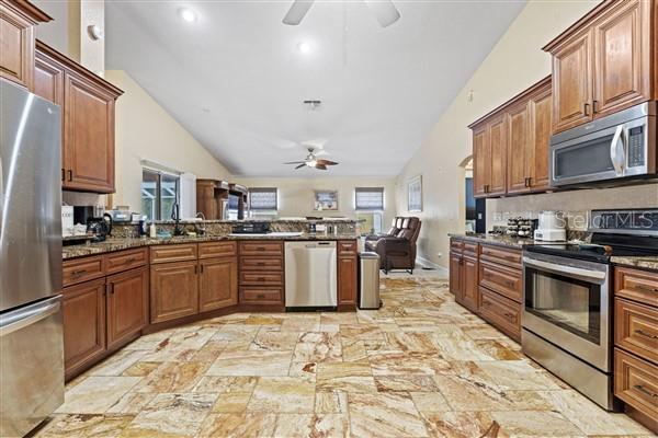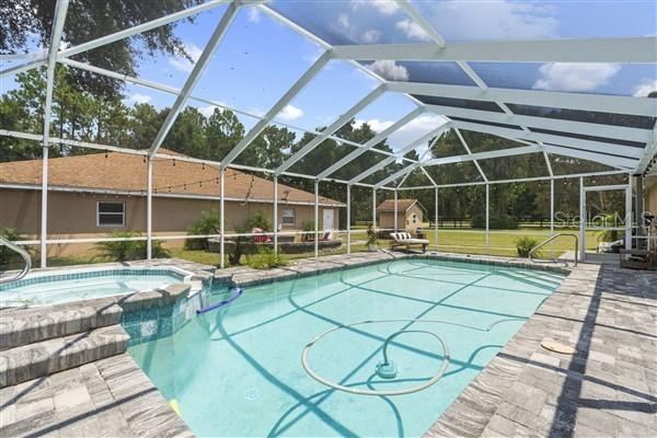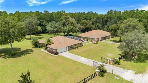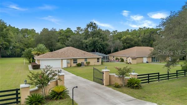 Bem-vindo ao oásis dos seus sonhos! Situada em 2,07 acres, esta propriedade excepcional oferece muito espaço, privacidade e versatilidade, perfeita para compradores que buscam uma experiência de vida única. Com duas estruturas separadas, uma paisagem extensa e inúmeras comodidades, esta propriedade é um achado raro que atende a uma variedade de necessidades. A residência principal possui 2.501 pés quadrados sob ar, apresentando um layout de conceito aberto com 3 quartos, 2 banheiros e uma sala. O quarto principal de grandes dimensões inclui acesso direto à piscina através de portas de correr, um recanto de escritório e um banheiro privativo tipo spa com azulejos personalizados, banheira romana, chuveiro separado e pia dupla com área de maquiagem. A cozinha gourmet é o sonho de qualquer chef, oferecendo bancadas de granito, amplo balcão, armários abundantes, despensa e gavetas inferiores removíveis para fácil acesso. O carpete é destaque nos quartos e na sala de estar, enquanto os azulejos percorrem outras áreas. A sala de estar separada oferece espaço adicional para relaxar e a mobília é opcional. Saia para uma piscina de água salgada pavimentada e protegida com spa e cercada por um belo paisagismo. Seja relaxando à beira da piscina ou aproveitando a fogueira nas noites frias, o espaço ao ar livre é perfeito para relaxamento e entretenimento. Recursos adicionais incluem serviço elétrico atualizado de 400 A, poço e sistema séptico e fibra óptica AT&T e conectividade Starlink. O segundo edifício, uma estrutura de blocos de concreto de 5.300 pés quadrados com mais 2.500 pés quadrados de espaço no sótão, oferece um potencial ilimitado. Anteriormente utilizado para fabricação e distribuição, pode ser facilmente transformado em uma segunda casa, teatro ou negócio doméstico. Este espaço multifuncional inclui acesso ao sótão com deck completo de madeira compensada, múltiplas entradas, porta de enrolar para dois carros, amplo espaço de escritório, lavabo e três unidades de AC com termostatos zoneados. Há também uma quadra coberta de pickles. A vista desta propriedade é realçada por belas árvores e espaços abertos que proporcionam sombra e tranquilidade. Esta propriedade também dispõe de acesso fechado com duas entradas para facilitar a entrada e um perímetro totalmente vedado. Um lote opcional de 1,7 acres pode ser incluído na venda ou adquirido separadamente, oferecendo privacidade adicional ou oportunidades de desenvolvimento. Experimente o melhor da Flórida vivendo com amplo espaço para família, convidados ou empreendimentos comerciais. Não perca a oportunidade de personalizar este imóvel único!
