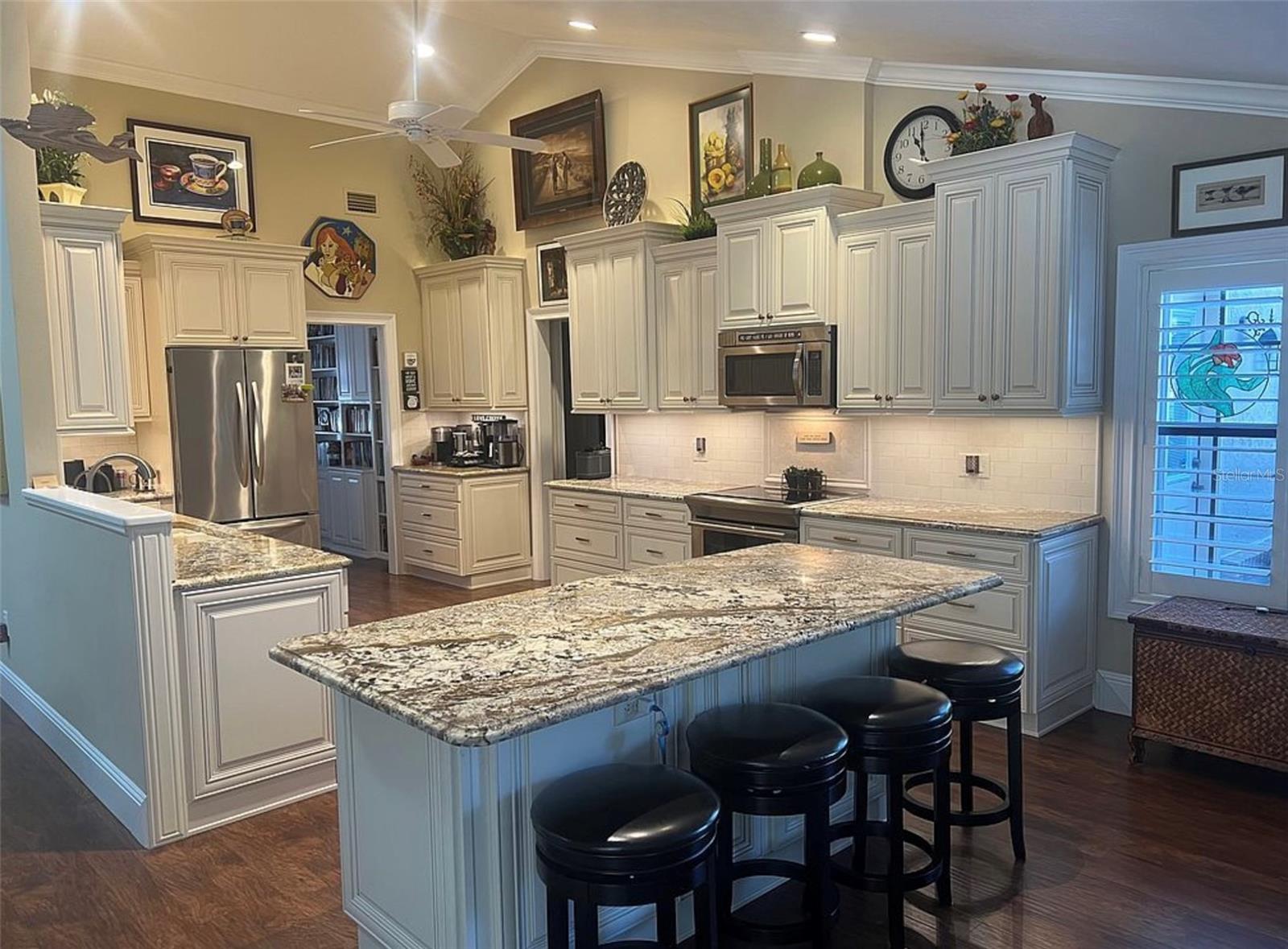 Descubra esta encantadora casa no coração de SE Ocala, perfeitamente situada em um espaçoso terreno de esquina de quase 1/2 acre. Esta propriedade convidativa possui 3 quartos, 2 banheiros completos e um conveniente lavabo, tornando-a ideal para famílias e convidados. Entre em uma planta aberta que conecta perfeitamente as áreas de estar, jantar e cozinha, aprimorada por tetos de catedral que fazem este espaço parecer aberto e iluminado. A cozinha atualizada possui eletrodomésticos modernos, bancadas elegantes e uma despensa ampla. A ampla sala de estar e sala de jantar são ideais para entretenimento. As portas francesas levam você para fora da área de jantar até uma varanda nos fundos, onde você pode relaxar e desfrutar da vista da piscina, perfeita para relaxar e se divertir ao ar livre. Ao lado da cozinha, uma versátil sala de bônus oferece infinitas possibilidades, quer você precise de uma biblioteca aconchegante, de um escritório produtivo ou de uma área de estar adicional. O amplo quarto principal serve como retiro, completo com um amplo closet e banheiro privativo para maior conforto. A lavanderia foi cuidadosamente projetada com espaço extra no armário, pia e geladeira extra, tornando as tarefas diárias mais convenientes. A garagem para 2 carros inclui uma oficina anexa, que também poderá ser utilizada como espaço extra de arrumação. Esta casa tem excelentes recursos adicionais, como telhado novo (2022), sistema de irrigação, aquecedor de água sem tanque e gerador para toda a casa. Situada num bairro tranquilo e bem estabelecido, esta casa oferece privacidade e um sentido de comunidade. Esta bela propriedade combina comodidades modernas com um ambiente sereno, tornando-a um achado raro. Não perca a chance de fazer desta sua casa para sempre!