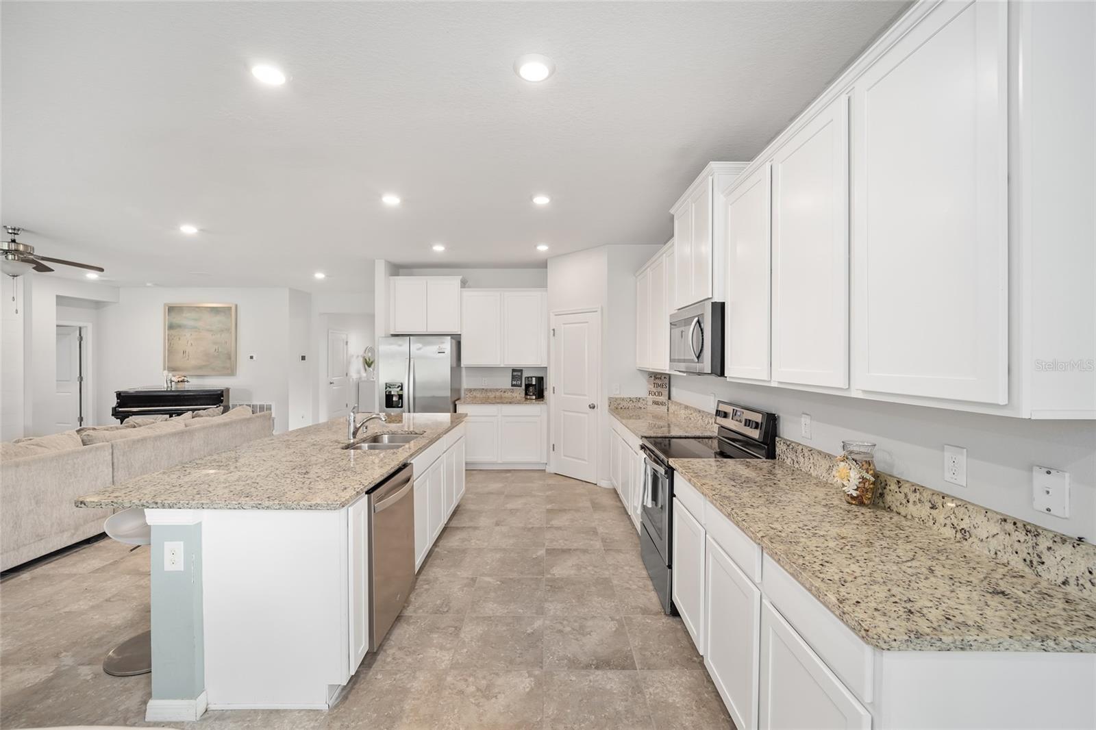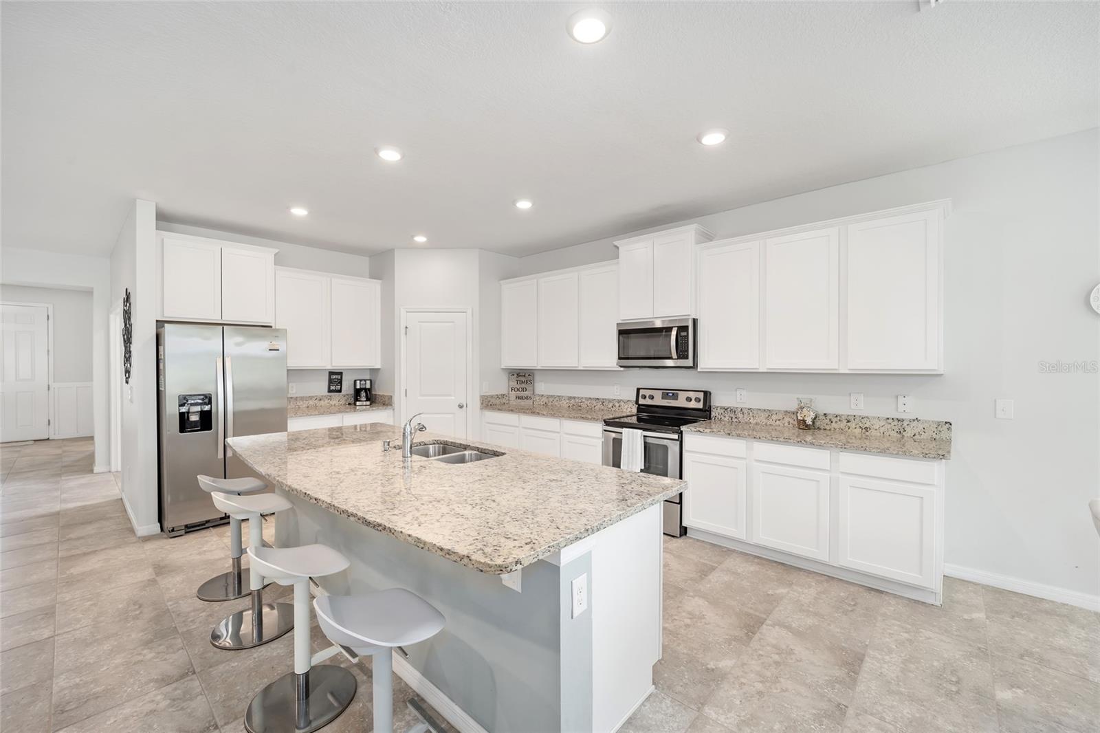 Linda casa MODELO 4/3/3 em NE Summit Place! Lote superdimensionado de 0,31 acres! Casa modelo construída em 2018 com PLANTA ABERTA! Casa espaçosa com 2.551 pés de área útil e garagem para 3 carros! Linda entrada com carpintaria extra! Enorme sala de estar com parede shiplap e controles deslizantes para a varanda. A cozinha tem um grande balcão para café da manhã em ilha, despensa, eletrodomésticos SS, muitos armários e balcões de granito! A suíte principal tem teto falso, DOIS closets, pias duplas, balcões de granito, banheira de jardim, box amplo e vaso sanitário. SUÍTE IN-LAW com banheiro privativo, box amplo e closet! O quarto quarto pode ser usado como escritório ou sala de família! A lavanderia tem um closet adicional e inclui lavadora/secadora. Lanai tem vista para o enorme quintal CERCADO DE PRIVACIDADE. Bairro tranquilo com HOA baixo de US$ 15/mês. Localização conveniente para lojas, restaurantes, parques e a poucos minutos do centro de Ocala!