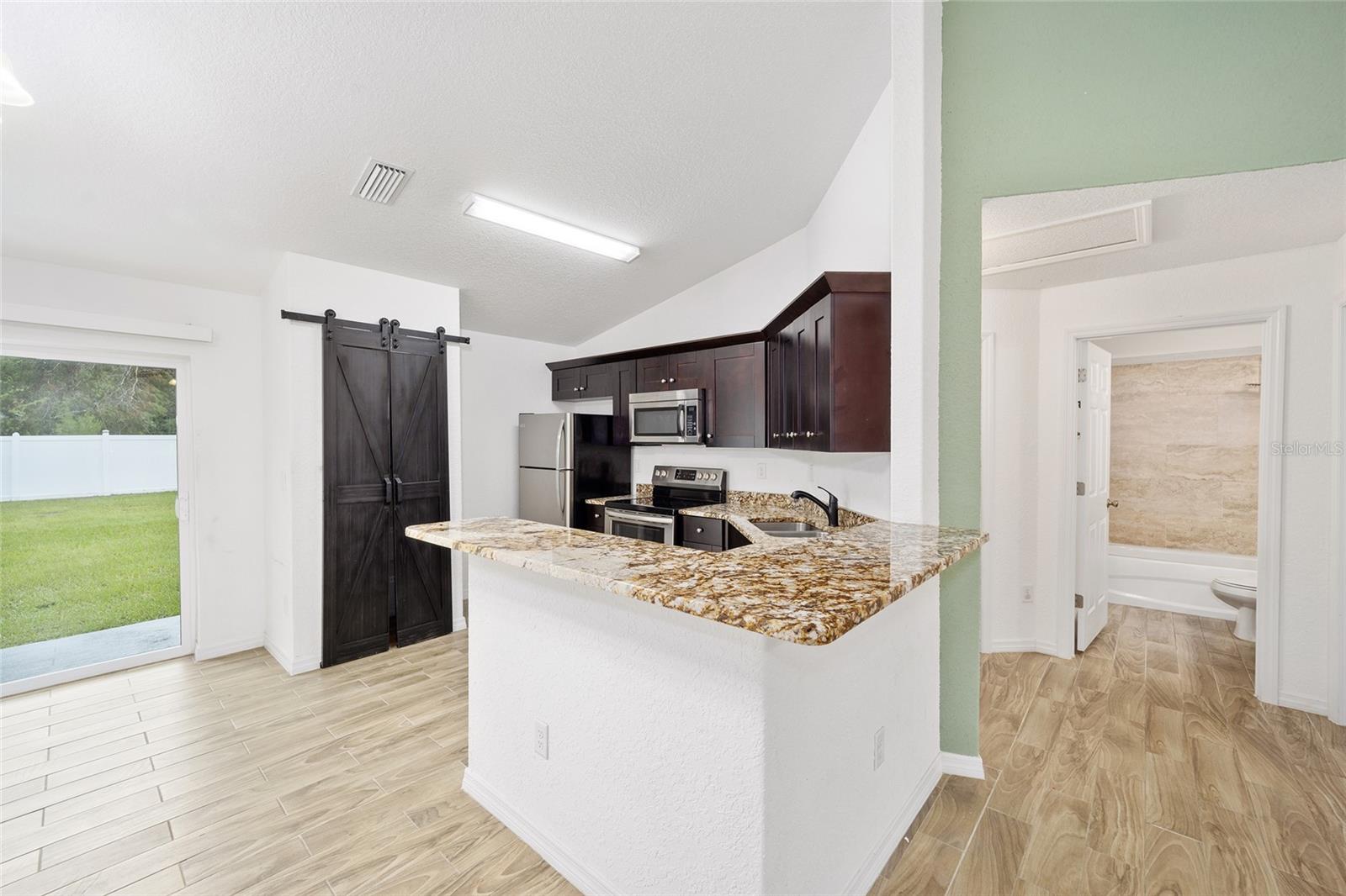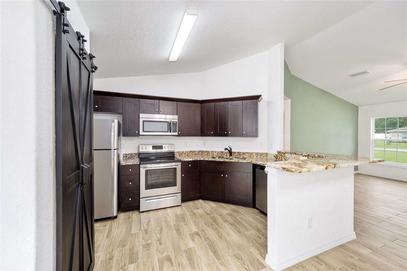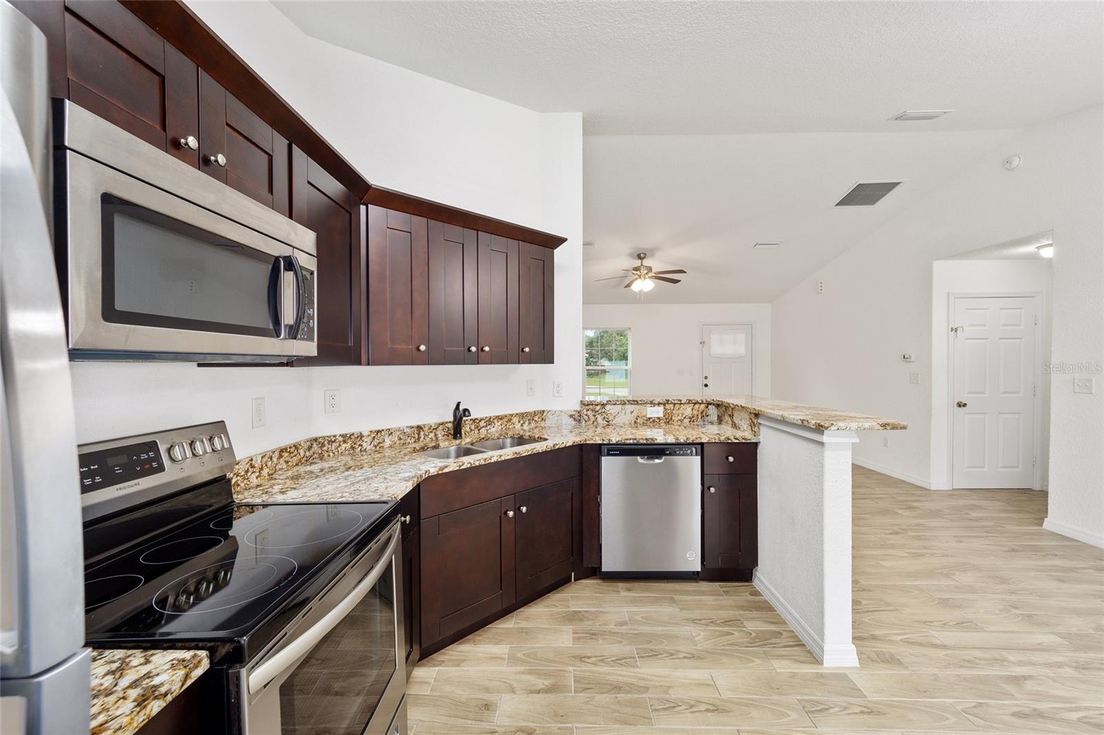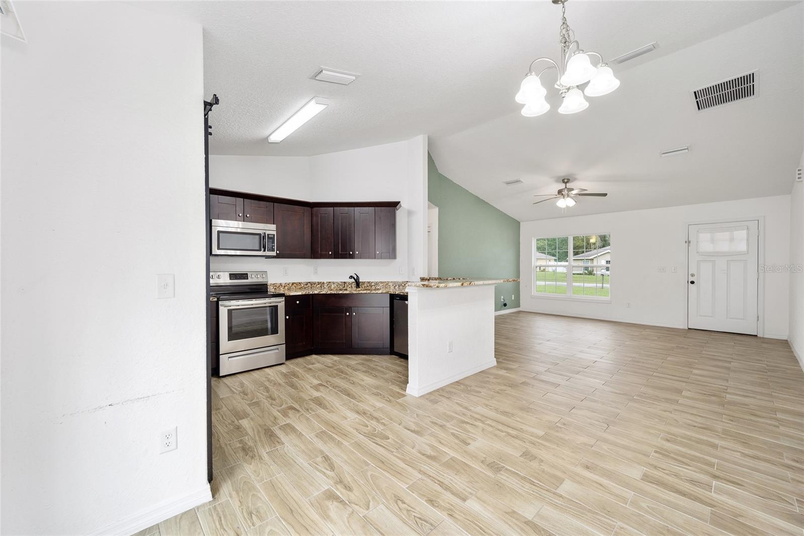 Não perca esta linda casa quase nova pronta para morar imediatamente!!! Localizada na comunidade de Marion Oaks, a poucos quilômetros ao sul da SR 200 no sudoeste de Ocala, esta casa oferece uma localização com um ambiente rural único, a poucos minutos da I-75 e das Aldeias para um deslocamento fácil. Esta casa luminosa e luminosa oferece 3 quartos e 2 banheiros em uma planta aberta e espaçosa, com tetos altos e tábuas de azulejos de fácil manutenção e piso laminado por toda parte. A cozinha bem equipada impressiona com assentos na altura do bar perfeitos para refeições casuais, um pacote de eletrodomésticos de aço inoxidável, bancadas de granito, uma despensa na porta do celeiro para necessidades de armazenamento e uma área de jantar com controles deslizantes para o exterior. A suíte do proprietário oferece um closet espaçoso e um banheiro privativo com chuveiro revestido de azulejos e penteadeira com tampo de granito. Esta casa também oferece um grande quintal cercado de privacidade em vinil, oferecendo muito espaço para reuniões ao ar livre ou piscina. A comunidade de Marion Oaks oferece um centro comunitário, playground, quadras de tênis, academia, biblioteca, mercearia e outros negócios locais sem taxas HOA. Como bônus, esta casa está convenientemente localizada a uma curta distância do Rio Rainbow para praticar tubing, caiaque e passeios de barco e a apenas 30 minutos do Centro Equestre Mundial.