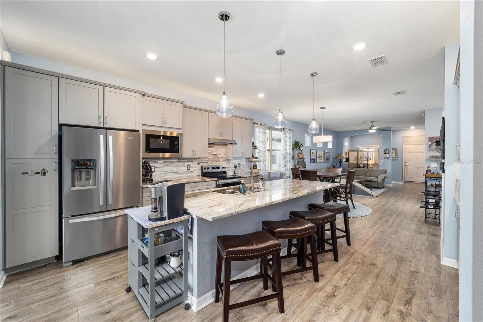 Ao chegar a esta linda e bem conservada casa em Crestview, na comunidade de mais de 55 campos de golfe de Stone Creek, você notará imediatamente o meio-fio e a pedra atualizados ao redor de toda a casa, bem como o belo paisagismo da entrada e a porta frontal de vidro do ponto de entrada . Esta encantadora casa oferece elegância moderna em uma planta aberta. Ao entrar, você apreciará a confortável e aberta sala de estar/jantar antes de seguir para a cozinha bem equipada que certamente agradará o chef. Eletrodomésticos de aço inoxidável, bancadas de granito, backsplash de azulejos, bem como iluminação inferior e superior dos armários da cozinha, iluminação de canister e pendente e prateleiras estendidas nos armários, fazem desta cozinha um local de encontro perfeito. Continue para a parte traseira da casa e relaxe tomando o café da manhã enquanto aprecia a vista tranquila da natureza a partir da marquise. Este quarto tranquilo está sob aquecimento/ar, tem janelas de parede inteira, teto isolado e persianas celulares. Volte para o pátio pavimentado enquanto continua a apreciar a beleza da natureza que esta casa oferece. Uma suíte principal com closet de azulejos e um quarto adicional, lavanderia interna com estantes de despensa, uma sala bônus que pode ser usada como escritório ou escritório e garagem para 2 carros completam esta casa. Um filtro de linha para toda a casa, amaciante de água, tela de garagem e água quente instantânea para a cozinha são atualizações nesta casa única, pois nada foi esquecido. Esta casa também é conectada diretamente ao seu gerador e possui uma luz ultravioleta no gabinete do forno para evitar mofo. Você desfrutará da facilidade de manutenção dos luxuosos pisos de vinil em toda a casa, bem como dos azulejos nos dois banheiros, no closet principal e na lavanderia. A manutenção e irrigação do gramado estão incluídas na taxa HOA, o que deixa mais tempo para relaxamento ou recreação. Faça a sua mudança hoje e comece a desfrutar desta comunidade fantástica! As comodidades são abundantes, incluindo um campo de golfe, piscinas em estilo resort, spa, restaurante e muito mais. Não espere; venha conhecer esta casa requintada hoje mesmo!