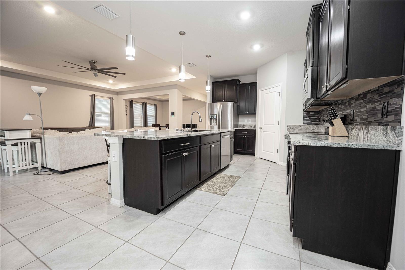 Vendedor motivado !!! Oferecendo concessão de US $ 10.000 para ajudar a diminuir a taxa de hipoteca / custos de fechamento ou redução de preços para o comprador. A bela casa personalizada de Camden Model Home tem uma entrada separada na Law, com cozinha compacta e porta de entrada para casa também. Os extras incluem cerca de vinil personalizada, abridores de portas de garagem a Wi -Fi acionados por cinto com câmera, amaciador de água de grau comercial a custos mais baixos, aspersores adicionais para cobrir todas as áreas de quintal e plantadores, cozinha personalizada, banhos e pisos. Tetos altos, 4 quartos e 3 1/2 banheiros. Quintal cercado com uma figueira e 2 árvores de pêssego. Muitas atualizações para o pacote de construtores, incluindo luminárias e fãs personalizados. Novos painéis solares assumidos que mantêm a conta elétrica abaixo de US $ 50 mensalmente. O HOA inclui todas as comodidades e lixo.