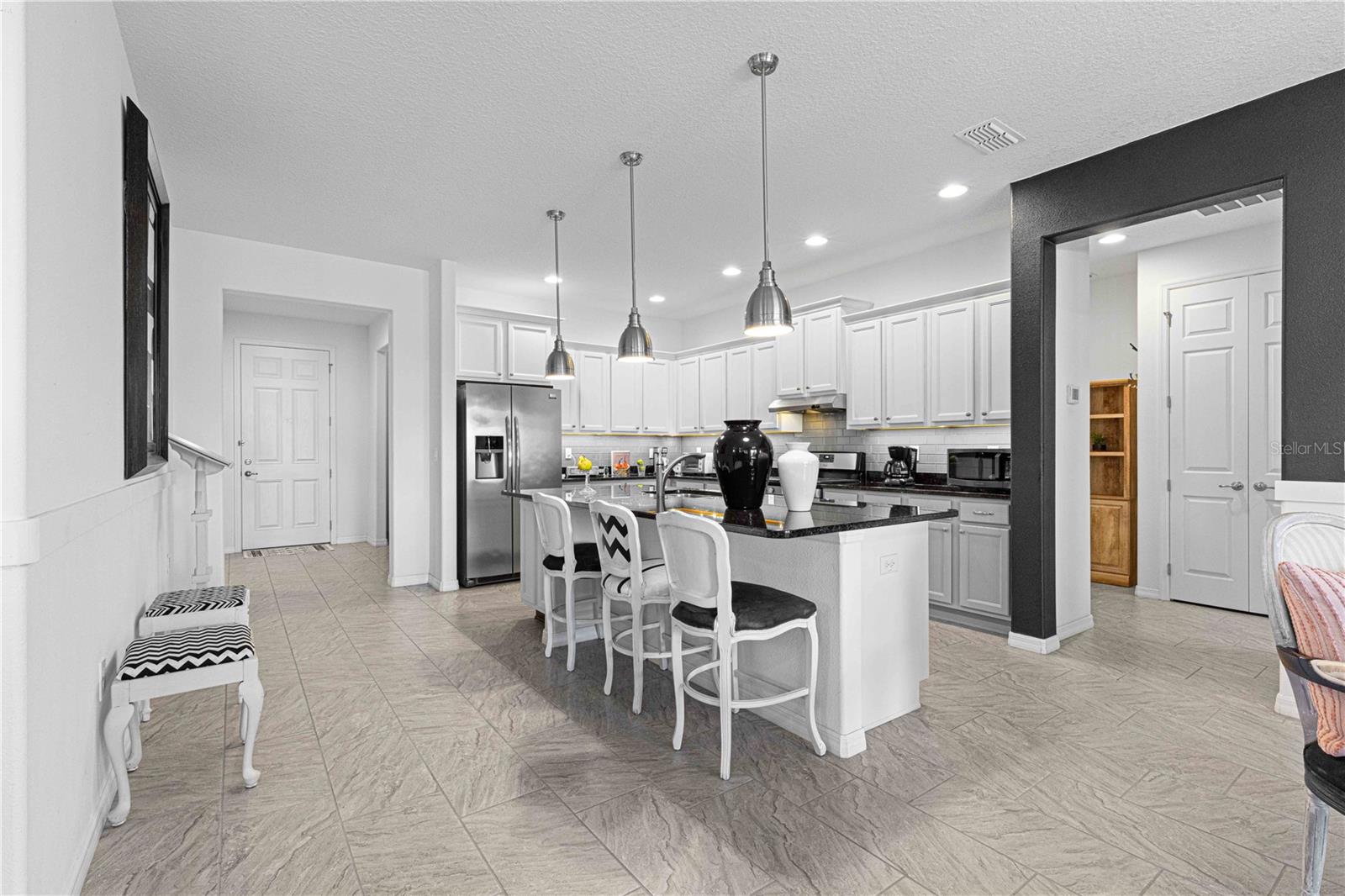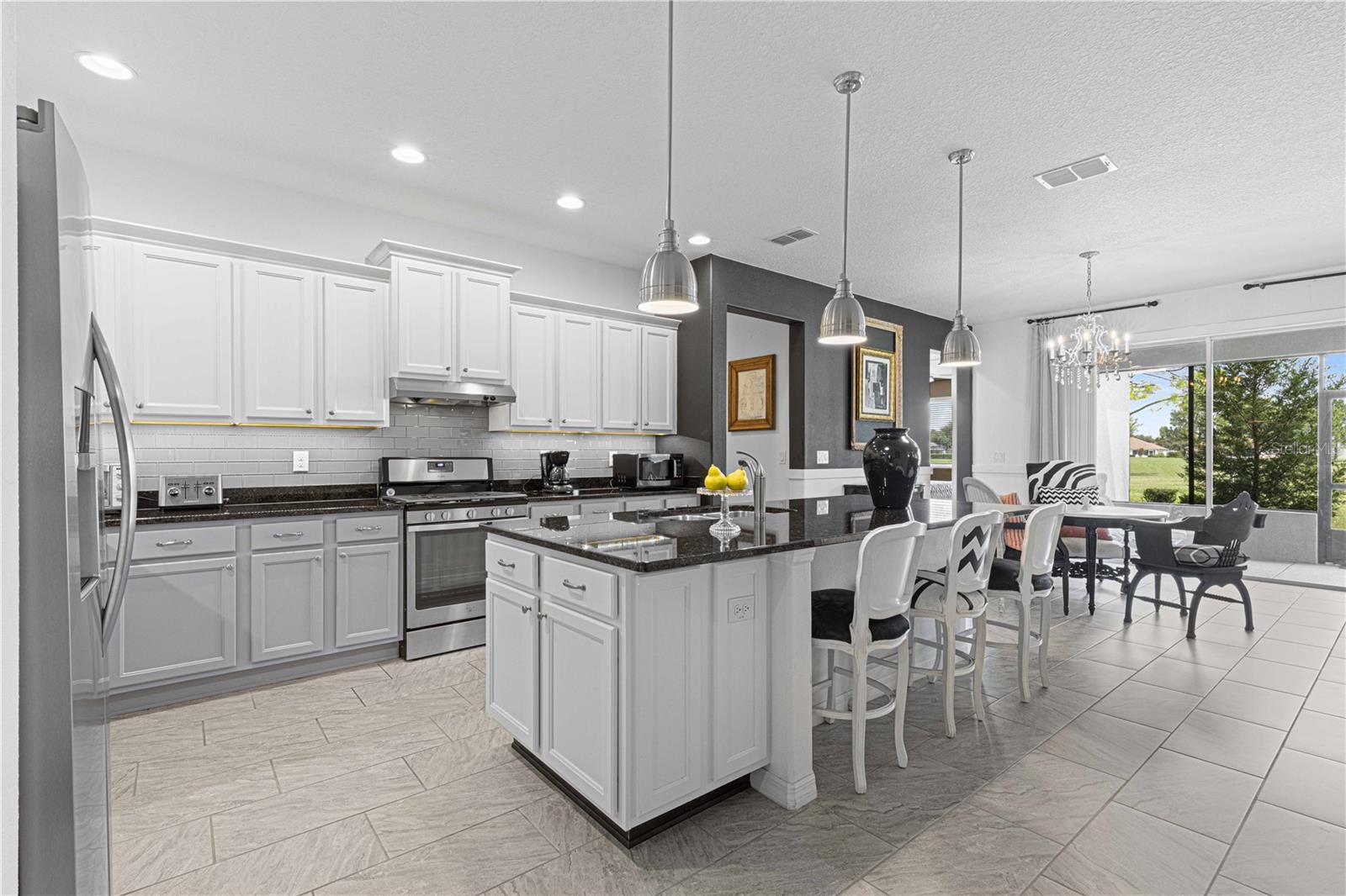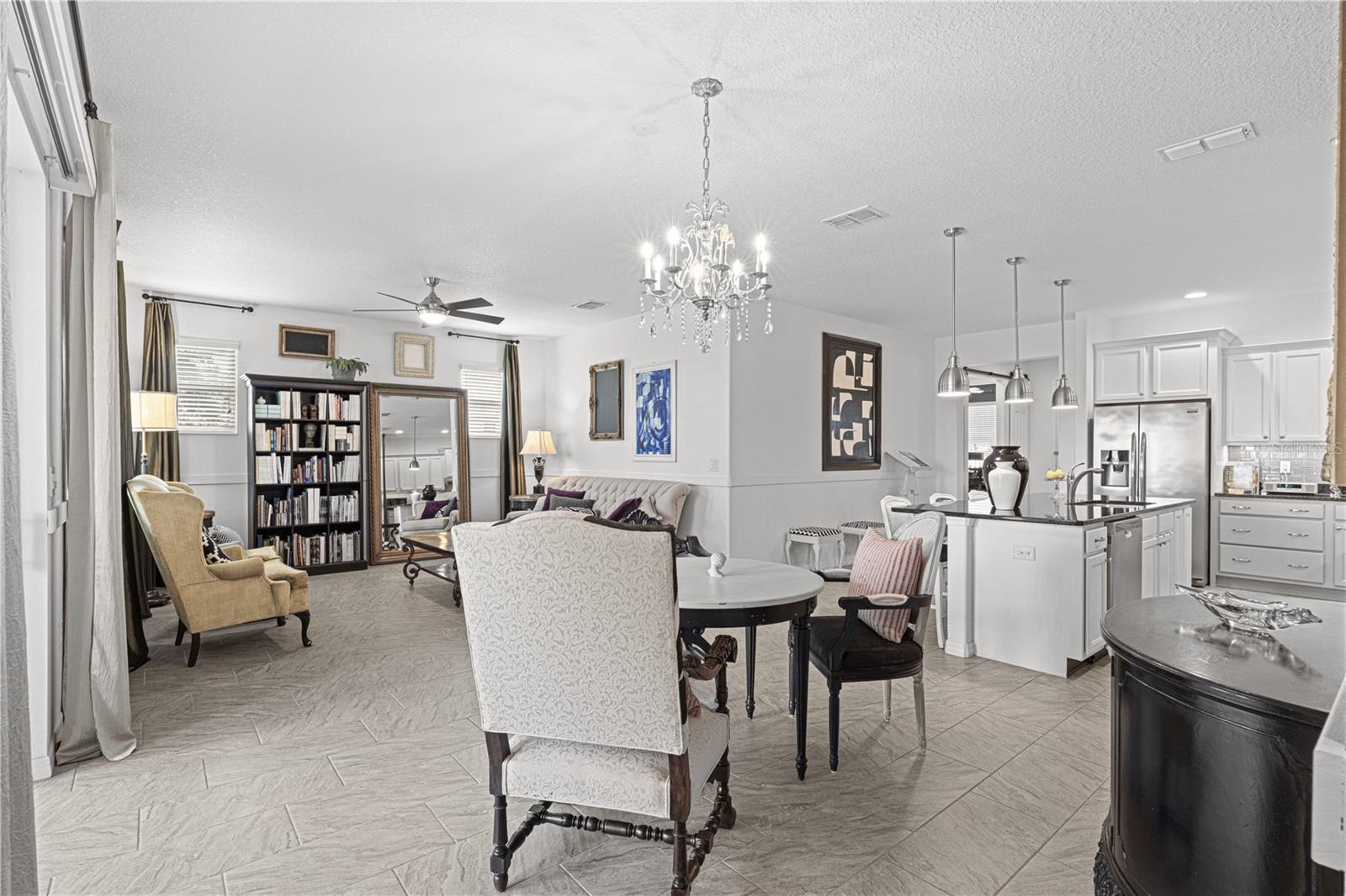 Não espere para marcar sua consulta para ver esta linda casa modelo Ariana localizada na tão procurada comunidade de mais de 55 anos de On Top of the World. Ele fica no lote premium perfeito em um beco sem saída e NO Campo de Golfe! Esta casa de 3 quartos + espaço flexível e 2 banheiros possui muitas atualizações em toda a casa de conceito aberto, SEM carpete. A cozinha possui eletrodomésticos de aço inox, armários de dois tons (muitos deles). Há também uma grande área de ilha/bar com balcões de granito, iluminação sob armários, backsplash de azulejos de vidro e iluminação pendente. Amplamente aberta para a zona de estar e recanto com diversas janelas tornando esta uma casa luminosa e luminosa. A varanda com varanda é o local perfeito para o seu café da manhã e para observar os jogadores de golfe passarem. O espaço den/flex é ideal para uma sala de TV, escritório ou biblioteca. Suas escolhas são infinitas. Um espaçoso quarto principal tem piso LVP e uma área de estar ou mesa. O banheiro principal tem pias com tampo de quartzo para ele e ela, chuveiro com banco e um ótimo closet. Os quartos de bom tamanho têm um banheiro para compartilhar com uma combinação de banheira/chuveiro. A lavanderia possui armários para armazenamento, pia e espaço para mais. O piso da garagem é epóxi, há uma tela na frente e uma saliência para abrir espaço extra para um carrinho de golfe ou oficina. Esta casa tem tudo o que você poderia desejar para sua próxima casa. Ligue para ver hoje.