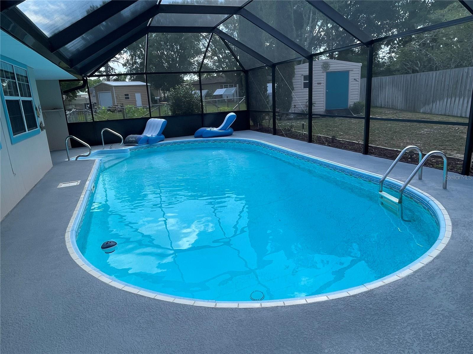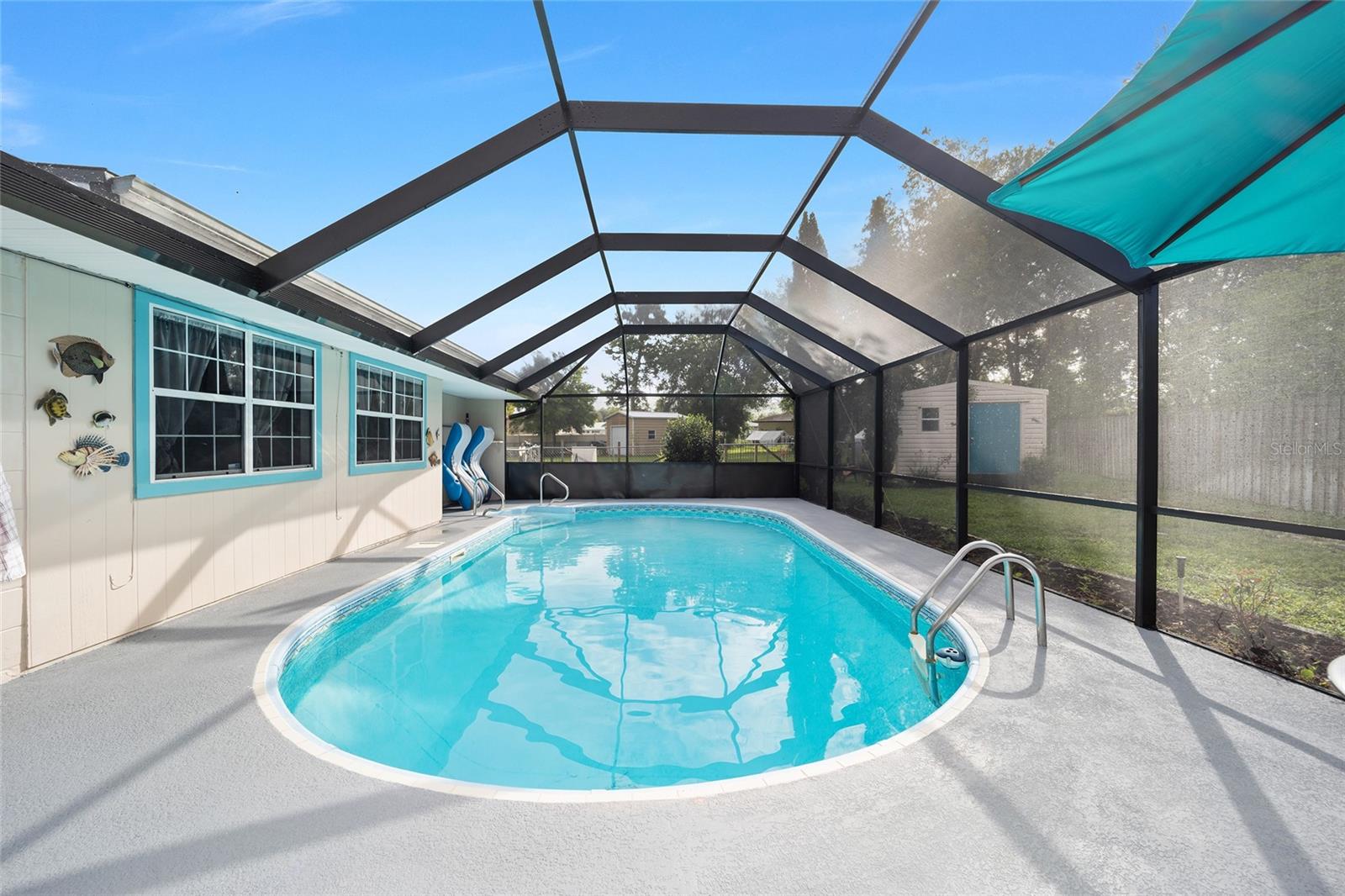 CASA COM PISCINA: Esta espaçosa casa de 3 quartos, 2 banheiros e garagem para 2 carros tem muito armazenamento e possui uma piscina coberta com aquecimento solar. Esta planta dividida é versátil, com espaço para sala de estar, sala de jantar e um escritório com um closet bônus. O quarto principal possui um grande armário e banheiro privativo com balcões de granito. A cozinha possui armários de madeira com sancas, backsplash de azulejos, eletrodomésticos em aço inox e balcões de granito e a sala de jantar possui buffet embutido com tampo em mosaico. Esta casa NÃO TEM taxas HOA e o melhor de tudo, esta casa tem um TELHADO NOVO! Algumas das características incluem novo telhado 2024, novo sistema solar para piscina 2024, nova gaiola de piscina 2024, novo portão de garagem e motor em 2023 e a casa foi recentemente pintada por dentro e por fora.