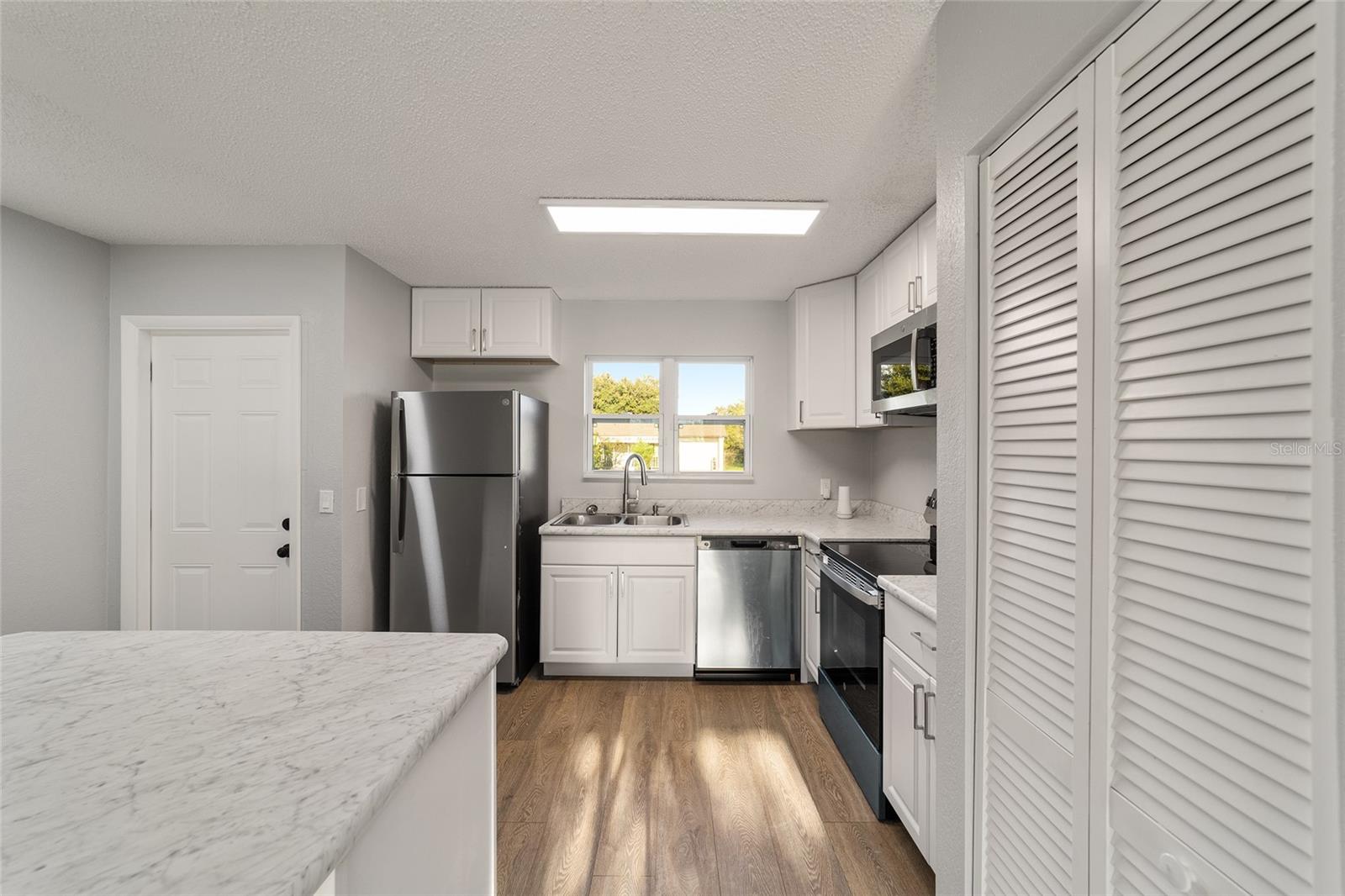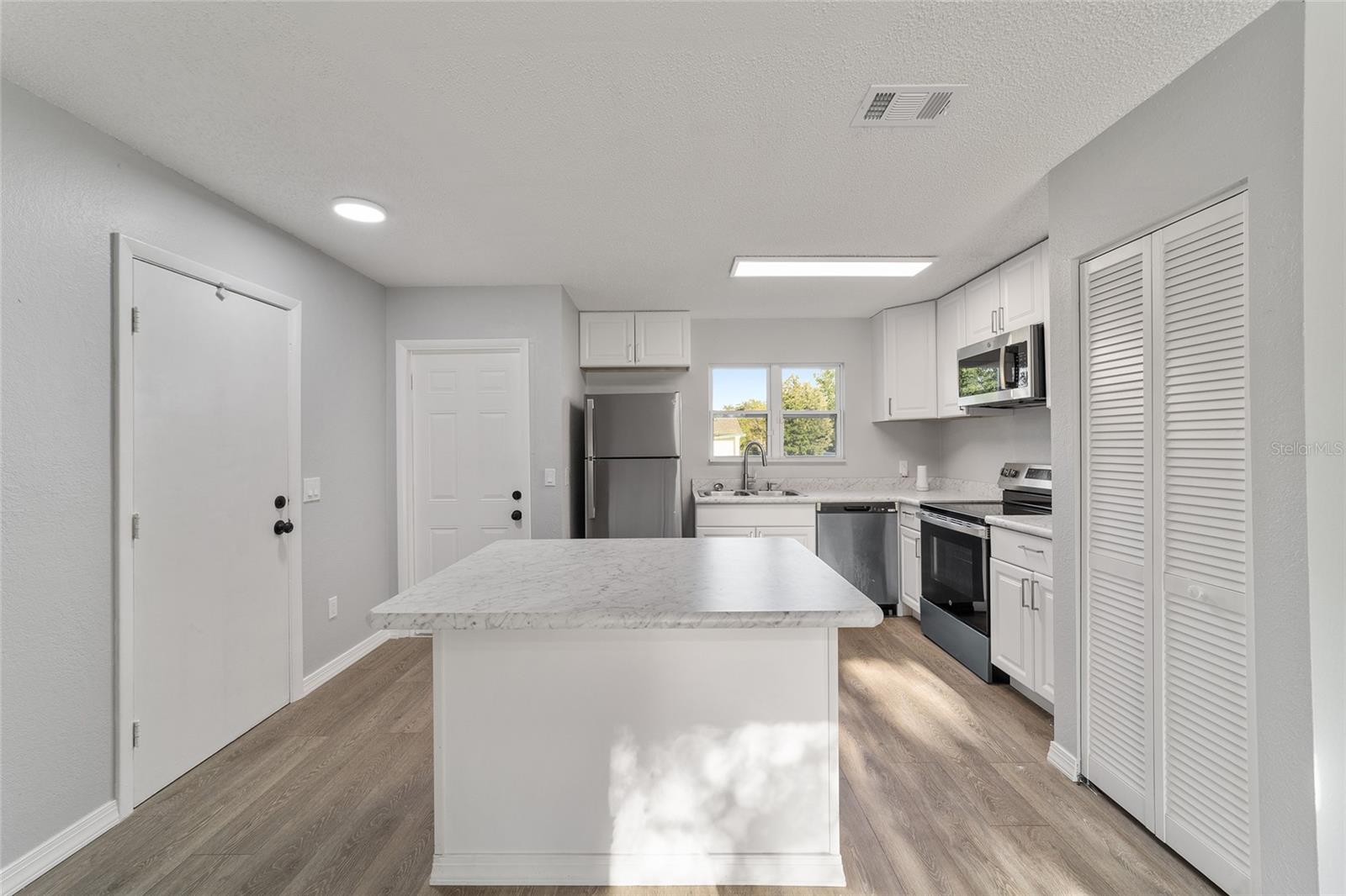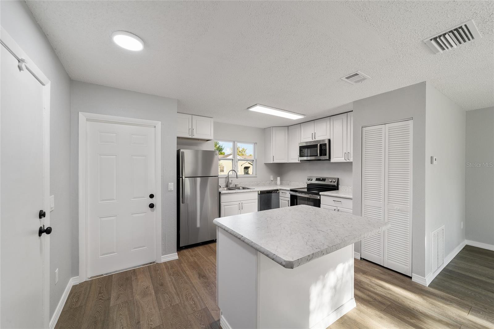 Bem-vindo a esta casa lindamente remodelada de 2 quartos e 2 banheiros, que combina perfeitamente atualizações modernas com charme aconchegante. Entre para descobrir uma cozinha totalmente nova, com armários novos e elegantes, eletrodomésticos de aço inoxidável de última geração e uma espaçosa ilha de cozinha com bar para refeições, ideal para jantares casuais ou receber convidados. A cozinha dispõe ainda de uma cómoda despensa, oferecendo amplo espaço de arrumação. Ambos os banheiros foram completamente refeitos de cima a baixo, apresentando acabamentos e acessórios contemporâneos. Em toda a casa, o luxuoso piso vinílico adiciona um toque de elegância e durabilidade. A área de estar se abre para portas de correr que levam a um quintal cercado e a um encantador pátio externo - perfeito para desfrutar do café da manhã ou de reuniões noturnas. Situada em um terreno de esquina enorme com árvores maduras, esta casa oferece privacidade e amplo espaço para atividades ao ar livre. Atualizações adicionais incluem um novo aquecedor de água e uma unidade de ar condicionado meticulosamente mantida instalada em 2013. Para completar, esta casa vem com garantia residencial, proporcionando tranquilidade aos seus novos proprietários. Não perca a chance de tornar sua esta joia pronta para morar!