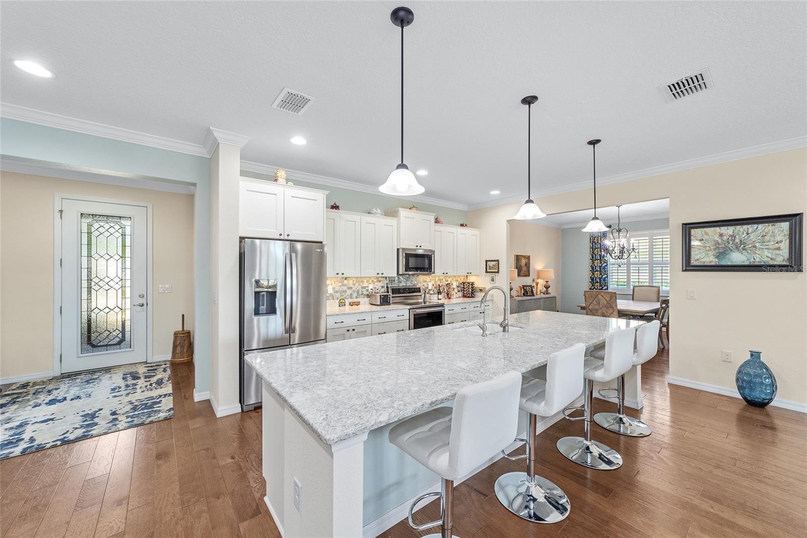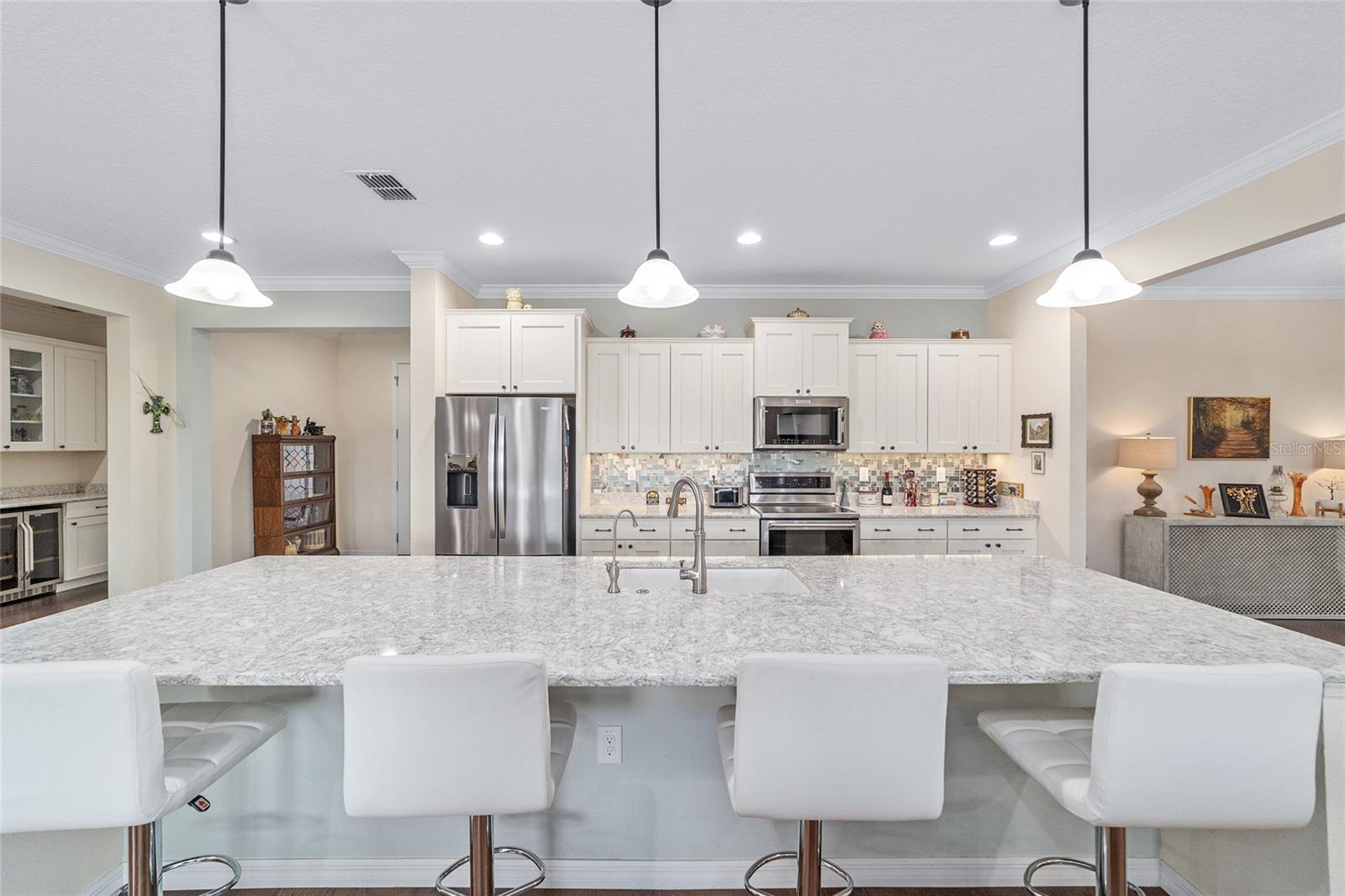 Grande melhoria de preço - Situado em um beco sem saída tranquilo com vistas pitorescas do 16º tee, este modelo Willem lindamente decorado oferece uma mistura requintada de elegância, estilo e funcionalidade. Com 3 quartos, 3 banheiros e uma garagem para 2 carros com extensão de 4 pés e calçada personalizada, esta casa foi projetada para impressionar. Ao entrar, o acolhedor hall de entrada, completo com um armário conveniente, leva facilmente aos espaços de convivência cuidadosamente elaborados. A cozinha gourmet é o sonho de qualquer chef, ostentando uma grande ilha com bancadas de quartzo, eletrodomésticos KitchenAid de última geração e uma despensa com prateleiras personalizadas. Ao lado da cozinha, uma lavanderia bem equipada oferece amplos armários e uma pia para maior comodidade. O bar molhado, completo com bancadas de quartzo e um refrigerador de vinho, aumenta o apelo divertido da casa. A planta dividida aberta e convidativa inclui uma espaçosa sala grande e uma área de jantar íntima - perfeita para uma vida casual e divertida. A suíte master serve como um retiro privado, com box amplo romano, closet personalizado e amplo espaço para relaxar. Um segundo quarto com banheiro privativo garante privacidade e conforto aos hóspedes, enquanto um terceiro quarto e banheiro adicional proporcionam acomodação adicional. O home office separado oferece um espaço tranquilo para trabalho ou projetos pessoais. Detalhes elegantes são abundantes, incluindo persianas, sancas, portas de 2,5 metros e pisos de madeira projetados, com carpetes macios nos quartos para maior conforto. Atualizações adicionais incluem um gerador a gás para toda a casa, um aquecedor de água sem tanque, um amaciante de água e uma barreira radiante para eficiência energética. A vida ao ar livre é igualmente impressionante, com uma varanda protegida e um amplo pátio pavimentado, perfeito para relaxar ou organizar reuniões. Oferecida totalmente mobiliada, com a maioria dos móveis incluídos, esta casa está realmente pronta para morar. Localizada no principal condomínio fechado com mais de 55 anos de Ocala, esta casa oferece um estilo de vida vibrante com uma ampla variedade de comodidades, incluindo acesso de carrinho de golfe a dois shopping centers próximos. Experimente a combinação perfeita de luxo, conveniência e comunidade – agende seu tour privado hoje mesmo!