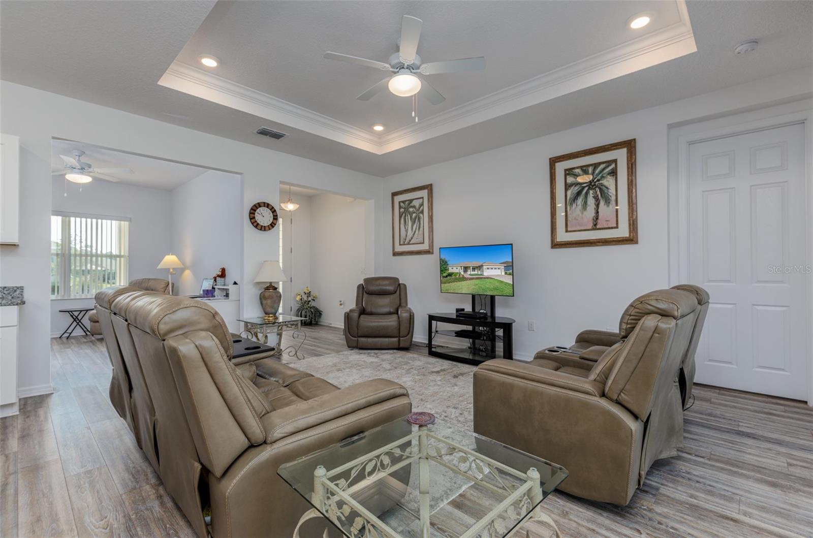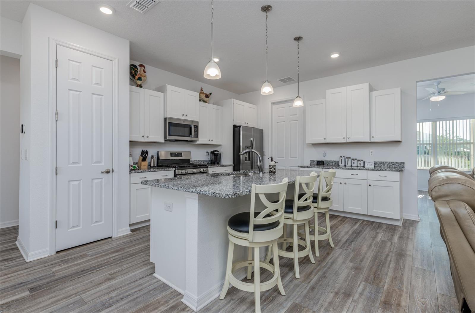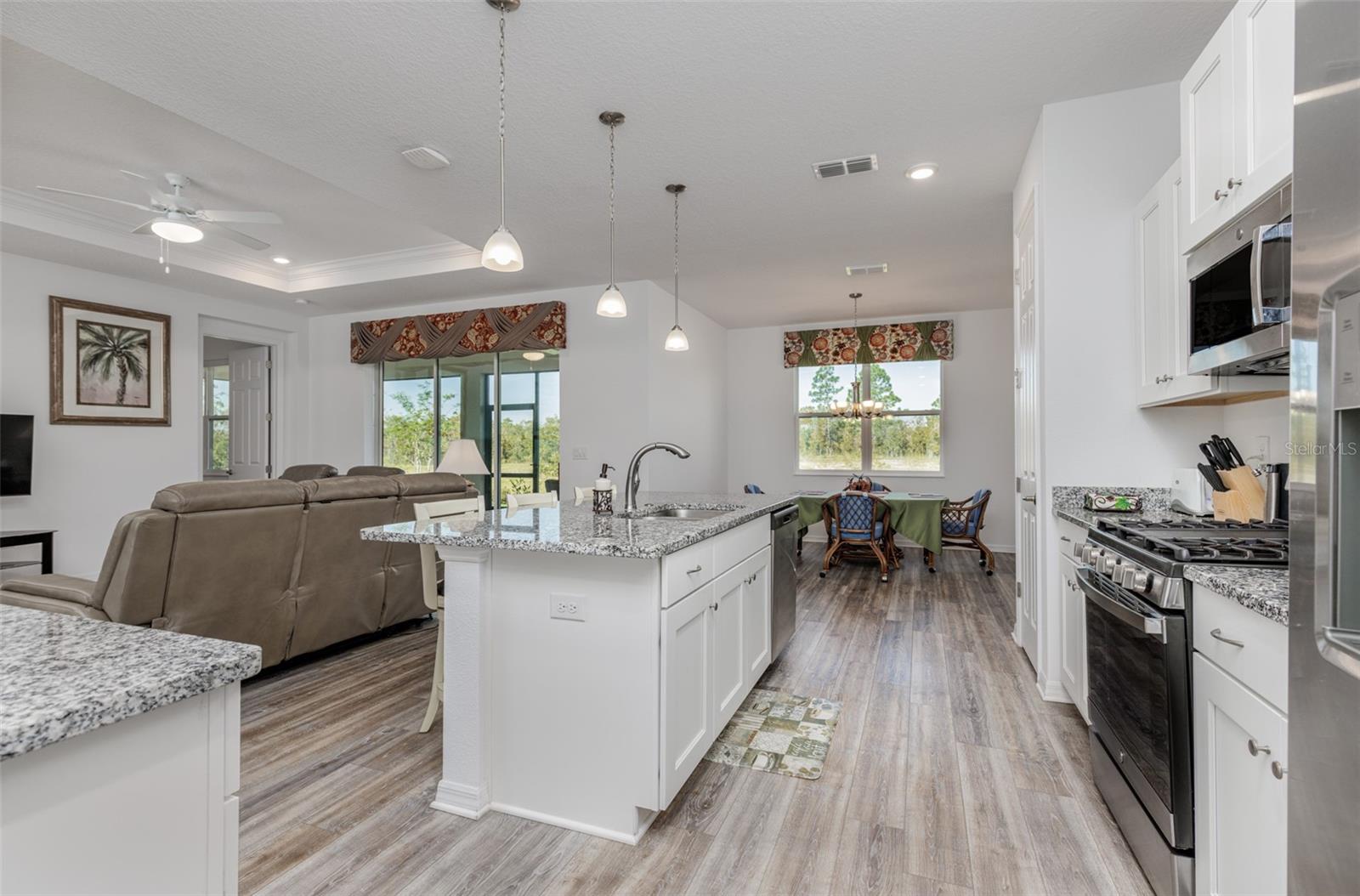 Em Longleaf Ridge, no On Top of the World, o condomínio fechado e ativo Premier 55+ de Ocala, você encontrará este giz para casa inteligente modelo Livingston, sem manutenção, da série 2021 Premiere, cheio de atualizações. Esta linda casa tem uma planta dividida com 2 quartos, 2 banheiros, mais um quarto flexível e uma garagem para 2 carros com espaço adicional para carrinho de golfe. Possui piso de pranchas de vinil de luxo em toda a casa com tetos de bandeja, sancas, luzes embutidas e ventiladores de teto de 52 ”na sala grande e no quarto principal; você vai adorar a linda cozinha gourmet que oferece armários escalonados, eletrodomésticos de aço inoxidável com fogão a gás, grande ilha central com pia 50/50, triturador de lixo e bancadas de quartzo; enorme quarto principal com closet; banheiro principal com área de chuveiro de vidro sem moldura de grandes dimensões, bancada de quartzo com pias duplas; altura de conforto banheiros em ambos os banheiros; armários e uma pia separada foram adicionados na calçada de pavimentação e na calçada dos fundos; a garagem e a varanda têm revestimento de piso de epóxi, além de todas as instalações recreativas, piscinas, parque para cães, quadras de tênis e pickleball. o site do mundo.