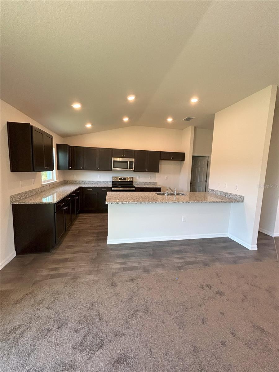 O popular piso de tinta do Building Builder, recém-concluído, com garagem de 3 quartos/2 banheiros/2 carros em lote totalmente enrolado com irrigação e paisagismo. Área de estar aberta com cozinha grande, balcões de granito e armários de madeira suaves, grande ilha de comer up up aberta à sala de estar e à área de jantar. O banheiro do proprietário inclui um grande closet, pia dupla/vaidade no banho com banheira de imersão e chuveiro. Lavanderia dentro da bancada de granito para dobrar e armários para reter suprimentos.