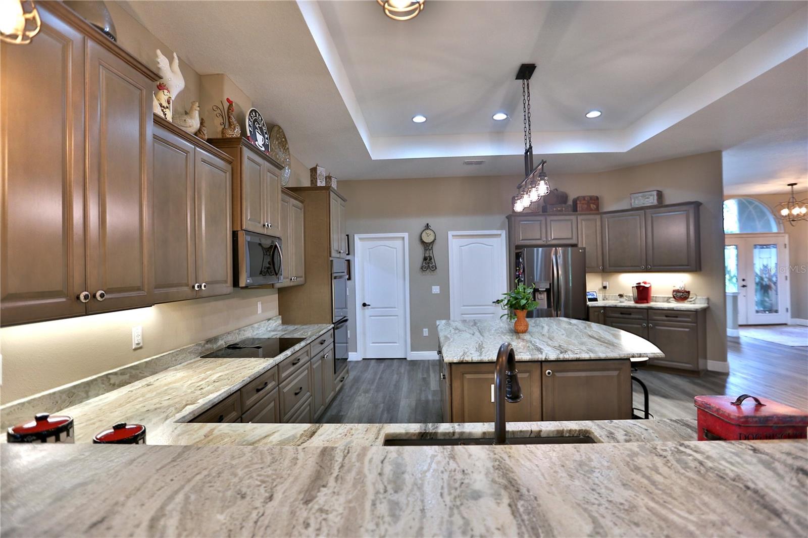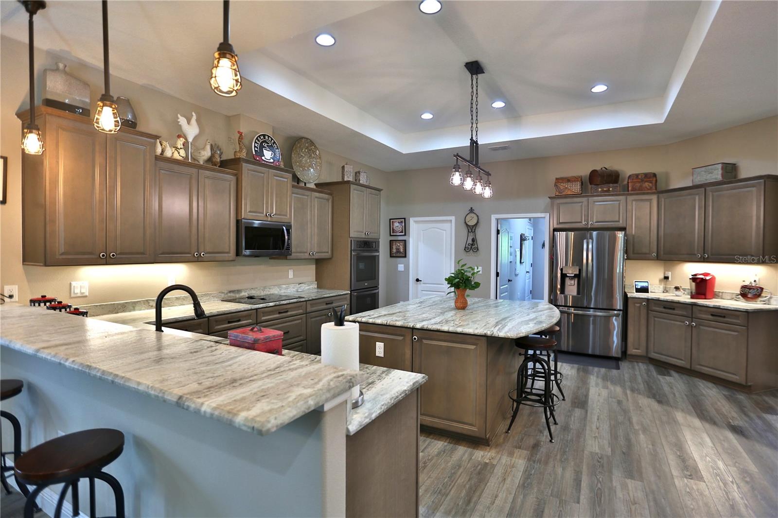 Situada na estimada comunidade de Golden Hills, esta casa notável oferece uma vista pitoresca do 10º buraco do Ocala National Golf Course. Com 3 quartos, um escritório bem equipado, 3 banheiros e uma ampla garagem para 3 carros, esta residência é o epítome do luxo. Ao entrar, você se deparará com altos tetos em caixotões, planta aberta, área de estar formal, espaço para refeições formais, o escritório oferece um ambiente profissional, perfeito para quem precisa de um espaço dedicado para trabalho ou outras atividades. A cozinha gourmet se conecta perfeitamente à área de estar, criando um espaço ideal para entretenimento. A enorme ilha é perfeita para receber jantares e reuniões com entes queridos. Ele apresenta armários personalizados impressionantes, eletrodomésticos de aço inoxidável, bancadas de granito revestidas de couro e uma despensa ampla. O quarto do proprietário é de proporções generosas, com área de estar, teto de bandeja lindamente acentuado e acesso à varanda. O banheiro possui um chuveiro grande com chuveiros duplos e pias separadas. As estantes personalizadas e a ilha central com gavetas no armário com certeza vão impressionar seus convidados. O projeto da planta dividida coloca os quartos de hóspedes e um banheiro no lado oposto da casa. Esta propriedade excepcional é adornada com persianas elegantes, uma espaçosa varanda com tela perfeita para entreter e aproveitar o sol da Flórida enquanto desfruta de vistas deslumbrantes do campo de golfe. Além disso, inclui quintal cercado, calhas, sistema de filtragem de água de primeira linha e lavanderia bem equipada com armários e pia. Além disso, a garagem, com notáveis 25 pés de profundidade, oferece amplo espaço de armazenamento. É imperdível para quem busca o equilíbrio perfeito entre luxo e funcionalidade. Convenientemente localizado perto de WEC e Golden Ocala. Além de diversas opções de compras e restaurantes, esse imóvel é imperdível para quem busca luxo e praticidade.