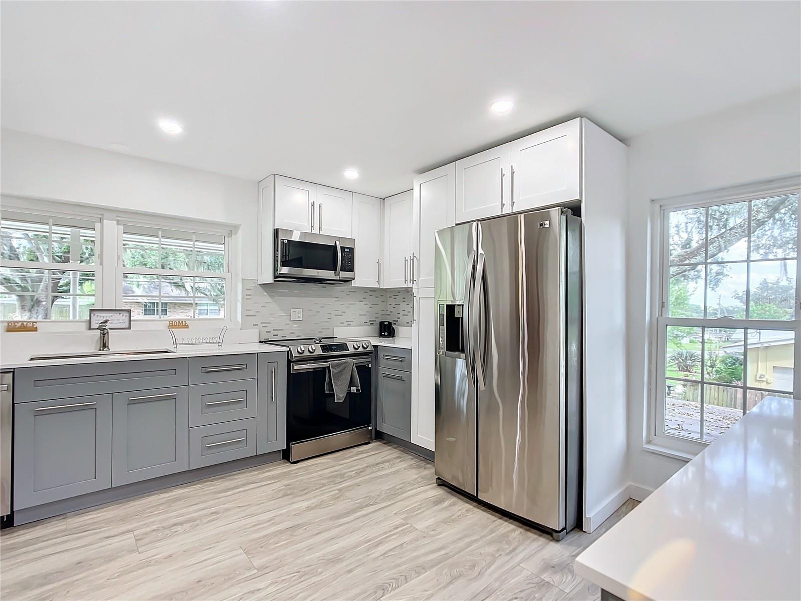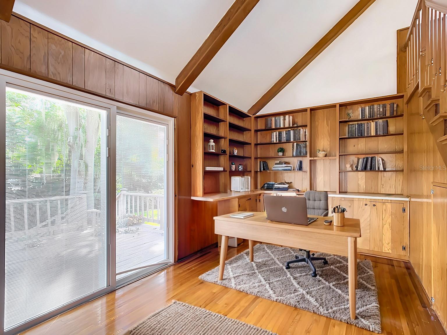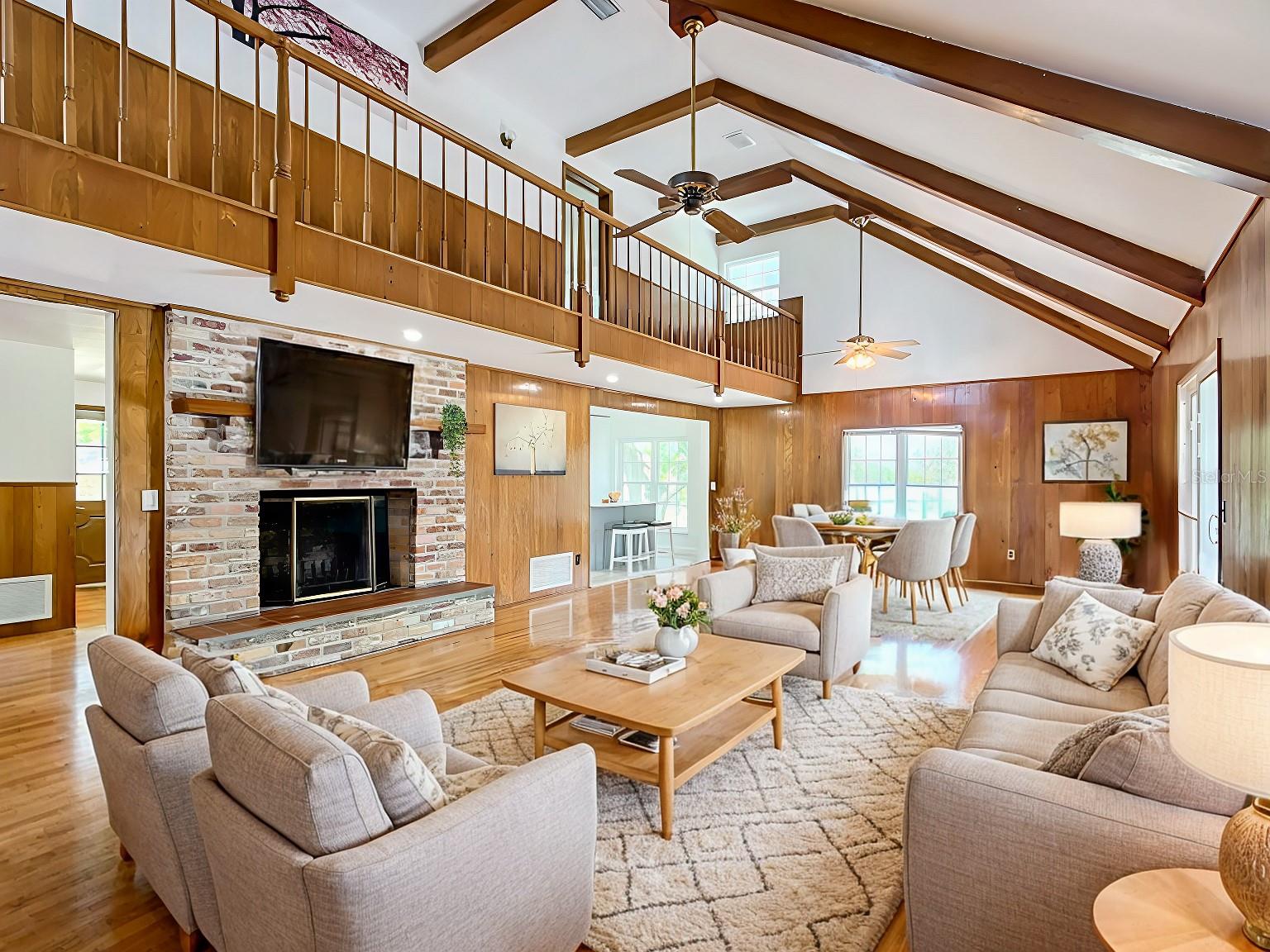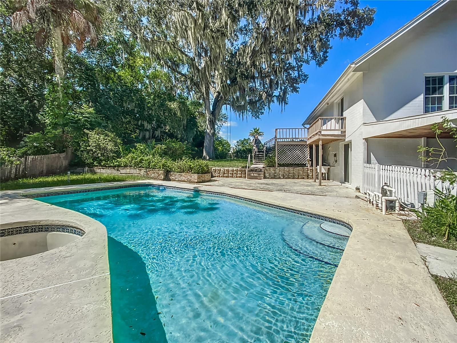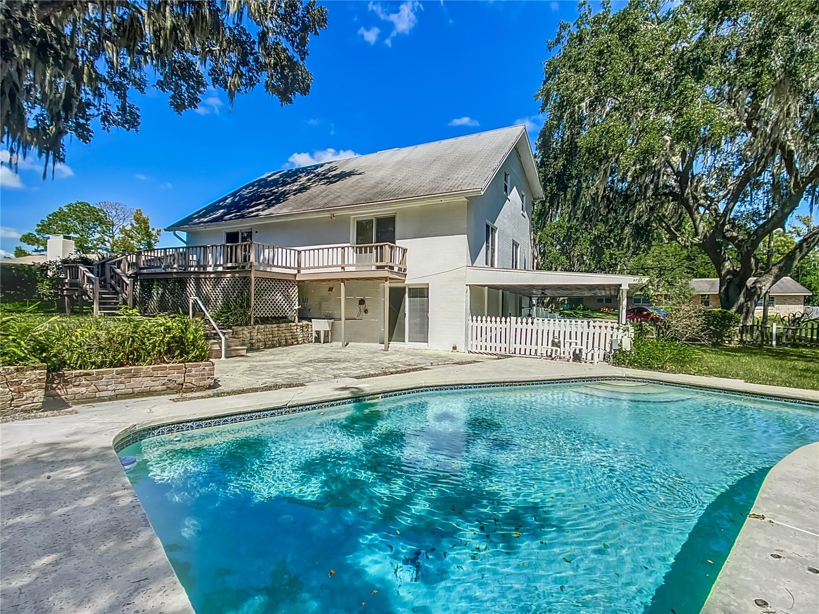 Uma oportunidade de renda perfeita o aguarda! Esta deslumbrante casa renovada de três andares com piscina subterrânea dispõe de um apartamento estúdio totalmente reformado - um achado raro na procurada área de Druid Hills, a poucos minutos do centro de Ocala. As casas neste bairro não chegam ao mercado com frequência, e aquelas com varandas cobertas de ponta a ponta são ainda mais excepcionais. O nível principal possui pisos de madeira real e uma cozinha moderna completa com bancadas de quartzo, eletrodomésticos de aço inoxidável, backsplash personalizado e armários com fechamento suave. Uma grande ilha oferece assentos e armazenamento adicionais, fluindo perfeitamente para a área de jantar e para o amplo espaço de estar. Um recanto aconchegante com prateleiras embutidas é o escritório ou escritório perfeito, enquanto o charme da área de estar é acentuado pelas vigas de cedro e uma lareira a lenha. O quarto principal e o banheiro estão convenientemente localizados no nível principal e, no andar de cima, dois quartos espaçosos compartilham um banheiro tipo spa com chuveiro de azulejos personalizado de 2,10 metros e chuveiros duplos. O quintal cercado é um oásis privado, com um deck espaçoso que acrescenta espaço adicional para relaxar e se divertir, tudo com vista para todo o quintal.
