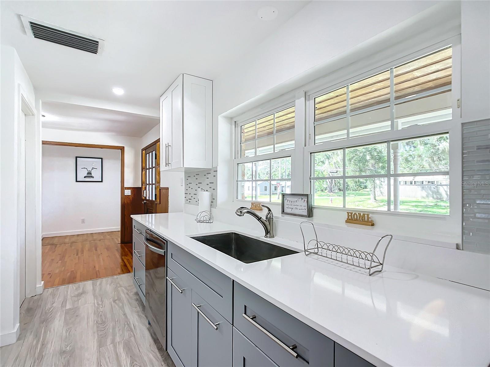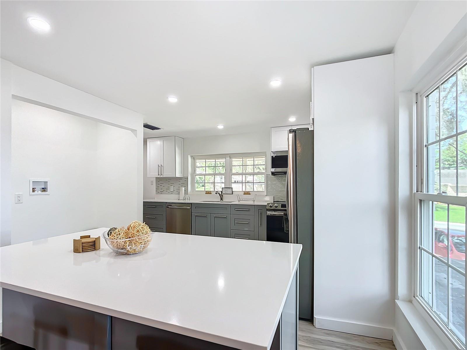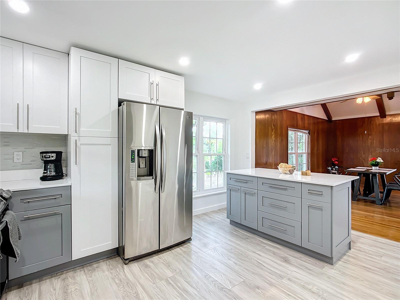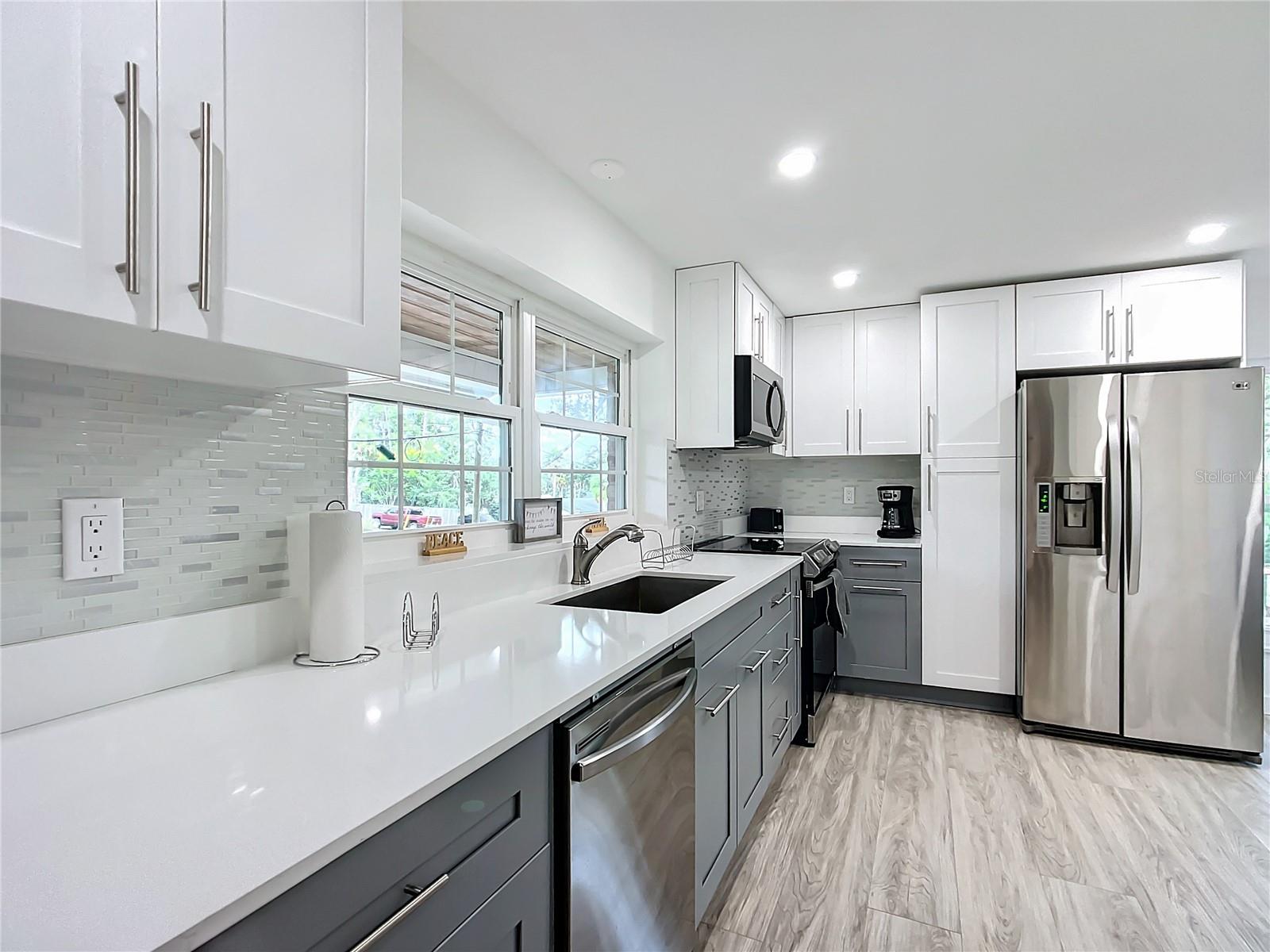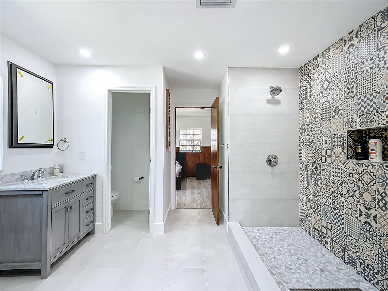 Uma oportunidade de renda perfeita o aguarda! Esta deslumbrante casa renovada de três andares com piscina subterrânea dispõe de um apartamento estúdio totalmente reformado - um achado raro na procurada área de Druid Hills, a poucos minutos do centro de Ocala. As casas neste bairro não chegam ao mercado com frequência, e aquelas com varandas cobertas de ponta a ponta são ainda mais excepcionais. O nível principal possui pisos de madeira real e uma cozinha moderna completa com bancadas de quartzo, eletrodomésticos de aço inoxidável, backsplash personalizado e armários com fechamento suave. Uma grande ilha oferece assentos e armazenamento adicionais, fluindo perfeitamente para a área de jantar e para o amplo espaço de estar. Um recanto aconchegante com prateleiras embutidas é o escritório ou escritório perfeito, enquanto o charme da área de estar é acentuado pelas vigas de cedro e uma lareira a lenha. O quarto principal e o banheiro estão convenientemente localizados no nível principal e, no andar de cima, dois quartos espaçosos compartilham um banheiro tipo spa com chuveiro de azulejos personalizado de 2,10 metros e chuveiros duplos. O quintal cercado é um oásis privado, com um deck espaçoso que acrescenta espaço adicional para relaxar e se divertir, tudo com vista para todo o quintal.