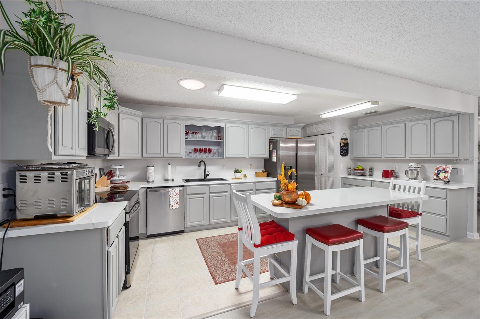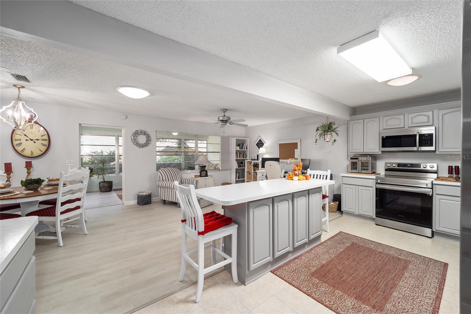 Charmosa vila modelo bostoniana de 2 quartos na comunidade On Top of the World 55+ Bem-vindo a esta villa modelo Bostonian de 2 quartos e 2 banheiros lindamente atualizada, localizada no cobiçado condomínio fechado de golfe com mais de 55 anos de On Top of the World, Southwest Ocala. Esta casa pronta para morar apresenta um layout convidativo de conceito aberto, perfeito para uma vida fácil e divertida. Com piso laminado mais novo em todos os quartos, salas de estar, jantar e família, azulejos nas áreas úmidas, sem carpete, esta vila oferece conforto e estilo. A espaçosa cozinha é uma delícia para o chef, com armários de carvalho pintados, eletrodomésticos mais novos, amplo balcão e tubos solares que enchem o ambiente com abundante luz natural. A varanda luminosa, com grandes janelas, estende-se até um pátio generoso, oferecendo um local perfeito para relaxar e desfrutar do ambiente tranquilo. A suíte principal inclui um amplo closet e banheiro privativo com box amplo de azulejos. O quarto de hóspedes está convenientemente localizado perto do banheiro de hóspedes atualizado, que possui uma nova penteadeira e toalete. Recém-pintada, esta casa apresenta várias atualizações modernas, incluindo três tubos solares para maior brilho e uma máquina de lavar louça mais recente. A garagem para 2 carros também inclui máquina de lavar e secar roupa para maior comodidade. Com telhado novo (2021) e unidade de AC de 2008, esta casa está pronta para você morar e desfrutar. A comunidade vibrante oferece uma variedade de comodidades, como três piscinas (duas externas e uma interna), academias de ginástica, quadras de pickleball, campo de vôo com controle remoto e muito mais. A taxa HOA cobre cabos básicos, manutenção de telhado, pintura externa, seguro, paisagismo, serviço de lixo e portões vigiados 24 horas por dia, 7 dias por semana, garantindo uma vida sem preocupações e manutenção. Aproveite o estilo de vida ativo e adequado para carrinhos de golfe, com fácil acesso a lojas, restaurantes e entretenimento nas proximidades. Não perca a oportunidade de fazer desta encantadora villa a sua nova casa - agende hoje mesmo a sua visita privada!