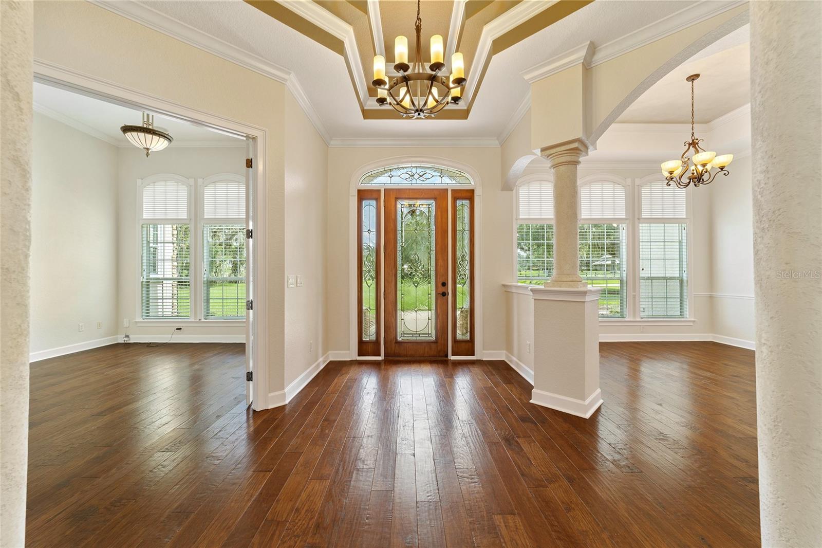 Esta propriedade deslumbrante situada em 3,41 acres dentro de um condomínio fechado e adequado para cavalos em SE Ocala combina elegância, conforto e a oportunidade de ter seus amigos de 4 patas em seu próprio quintal! Entre a casa principal (3.506 pés quadrados) e a segunda casa (1.645 pés quadrados), há uma área de estar combinada de 5.151 pés quadrados. A casa principal possui 4 quartos e 3,5 banheiros, projetada com uma planta aberta que inclui uma sala familiar centrado em torno de uma encantadora lareira de pedra, que flui perfeitamente para a cozinha com armários de madeira e uma ilha central rodeada por bancadas de granito. Um espaço aconchegante para café da manhã ao lado da cozinha tem vista para a piscina e varanda recém-reformadas. No interior, você encontrará piso de madeira nas principais áreas de estar. Esta casa também possui uma espaçosa suíte principal, completa com dois closets embutidos e um banheiro principal com ladrilho de travertino, pia dupla, banheira de imersão e chuveiro separado. O melhor de tudo é que tem acesso direto à piscina e à varanda. Todos os 3 quartos de hóspedes são de bom tamanho e possuem amplo espaço no armário. A casa principal também inclui uma sala de estar e jantar formal, além de um escritório/escritório separado. Acessível a partir de vários pontos da casa, a recém-remodelada piscina fechada com cascata e fontes de água é cercada por novos pavimentos e varanda coberta, tornando-a o espaço perfeito para relaxar e se divertir. Piscina tem aquecedor eléctrico e sistema de sal. Somando-se ao charme, há uma casa independente adicional de 1.645 pés quadrados, que atualmente está configurada como um espaço de entretenimento, completa com bar embutido, área de estar espaçosa e sala de teatro separada. Esta área versátil pode facilmente ser transformada em casa de hóspedes, já com lavabo instalado. As atualizações recentes incluem pintura fresca por dentro e por fora, um novo telhado em 2022, unidades de ar condicionado atualizadas (5 toneladas em 2021 e 2,5 toneladas em 2018), juntamente com novos dutos. Os cavaleiros irão apreciar a cerca de 4 tábuas, tornando esta propriedade tão bonita quanto adequada para cavalos. Este é o local perfeito para quem procura luxo e funcionalidade num cenário campestre pitoresco.