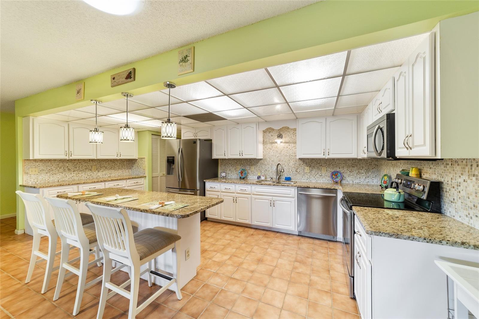 Não perca a chance de se tornar o novo proprietário deste impressionante modelo Bostonian de unidade final com uma planta expandida única e espaçosa garagem para dois carros que oferece todo o espaço que você procura. Esta vila lindamente atualizada e renovada é perfeita para qualquer pessoa pronta para desfrutar de um estilo de vida incrível na Flórida no On Top of the World - o principal condomínio fechado de Ocala com mais de 55 anos, cheio de comodidades de primeira linha. Uma relaxante varanda frontal coberta dá as boas-vindas às áreas de estar de conceito aberto, com azulejos de baixa manutenção e piso laminado com aparência de madeira, pintura interna fresca, acessórios atualizados e um telhado mais novo para uma tranquilidade inestimável. A deslumbrante cozinha também foi lindamente atualizada com um pacote de eletrodomésticos de aço inoxidável, armários brancos claros e brilhantes, bancadas de granito e um impressionante backsplash de azulejos. Assentos casuais na altura do bar com iluminação pendente personalizada se abrem para a ampla sala de estar com iluminação por tubo solar e uma sala de família/área de jantar separada, proporcionando um espaço extra flexível desejável para reuniões. A Suíte do Proprietário possui dois conjuntos de janelas que proporcionam excelente iluminação natural, closet e banheiro privativo com acessórios atualizados e box amplo revestido de azulejos. Os quartos de hóspedes podem facilmente funcionar como uma suíte extra do proprietário, já que o espaço foi expandido para incluir uma espaçosa área de estar perfeita para relaxar e um banheiro de hóspedes atualizado. O quarto Florida com tela oferece mais espaço para relaxar e possui piso de cerâmica e acesso conveniente a um pátio externo com vista para um paisagismo tranquilo e arborizado. Descontraia e relaxe ou saia e desfrute de algumas atividades, pois On Top of the World é o principal condomínio fechado de Ocala com mais de 55 anos, repleto de comodidades em estilo resort, 3 campos de golfe, piscinas internas/externas, atividades, centros recreativos, clubes, concertos, estacionamento dedicado para trailers, Veterans Park e até mesmo acesso de carrinho de golfe a shopping centers próximos e ao Shalom Park. Convenientemente localizado perto da Hwy 200, o OTOW fica perto de lojas, bancos, restaurantes e instalações médicas e também está localizado a uma curta distância de carro, 16 km ao sul do World Equestrian Center.