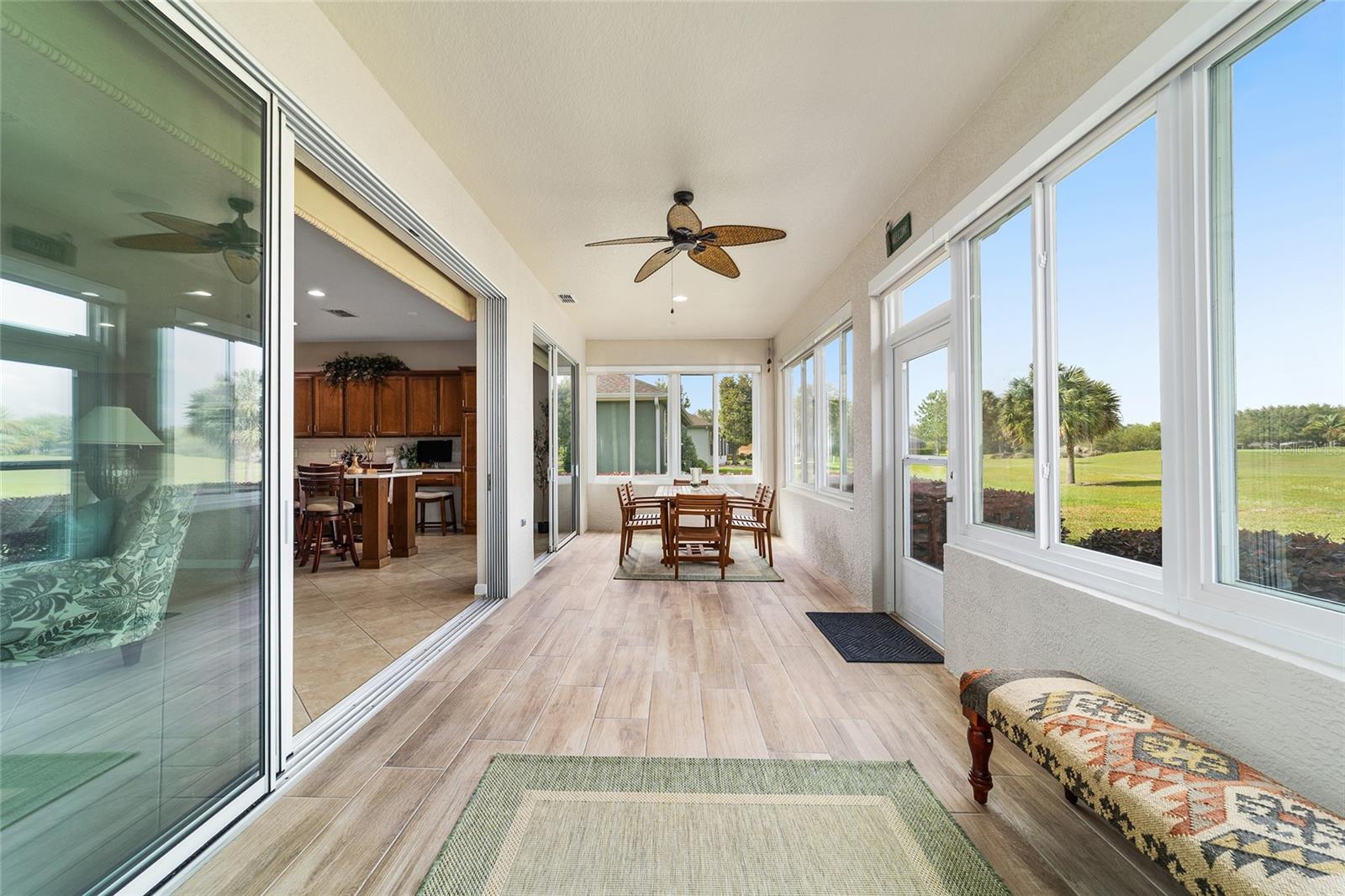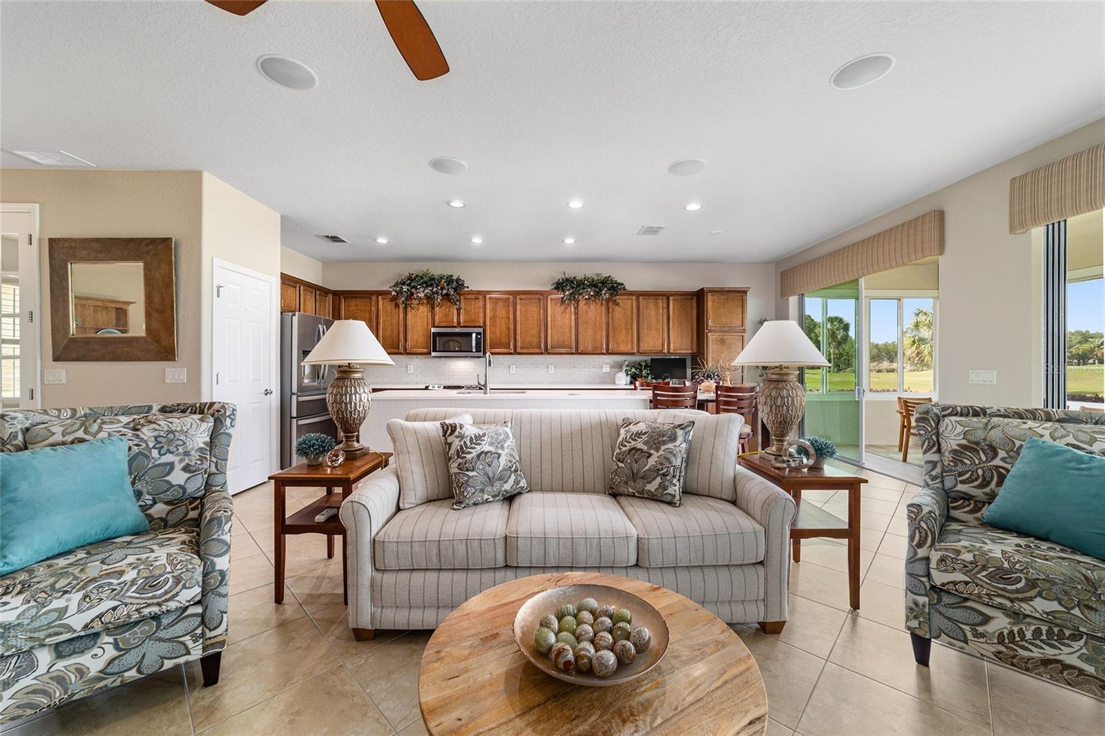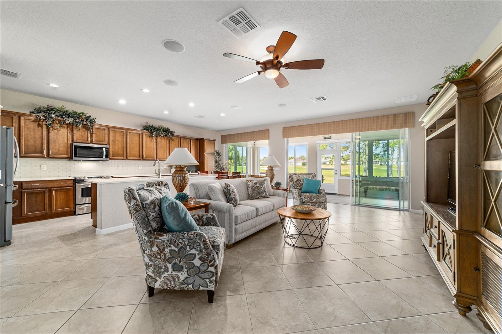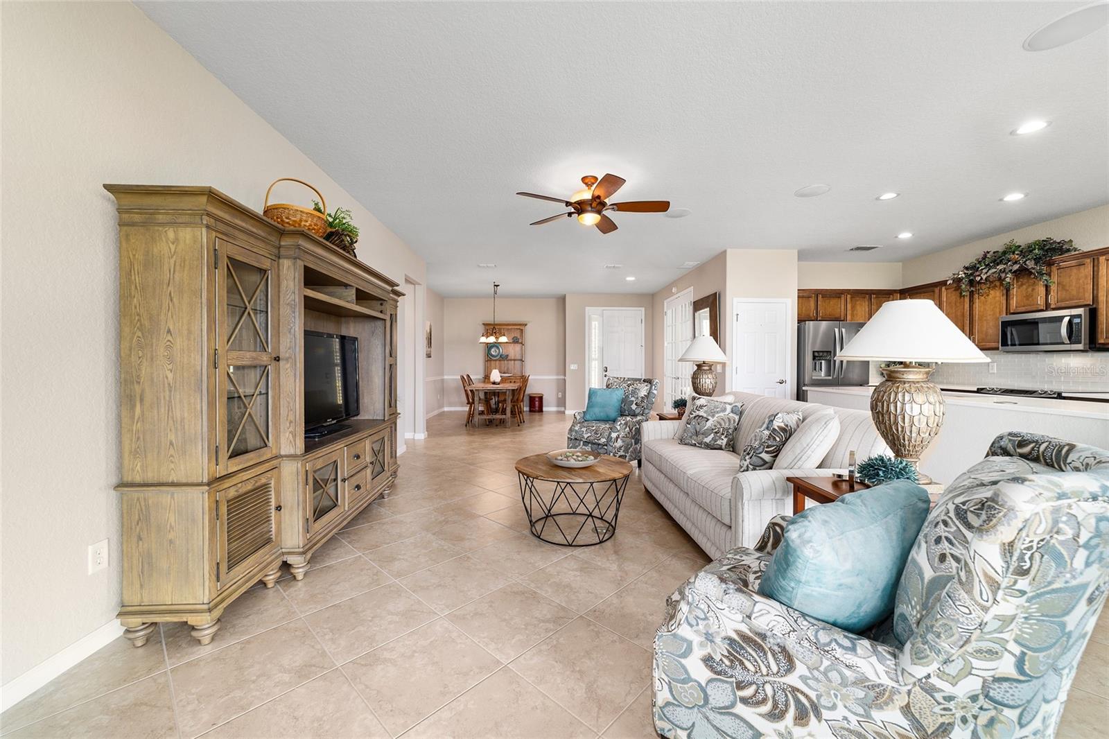 Esta residência Stone Creek by Del Webb, o Shenandoah Model, possui uma localização pitoresca no campo de golfe. Esta encantadora casa oferece 2 quartos, 2 banheiros, um quarto flexível e garagem para 2 carros com espaço para carrinho de golfe. No interior, você encontrará elegantes pisos de cerâmica nas áreas principais e nos banheiros, enquanto o quarto principal e a sala flexível apresentam piso de LVP e venezianas. A cozinha foi atualizada com uma ilha de grandes dimensões, completa com um bar para refeições, bem como bancadas de quartzo reluzentes, um backsplash elegante, modernos eletrodomésticos de aço inoxidável, iluminação embutida e uma despensa conveniente. A sala de reunião é completa com ventilador de teto e som surround integrado para a melhor experiência de entretenimento. A suíte do proprietário possui ventilador de teto e vista deslumbrante do campo de golfe. Ele também inclui um closet e um banheiro anexo com um impressionante chuveiro de azulejos atualizado, chuveiro atualizado e uma penteadeira espaçosa com pias duplas e bancadas de quartzo. O quarto de hóspedes também oferece ventilador de teto. O banheiro de hóspedes é de tamanho generoso e inclui banheira e penteadeira. O quarto flexível tem elegantes portas francesas de vidro, ventilador de teto e cama embutida personalizada e escrivaninha. A lavanderia é equipada com armários superiores, pia e balcão dobrável separado, além de lavadora e secadora. A varanda, equipada com ventilador de teto, persianas automáticas com controle remoto e janelas deslizantes CAT 3, pode ser aquecida ou resfriada ao seu gosto e oferece vistas deslumbrantes sobre o campo de golfe. Melhorias adicionais incluem um sistema de ar condicionado de 4 toneladas com classificação de 18 videntes, instalado em maio de 2017, novo telhado 2023, um novo aquecedor de água quente com bomba de calor com controle remoto automático definido para ser instalado em 2022, isolamento atualizado na garagem e varanda, porta de garagem isolada e amaciador de água. O paisagismo também foi lindamente atualizado. Não perca a oportunidade de conhecer esta incrível casa!