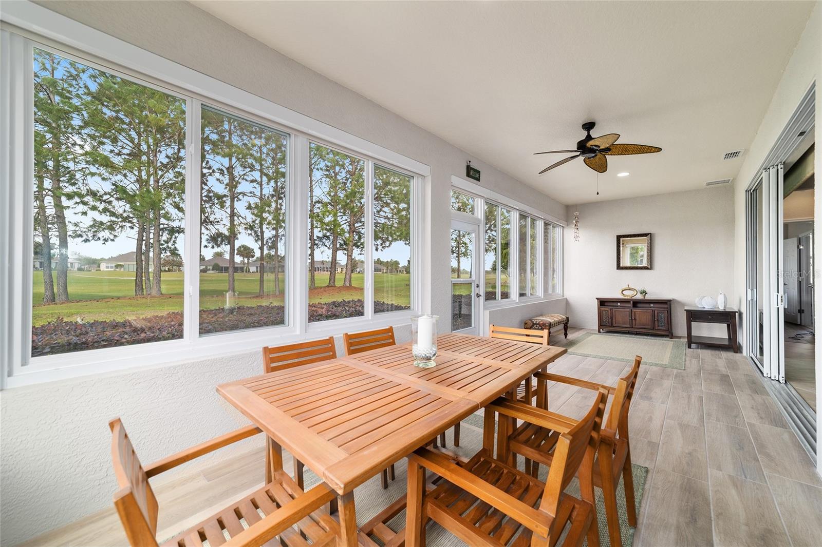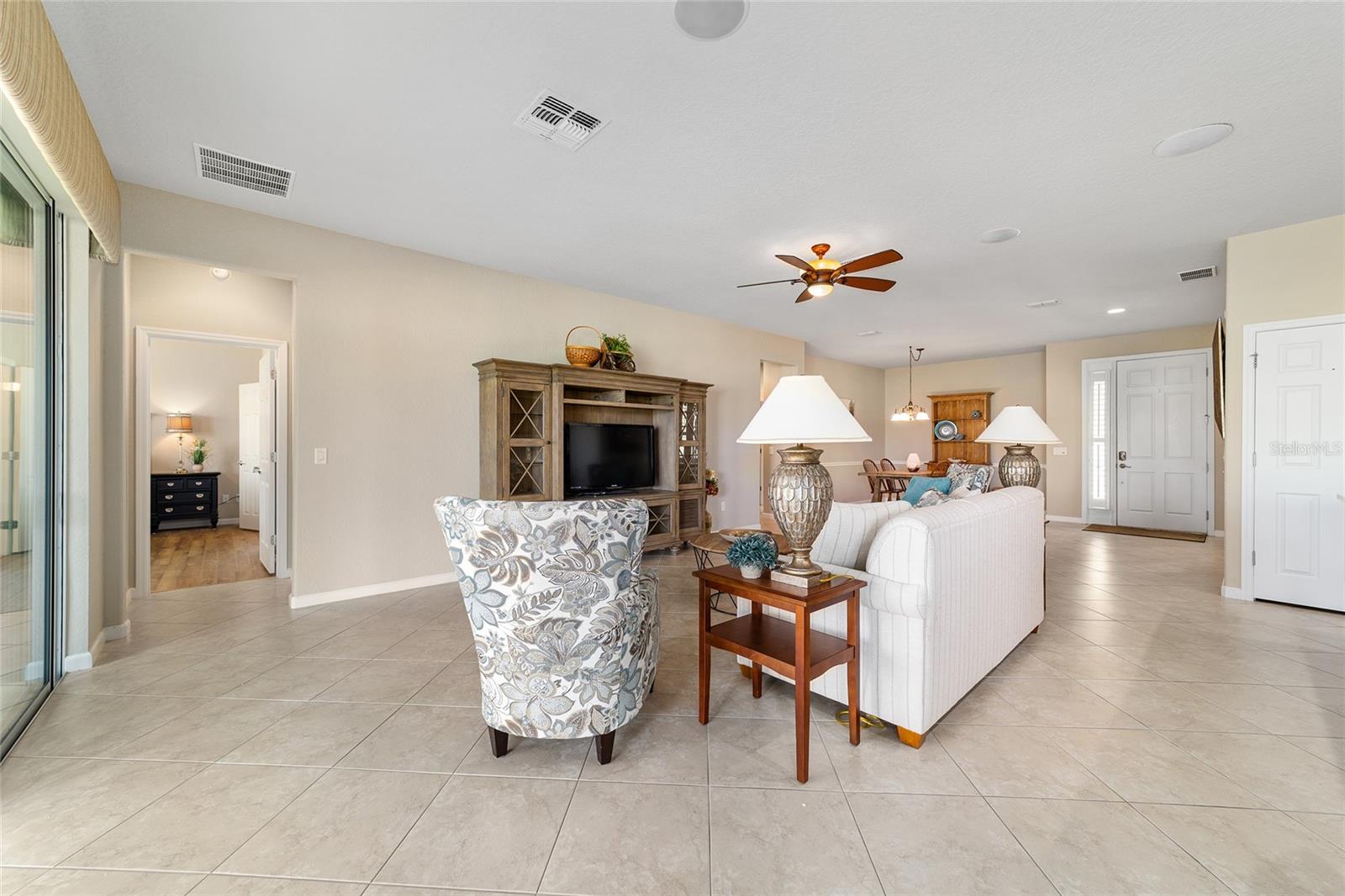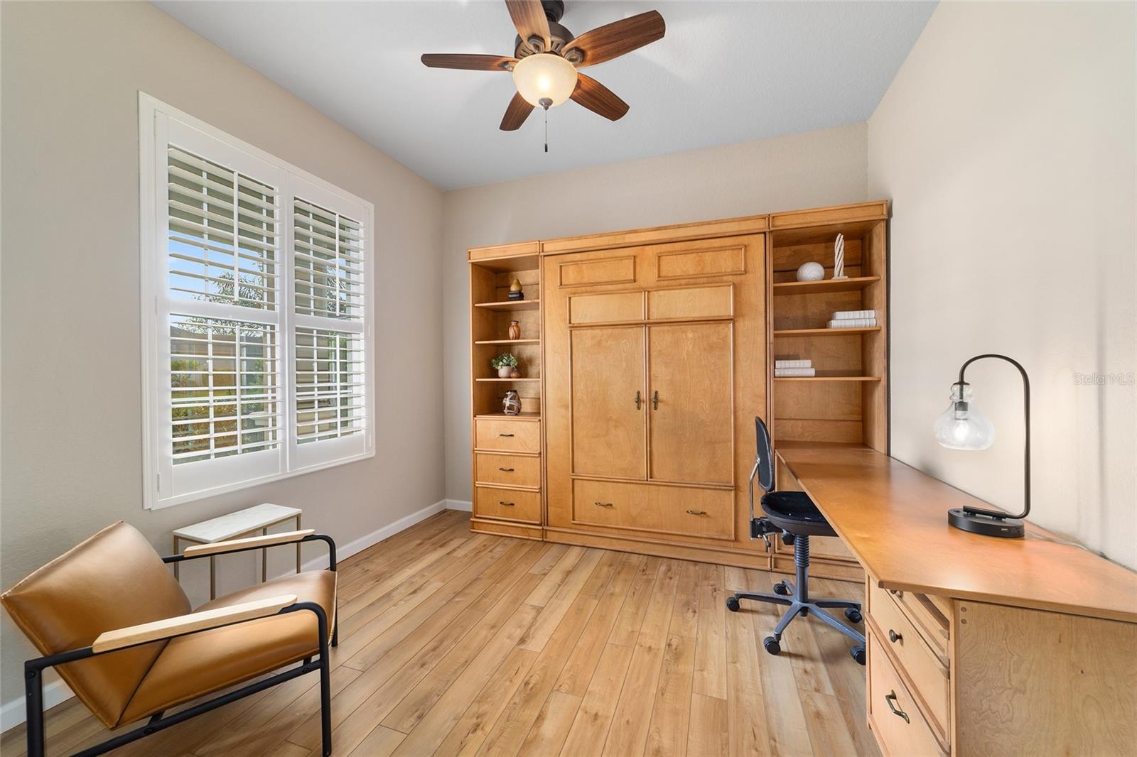 Esta residência Stone Creek by Del Webb, o Shenandoah Model, possui uma localização pitoresca no campo de golfe. Esta encantadora casa oferece 2 quartos, 2 banheiros, um quarto flexível e garagem para 2 carros com espaço para carrinho de golfe. No interior, você encontrará elegantes pisos de cerâmica nas áreas principais e nos banheiros, enquanto o quarto principal e a sala flexível apresentam piso de LVP e venezianas. A cozinha foi atualizada com uma ilha de grandes dimensões, completa com um bar para refeições, bem como bancadas de quartzo reluzentes, um backsplash elegante, modernos eletrodomésticos de aço inoxidável, iluminação embutida e uma despensa conveniente. A sala de reunião é completa com ventilador de teto e som surround integrado para a melhor experiência de entretenimento. A suíte do proprietário possui ventilador de teto e vista deslumbrante do campo de golfe. Ele também inclui um closet e um banheiro anexo com um impressionante chuveiro de azulejos atualizado, chuveiro atualizado e uma penteadeira espaçosa com pias duplas e bancadas de quartzo. O quarto de hóspedes também oferece ventilador de teto. O banheiro de hóspedes é de tamanho generoso e inclui banheira e penteadeira. O quarto flexível tem elegantes portas francesas de vidro, ventilador de teto e cama embutida personalizada e escrivaninha. A lavanderia é equipada com armários superiores, pia e balcão dobrável separado, além de lavadora e secadora. A varanda, equipada com ventilador de teto, persianas automáticas com controle remoto e janelas deslizantes CAT 3, pode ser aquecida ou resfriada ao seu gosto e oferece vistas deslumbrantes sobre o campo de golfe. Melhorias adicionais incluem um sistema de ar condicionado de 4 toneladas com classificação de 18 videntes, instalado em maio de 2017, novo telhado 2023, um novo aquecedor de água quente com bomba de calor com controle remoto automático definido para ser instalado em 2022, isolamento atualizado na garagem e varanda, porta de garagem isolada e amaciador de água. O paisagismo também foi lindamente atualizado. Não perca a oportunidade de conhecer esta incrível casa!
