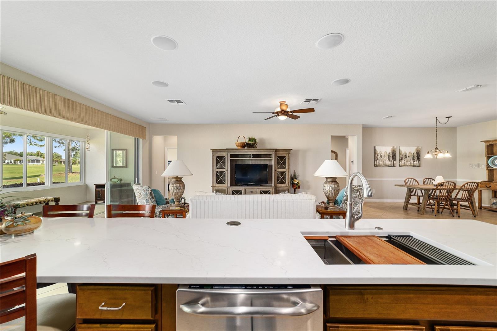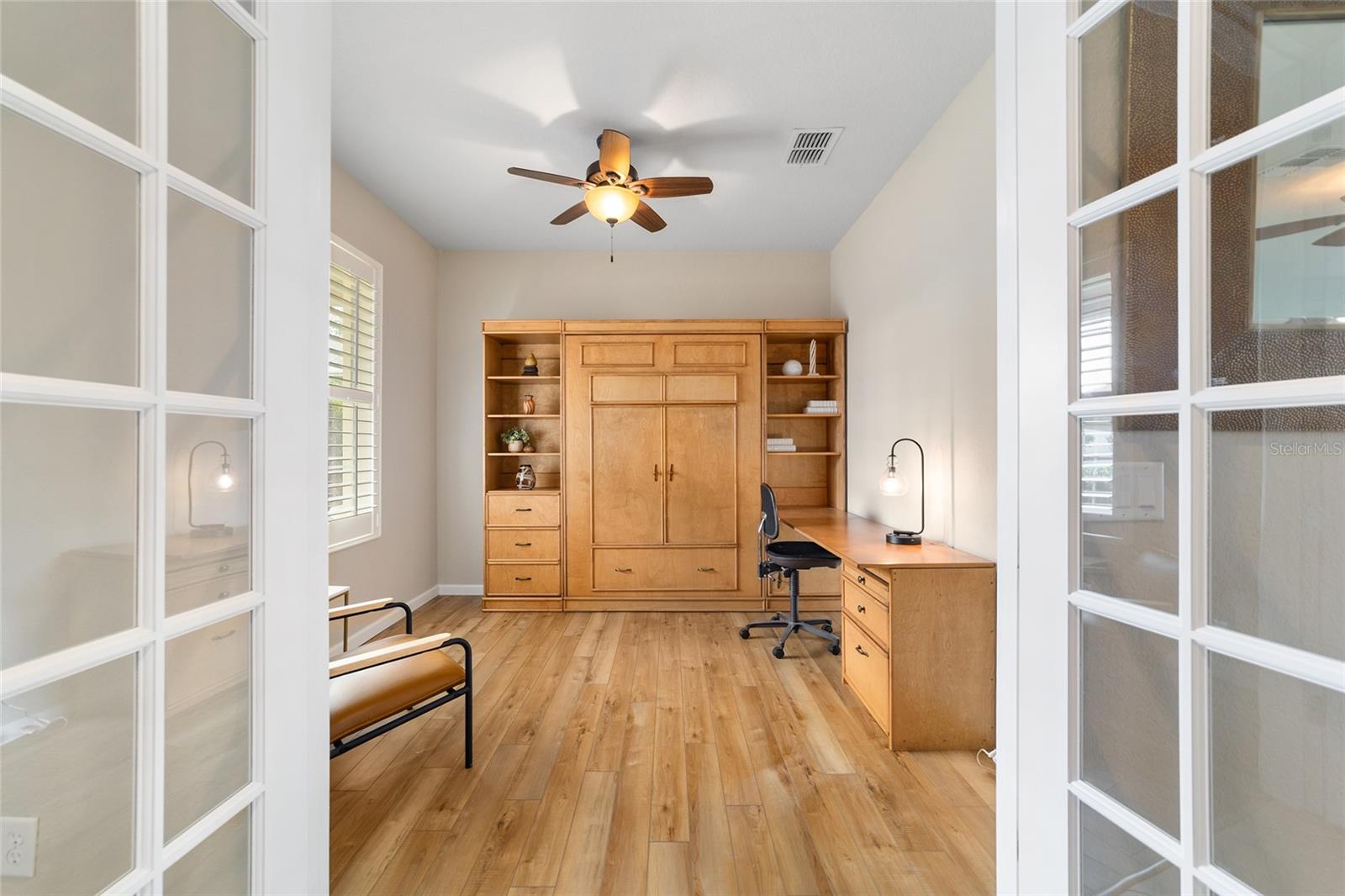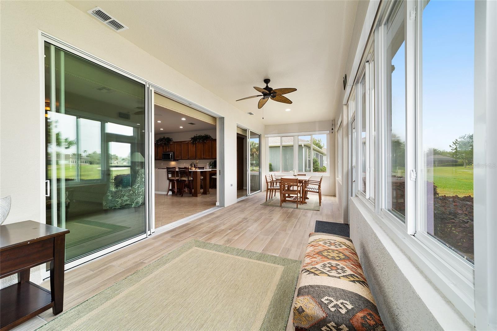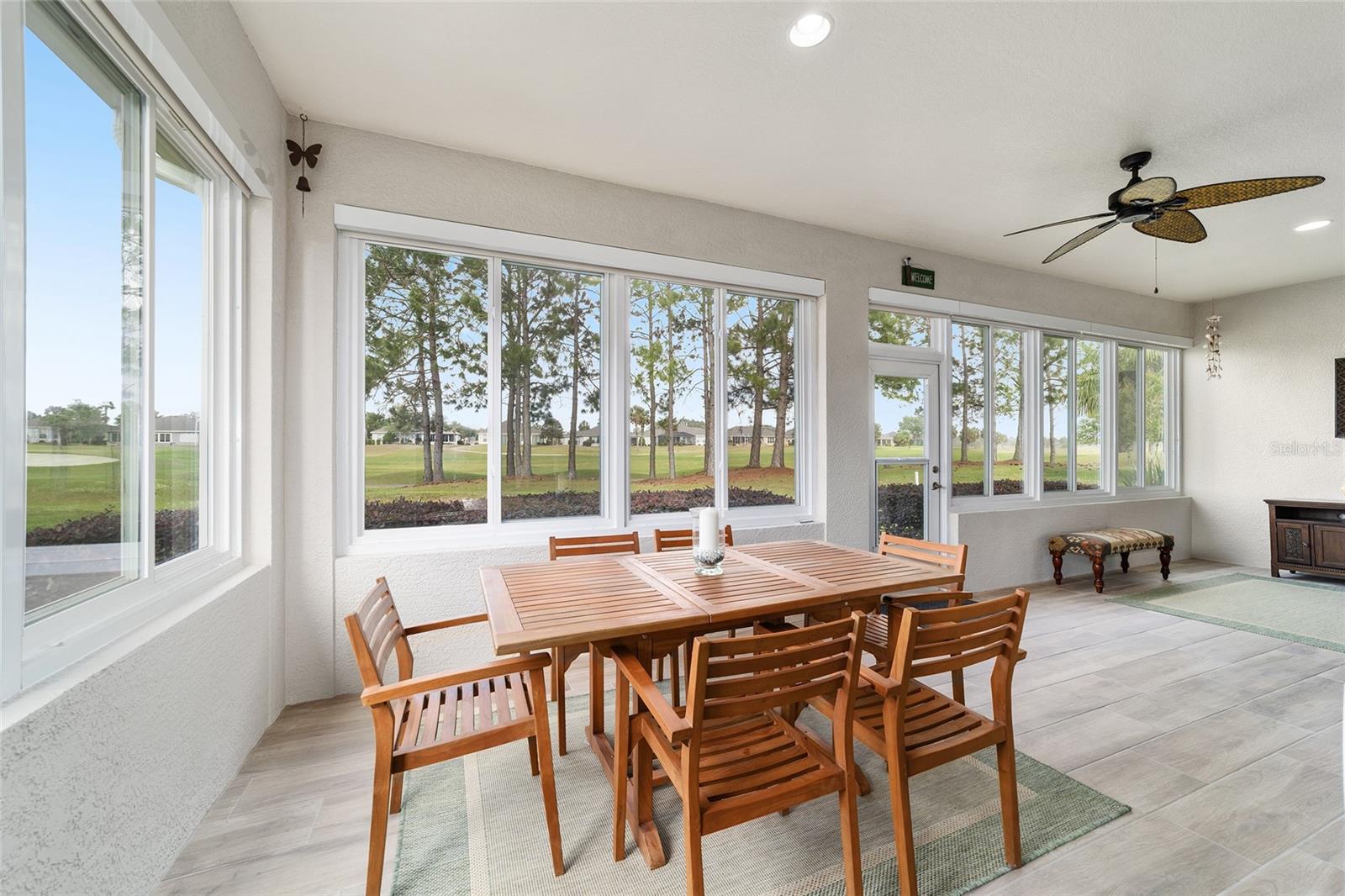 Esta residência Stone Creek by Del Webb, o Shenandoah Model, possui uma localização pitoresca no campo de golfe. Esta encantadora casa oferece 2 quartos, 2 banheiros, um quarto flexível e garagem para 2 carros com espaço para carrinho de golfe. No interior, você encontrará elegantes pisos de cerâmica nas áreas principais e nos banheiros, enquanto o quarto principal e a sala flexível apresentam piso de LVP e venezianas. A cozinha foi atualizada com uma ilha de grandes dimensões, completa com um bar para refeições, bem como bancadas de quartzo reluzentes, um backsplash elegante, modernos eletrodomésticos de aço inoxidável, iluminação embutida e uma despensa conveniente. A sala de reunião é completa com ventilador de teto e som surround integrado para a melhor experiência de entretenimento. A suíte do proprietário possui ventilador de teto e vista deslumbrante do campo de golfe. Ele também inclui um closet e um banheiro anexo com um impressionante chuveiro de azulejos atualizado, chuveiro atualizado e uma penteadeira espaçosa com pias duplas e bancadas de quartzo. O quarto de hóspedes também oferece ventilador de teto. O banheiro de hóspedes é de tamanho generoso e inclui banheira e penteadeira. O quarto flexível tem elegantes portas francesas de vidro, ventilador de teto e cama embutida personalizada e escrivaninha. A lavanderia é equipada com armários superiores, pia e balcão dobrável separado, além de lavadora e secadora. A varanda, equipada com ventilador de teto, persianas automáticas com controle remoto e janelas deslizantes CAT 3, pode ser aquecida ou resfriada ao seu gosto e oferece vistas deslumbrantes sobre o campo de golfe. Melhorias adicionais incluem um sistema de ar condicionado de 4 toneladas com classificação de 18 videntes, instalado em maio de 2017, novo telhado 2023, um novo aquecedor de água quente com bomba de calor com controle remoto automático definido para ser instalado em 2022, isolamento atualizado na garagem e varanda, porta de garagem isolada e amaciador de água. O paisagismo também foi lindamente atualizado. Não perca a oportunidade de conhecer esta incrível casa!