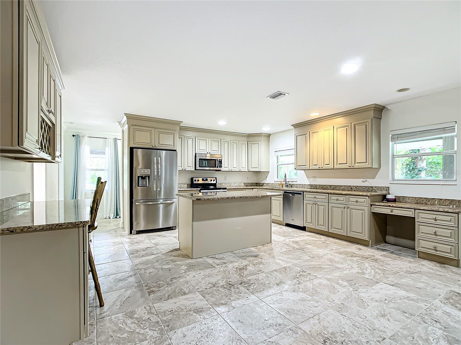 O charme atemporal e as atualizações modernas irão surpreendê-lo assim que você abrir a porta da frente. Situada em um terreno de quase um acre, esta casa de 3/2 tem uma planta aberta que conecta a cozinha e a área de estar perfeitamente, tornando-a perfeita para entretenimento. Desfrute de noites aconchegantes em Ocala junto à lareira a lenha. Azulejo cerâmico por toda parte e carpete nos quartos para maior conforto. A cozinha possui armários atualizados, bastante espaço no balcão, uma ilha e uma garrafeira embutida. Os banheiros atualizados apresentam azulejos deslumbrantes e a suíte master possui um espaçoso closet. Galpão no quintal para armazenamento adicional e quase um acre de terra para desfrutar.