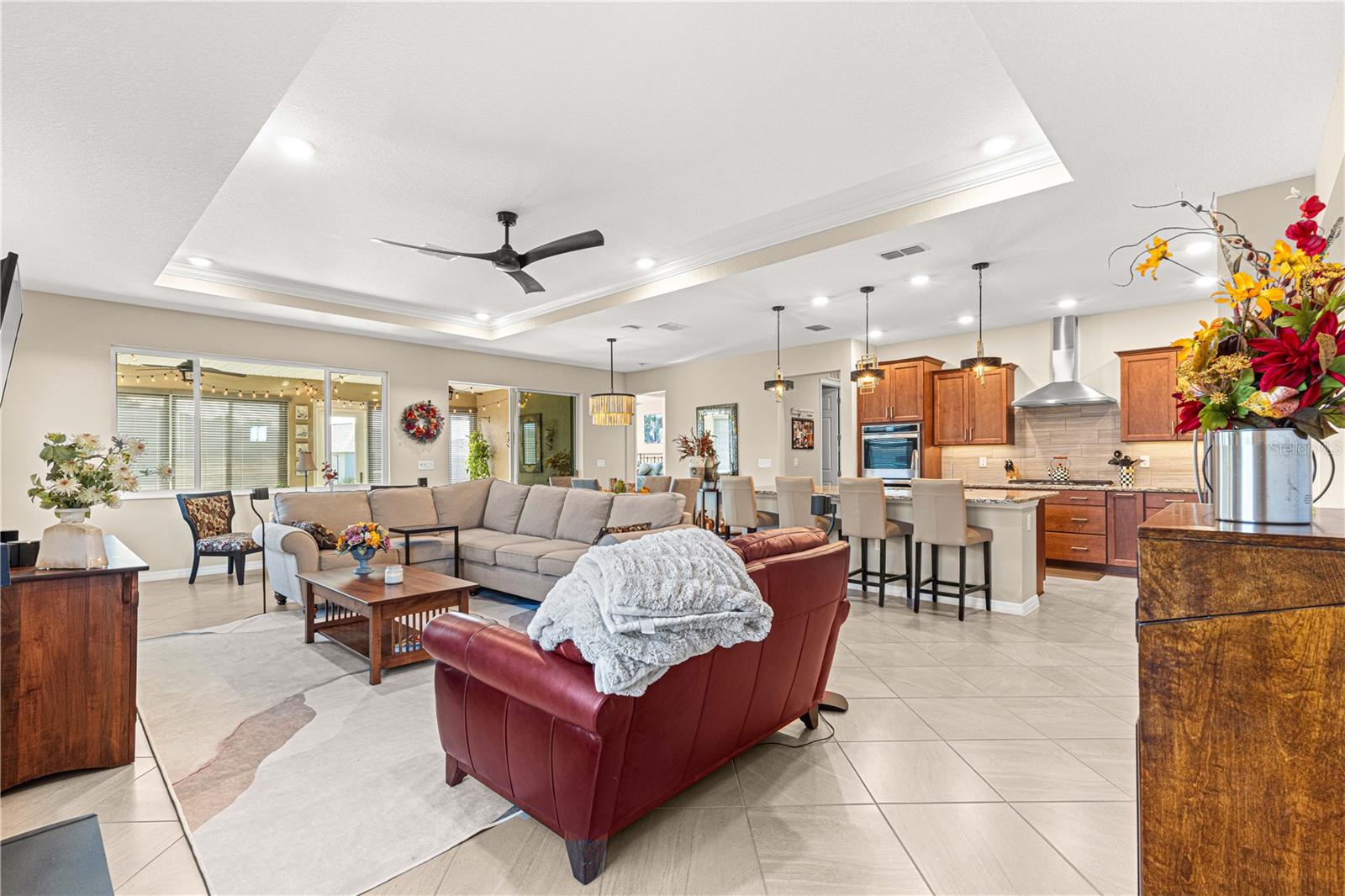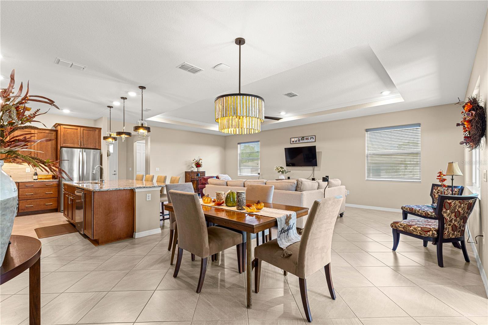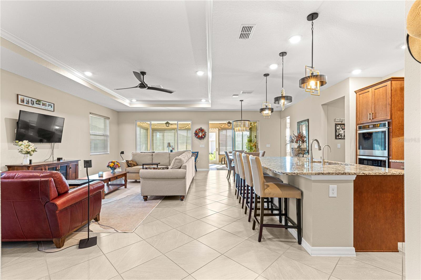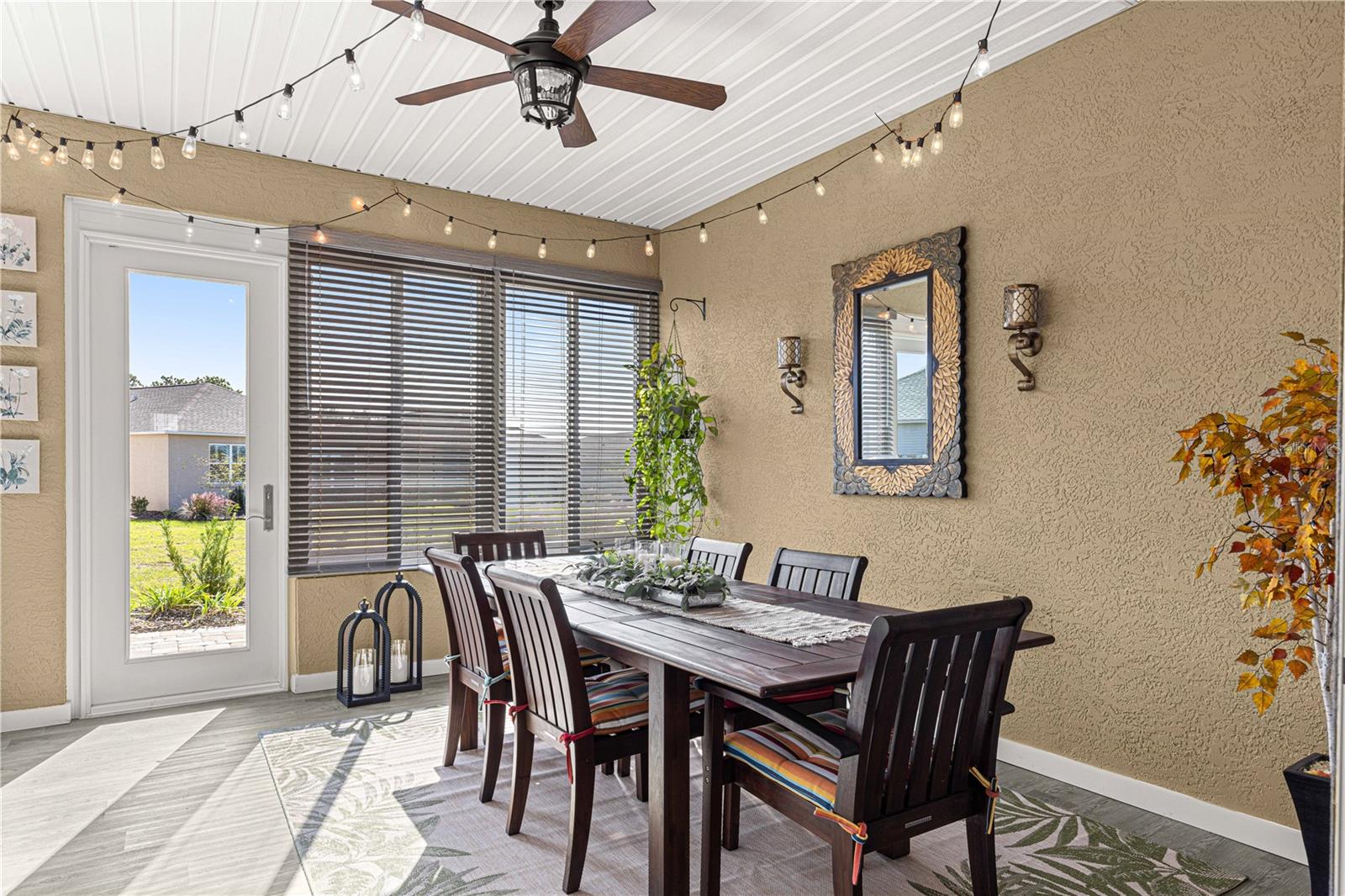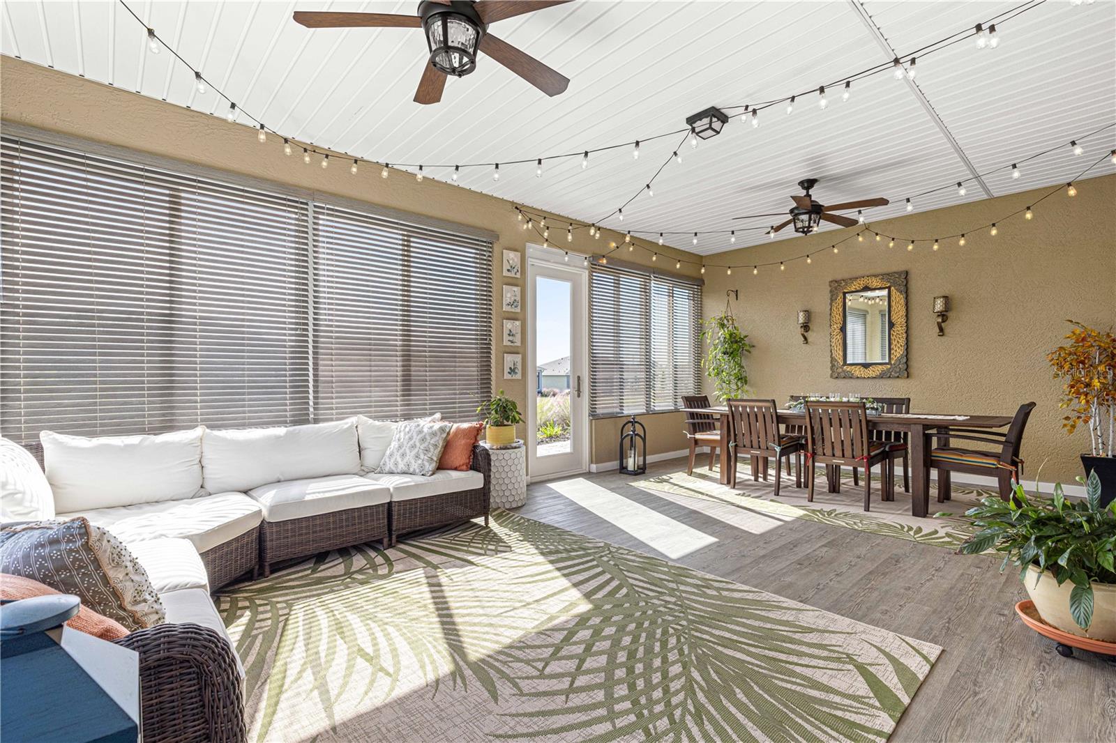 QUEDA DE PREÇO DE $ 10.000! Bem-vindo à casa dos seus sonhos com mais de $ 75.000 em atualizações de construtor e $ 55.000 em atualizações adicionais após a compra, MAIS um CARRINHO DE GOLFE Evolution 2022 de $ 10.000 INCLUÍDO (baterias de lítio e pneus radiais)!!! Este deslumbrante modelo Ariana de 2 anos possui apelo excepcional e uma varanda frontal convidativa, perfeita para café da manhã ou conversas noturnas com vizinhos. Entre para descobrir os tetos altos e um hall de entrada espaçoso. A cozinha gourmet possui lindas bancadas de granito e eletrodomésticos de aço inoxidável, incluindo forno duplo - ideal para grandes reuniões. Os armários escalonados são o sonho de um chef, completos com sancas, gaveta de temperos, Susan preguiçosa, garagem de eletrodomésticos, transportador especial para a batedeira e funcionalidade de fechamento suave. Retire-se para o espaçoso quarto principal, onde o relaxamento o aguarda. O luxuoso banheiro principal possui box amplo, proporcionando uma experiência de spa em casa. Os quartos estão dispostos em plano dividido para o máximo de privacidade. Você vai adorar o amplo quarto Florida, equipado com iluminação e persianas adicionais que combinam perfeitamente a vida interna e externa. O espaço ao ar livre é perfeito para entretenimento com um lindo pátio de tijolos (não mais disponível como opção de construção) projetado para grelhar e aproveitar o clima da Flórida. Os armários e balcões extras da lavanderia são perfeitos para todas as suas necessidades de armazenamento. A lavadora, secadora e geladeira na garagem estão incluídas! Para os amadores, uma oficina climatizada na garagem acrescenta versatilidade, enquanto a garagem estendida de 1,2 m oferece amplo armazenamento com piso revestido com epóxi de baixa manutenção. Esta casa também possui uma entrada extra larga de 21 pés! Um sistema de proteção contra surtos para toda a casa está incluído para maior tranquilidade em relação aos seus eletrônicos em casa. O sistema de filtragem A/C de 6" com proteção de carbono e UV garante um ambiente de vida saudável, enquanto o isolamento adicional no sótão promove a eficiência energética. Esta casa também possui um amaciante de água e um sistema de filtragem por osmose reversa para excelente qualidade da água. Sem carpete, os pisos de cerâmica e pranchas de vinil não são apenas elegantes, mas também fáceis de manter. As taxas HOA cobrem a manutenção externa e o cuidado do gramado, deixando mais tempo para você brincar ou relaxar. Agende seu passeio hoje e veja por que esta casa é perfeita para o seu estilo de vida!