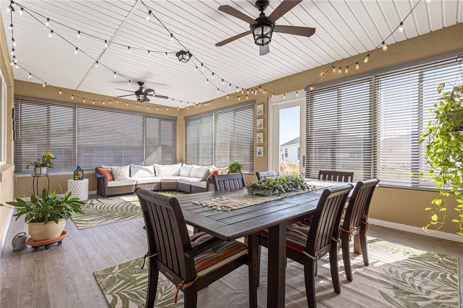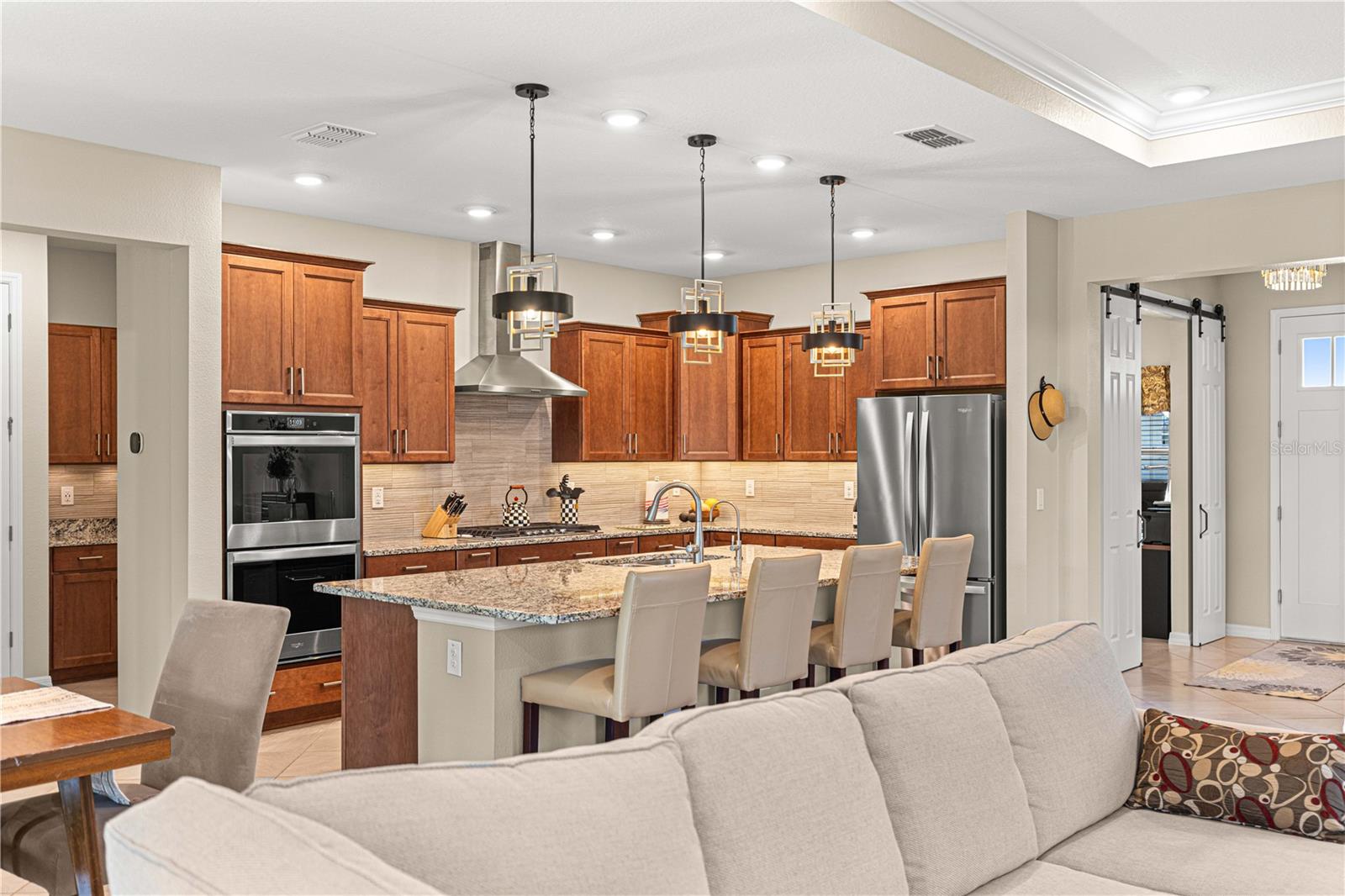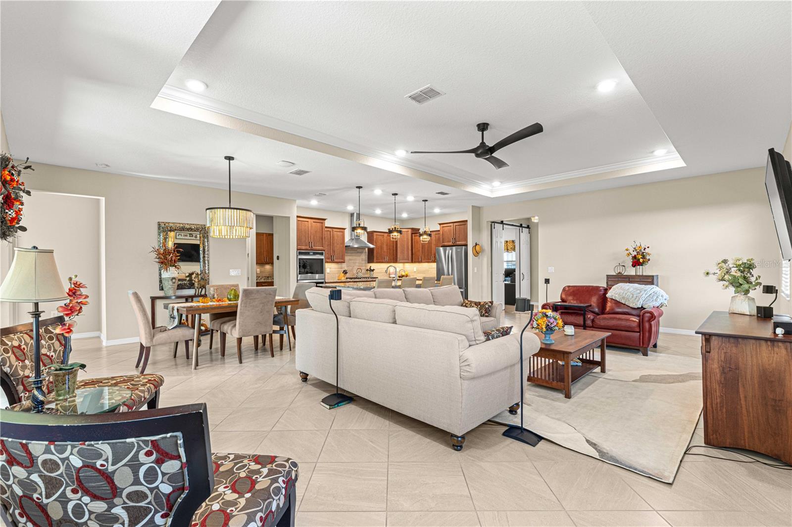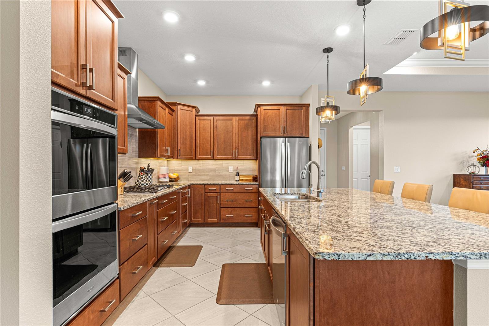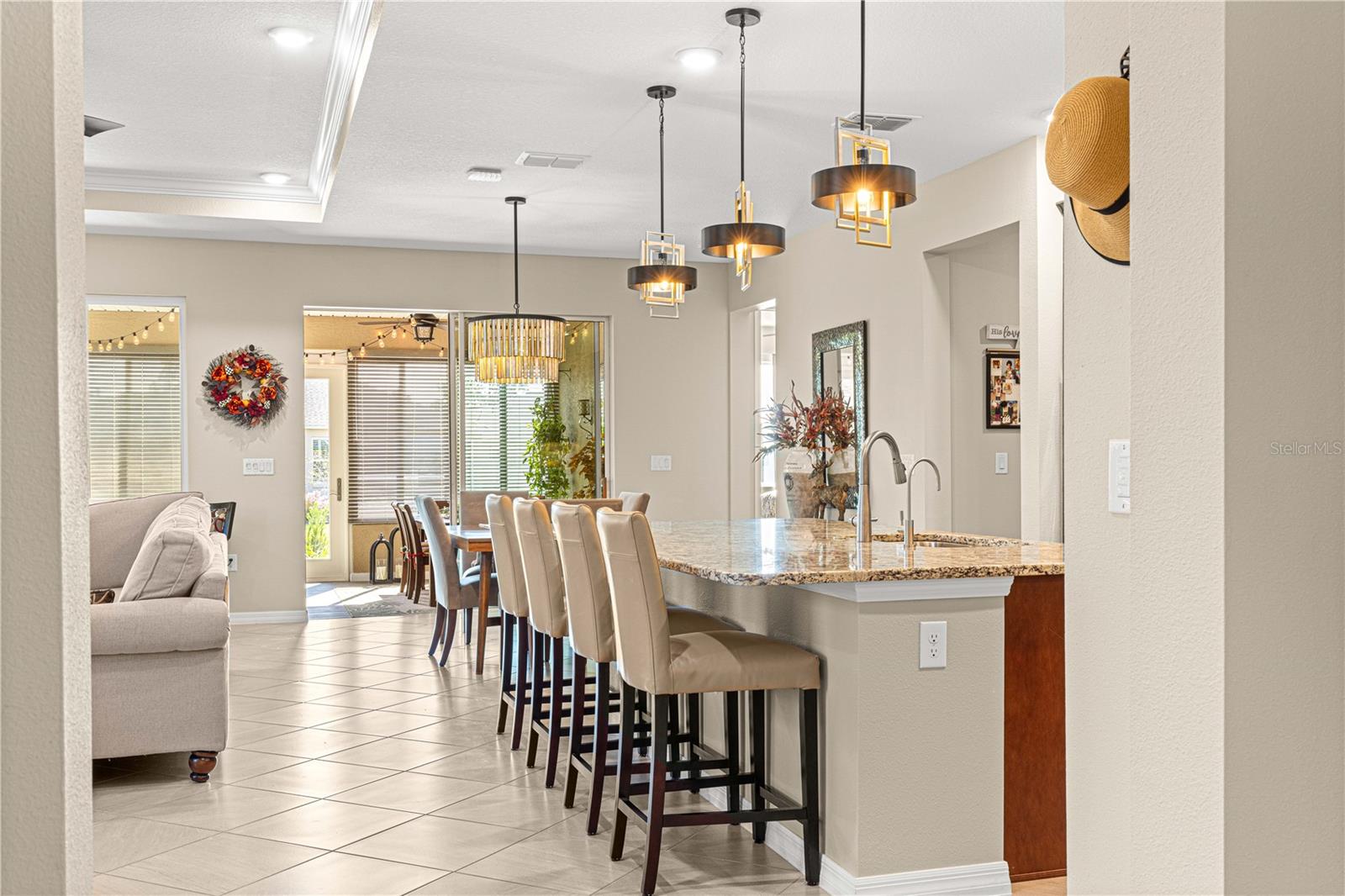 QUEDA DE PREÇO DE $ 10.000! Bem-vindo à casa dos seus sonhos com mais de $ 75.000 em atualizações de construtor e $ 55.000 em atualizações adicionais após a compra, MAIS um CARRINHO DE GOLFE Evolution 2022 de $ 10.000 INCLUÍDO (baterias de lítio e pneus radiais)!!! Este deslumbrante modelo Ariana de 2 anos possui apelo excepcional e uma varanda frontal convidativa, perfeita para café da manhã ou conversas noturnas com vizinhos. Entre para descobrir os tetos altos e um hall de entrada espaçoso. A cozinha gourmet possui lindas bancadas de granito e eletrodomésticos de aço inoxidável, incluindo forno duplo - ideal para grandes reuniões. Os armários escalonados são o sonho de um chef, completos com sancas, gaveta de temperos, Susan preguiçosa, garagem de eletrodomésticos, transportador especial para a batedeira e funcionalidade de fechamento suave. Retire-se para o espaçoso quarto principal, onde o relaxamento o aguarda. O luxuoso banheiro principal possui box amplo, proporcionando uma experiência de spa em casa. Os quartos estão dispostos em plano dividido para o máximo de privacidade. Você vai adorar o amplo quarto Florida, equipado com iluminação e persianas adicionais que combinam perfeitamente a vida interna e externa. O espaço ao ar livre é perfeito para entretenimento com um lindo pátio de tijolos (não mais disponível como opção de construção) projetado para grelhar e aproveitar o clima da Flórida. Os armários e balcões extras da lavanderia são perfeitos para todas as suas necessidades de armazenamento. A lavadora, secadora e geladeira na garagem estão incluídas! Para os amadores, uma oficina climatizada na garagem acrescenta versatilidade, enquanto a garagem estendida de 1,2 m oferece amplo armazenamento com piso revestido com epóxi de baixa manutenção. Esta casa também possui uma entrada extra larga de 21 pés! Um sistema de proteção contra surtos para toda a casa está incluído para maior tranquilidade em relação aos seus eletrônicos em casa. O sistema de filtragem A/C de 6" com proteção de carbono e UV garante um ambiente de vida saudável, enquanto o isolamento adicional no sótão promove a eficiência energética. Esta casa também possui um amaciante de água e um sistema de filtragem por osmose reversa para excelente qualidade da água. Sem carpete, os pisos de cerâmica e pranchas de vinil não são apenas elegantes, mas também fáceis de manter. As taxas HOA cobrem a manutenção externa e o cuidado do gramado, deixando mais tempo para você brincar ou relaxar. Agende seu passeio hoje e veja por que esta casa é perfeita para o seu estilo de vida!