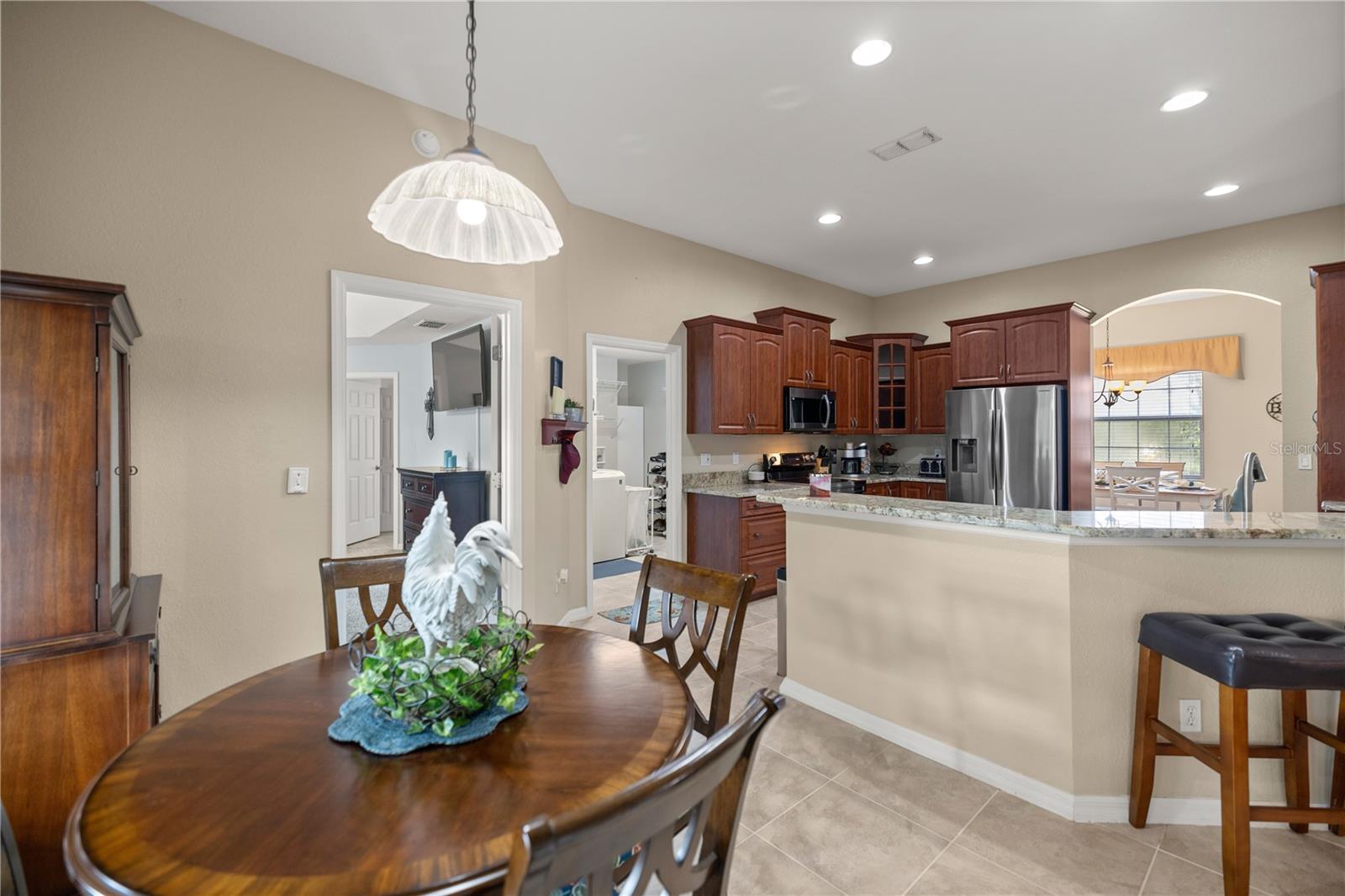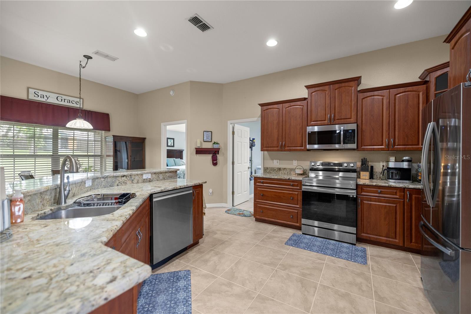 Bem-vindo a esta deslumbrante casa de 3 quartos e 2 banheiros que exala charme e funcionalidade. O belo exterior apresenta elegantes detalhes em pedra, aumentando sua atratividade. Entre e seja recebido por uma planta ampla com amplas áreas de estar, perfeitas para relaxamento e entretenimento. O coração da casa é a linda cozinha, com ricos armários de madeira, elegantes bancadas de pedra e modernos eletrodomésticos de aço inoxidável. Há uma sala de jantar formal para reuniões especiais e uma aconchegante copa na cozinha para refeições casuais. Esta casa também oferece uma sala bônus versátil que pode ser usada como espaço flexível para atender às suas necessidades. A suíte principal de grandes dimensões é um verdadeiro refúgio, ostentando teto falso, pia dupla, chuveiro separado e banheira de imersão luxuosa. Uma lavanderia espaçosa oferece amplo espaço para tarefas de lavanderia e armazenamento adicional. Desfrute da vida ao ar livre o ano todo no amplo pátio traseiro coberto e protegido, acessível tanto pela sala de estar quanto pela copa. A propriedade fica em um terreno generoso de mais de meio acre, completo com cerca de privacidade, uma grande entrada de automóveis, sistema de irrigação e um enorme quintal com lindas árvores para maior tranquilidade.