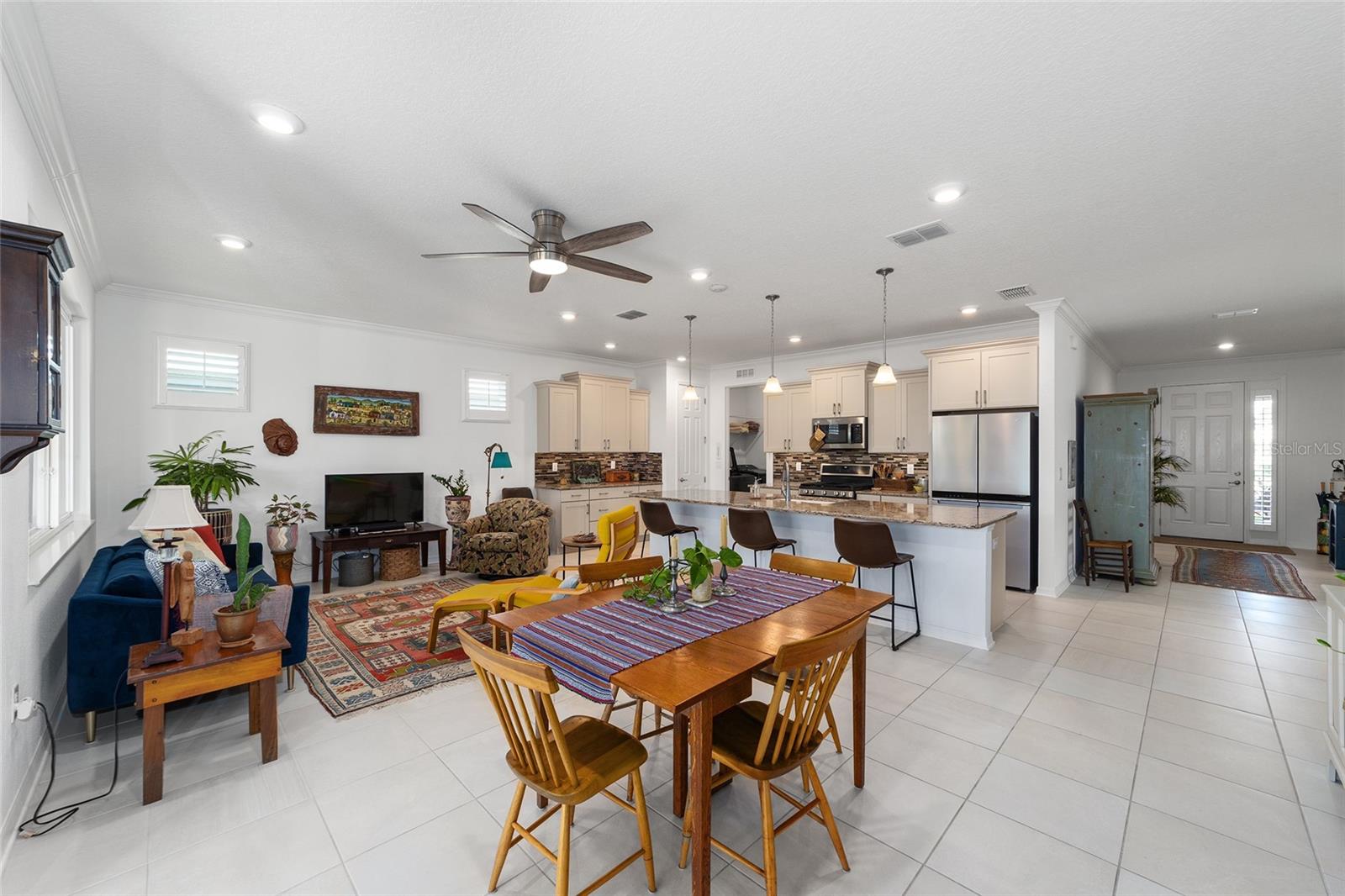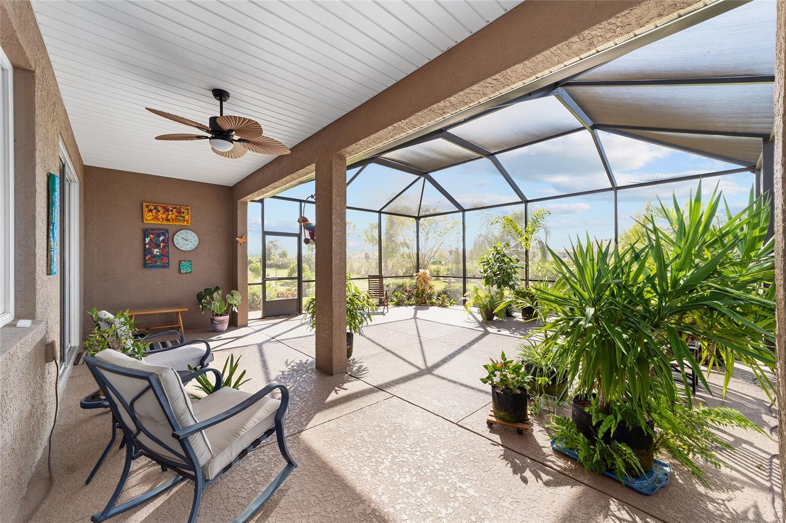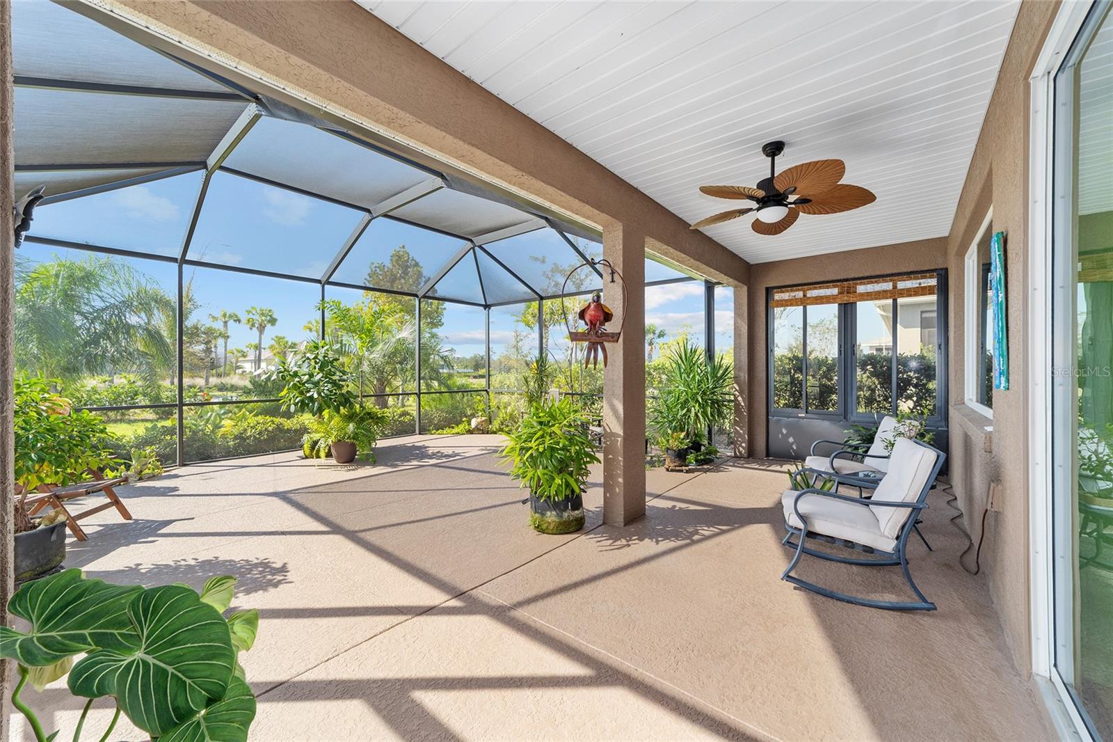 Bem-vindo ao seu oásis privado! Esta casa deslumbrante oferece 2 quartos, 2 banheiros e um versátil quarto/escritório flexível com elegantes portas francesas e uma cama embutida para hóspedes adicionais. Aproveite o conforto de uma vida em conceito aberto, sem carpete e ventiladores de teto em todos os quartos, além de detalhes encantadores como sancas e venezianas. Da convidativa varanda frontal a todos os detalhes elegantes, esta casa recebe você com calor e elegância. Saia para o seu amplo pátio coberto de 20' x 26' voltado para o sul - perfeito para descontrair, relaxar ou receber convidados com conforto. O melhor de tudo é que esta casa oferece uma vida livre de manutenção! Esqueça cortar a grama, aparar sebes, pintar ou consertar telhados – tudo é feito para você. Além disso, lixo, reciclagem e internet básica estão incluídos na taxa HOA. Este condomínio oferece um verdadeiro estilo de vida de resort, completo com golfe e um calendário completo de atividades para desfrutar com seus novos amigos. Convenientemente localizado perto de instalações médicas, lojas, restaurantes e tudo que você precisa para aproveitar ao máximo o estilo de vida da Flórida. Uma lista de atualização está disponível mediante solicitação - venha experimentar esta casa excepcional hoje mesmo!