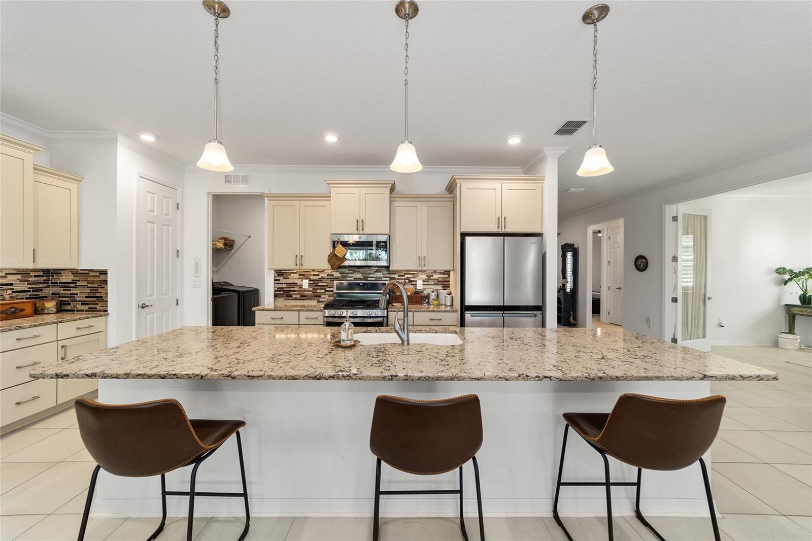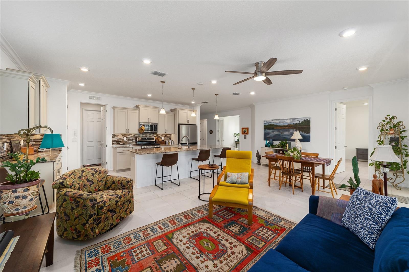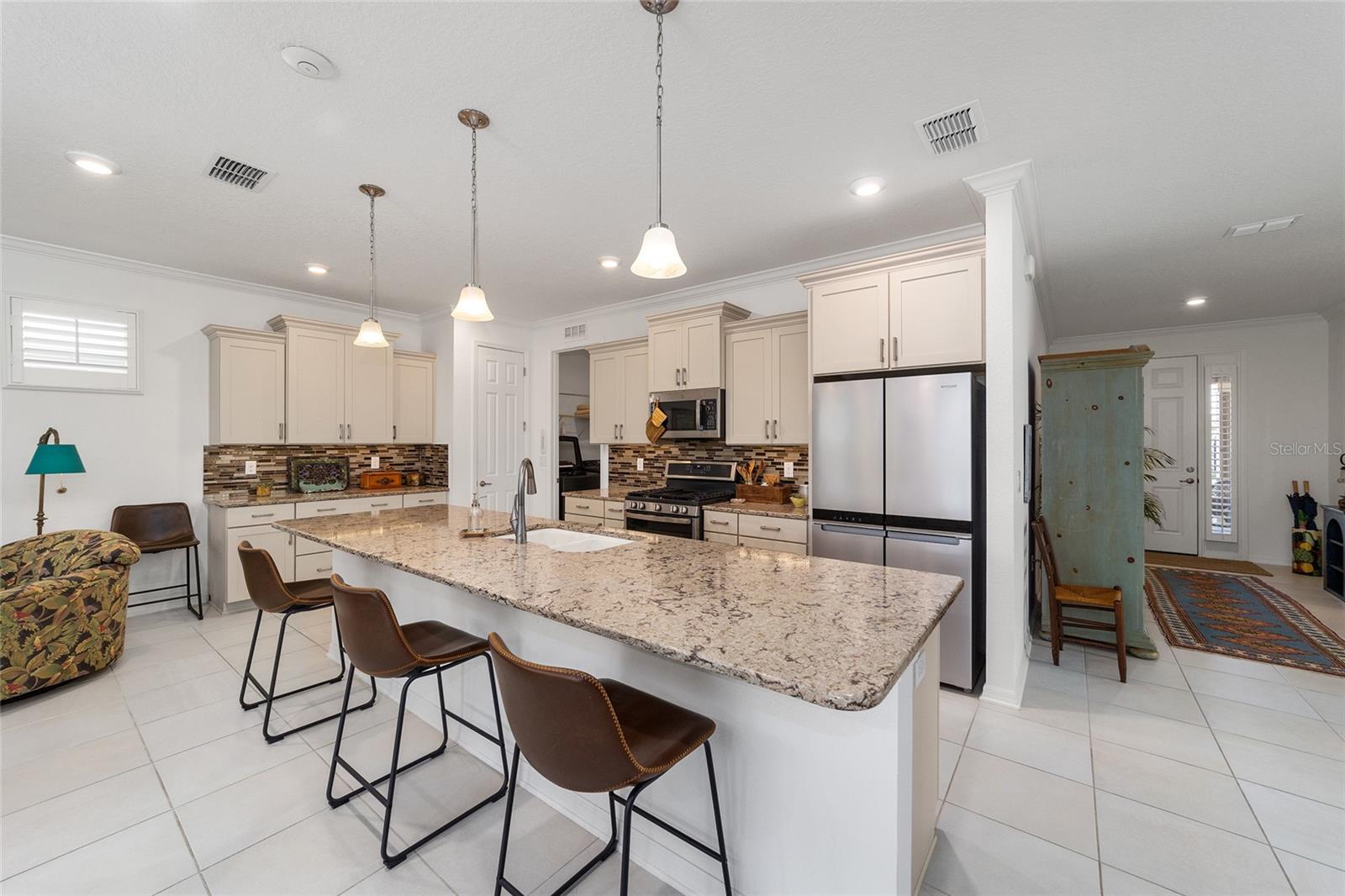 Bem-vindo ao seu oásis privado! Esta casa deslumbrante oferece 2 quartos, 2 banheiros e um versátil quarto/escritório flexível com elegantes portas francesas e uma cama embutida para hóspedes adicionais. Aproveite o conforto de uma vida em conceito aberto, sem carpete e ventiladores de teto em todos os quartos, além de detalhes encantadores como sancas e venezianas. Da convidativa varanda frontal a todos os detalhes elegantes, esta casa recebe você com calor e elegância. Saia para o seu amplo pátio coberto de 20' x 26' voltado para o sul - perfeito para descontrair, relaxar ou receber convidados com conforto. O melhor de tudo é que esta casa oferece uma vida livre de manutenção! Esqueça cortar a grama, aparar sebes, pintar ou consertar telhados – tudo é feito para você. Além disso, lixo, reciclagem e internet básica estão incluídos na taxa HOA. Este condomínio oferece um verdadeiro estilo de vida de resort, completo com golfe e um calendário completo de atividades para desfrutar com seus novos amigos. Convenientemente localizado perto de instalações médicas, lojas, restaurantes e tudo que você precisa para aproveitar ao máximo o estilo de vida da Flórida. Uma lista de atualização está disponível mediante solicitação - venha experimentar esta casa excepcional hoje mesmo!