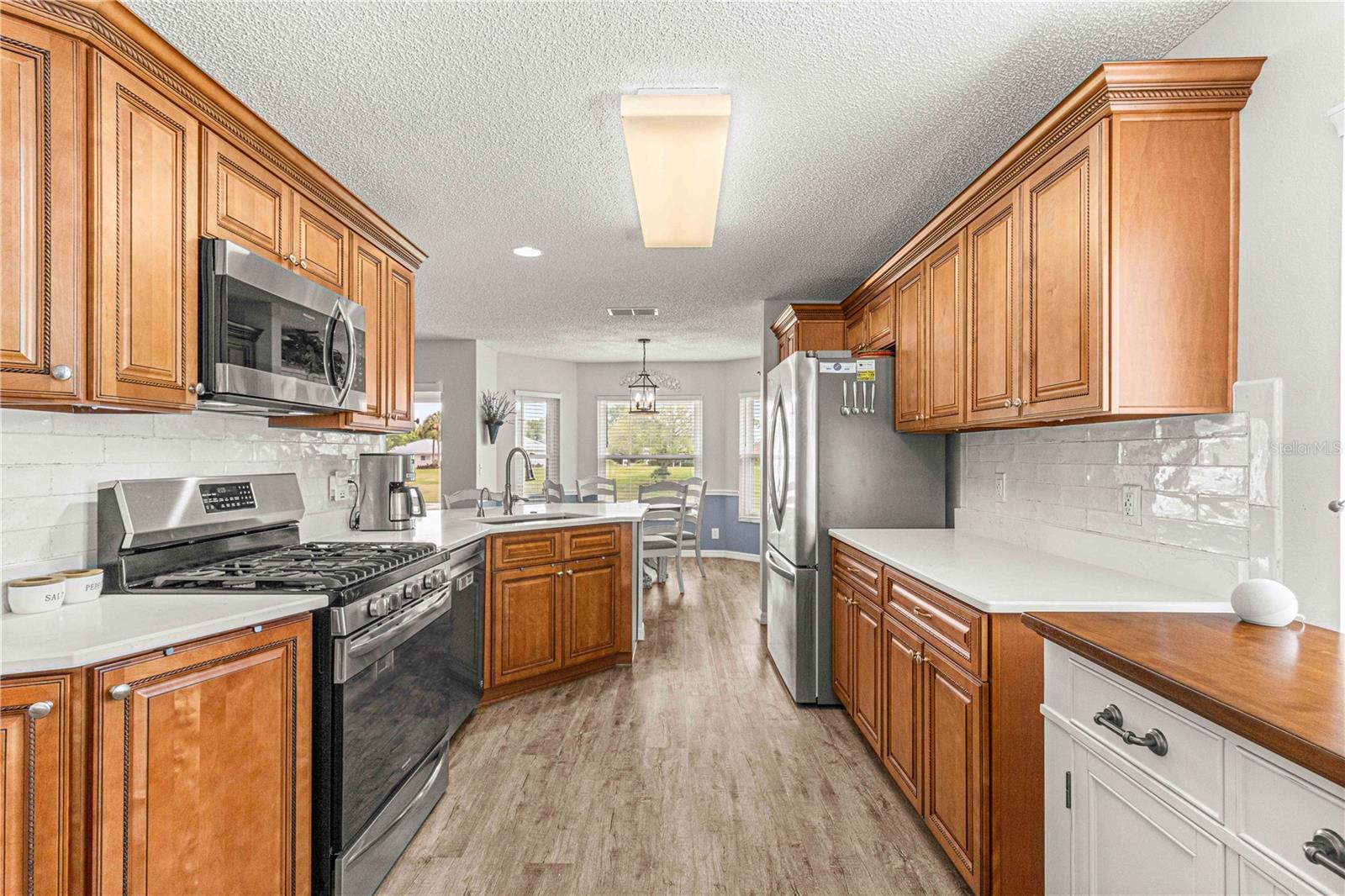 Bem -vindo a uma excelente oportunidade de estilo de vida na comunidade exclusiva de mais de 55 anos de On Top of the World! Esta casa totalmente atualizada de 2 quartos e dois banheiros-com uma sala flexível adicional-está perfeitamente situada no 14º fairway, oferecendo vistas fantásticas do campo de golfe e um cenário invejável para os entusiastas do golfe. Com 1.517 pés quadrados, esta residência tem uma planta convidativa de piso aberto que conecta perfeitamente as espaçosas áreas de estar, jantar e cozinha. A cozinha é uma delícia, com armários de bordo de corda Sienna da Matrix com um sofisticado acabamento de esmalte de chocolate e elegantes molduras da coroa. As bancadas de quartzo e aparelhos de aço inoxidável mais recentes acrescentam um toque de luxo moderno, tornando a preparação de refeições elegante e eficiente. Grandes janelas de painel duplo de Simonton instaladas há apenas 3 anos, banhe o interior em luz natural, destacando o piso de tábua de vinil de luxo encontrado em todas as áreas de estar, sala flexível e cozinha. Ambos os banheiros receberam atualizações de bom gosto há três anos, incluindo novas ladrilhos, pisos, armários, bancadas em granito e portas de chuveiro atualizadas no banho do proprietário - consumindo uma experiência contemporânea e refrescante. Atualizações adicionais, como um aquecedor de água e um teto com apenas três anos de idade, proporcionam tranqüilidade e desempenho duradouro. Com uma garagem segura de dois carros e uma política adequada para animais de estimação, esta casa foi projetada para atender a um estilo de vida vibrante em uma comunidade acolhedora. Não perca a chance de adotar uma vida de conforto, luxo e recreação no topo do mundo - onde todos os dias parecem férias no campo de golfe.