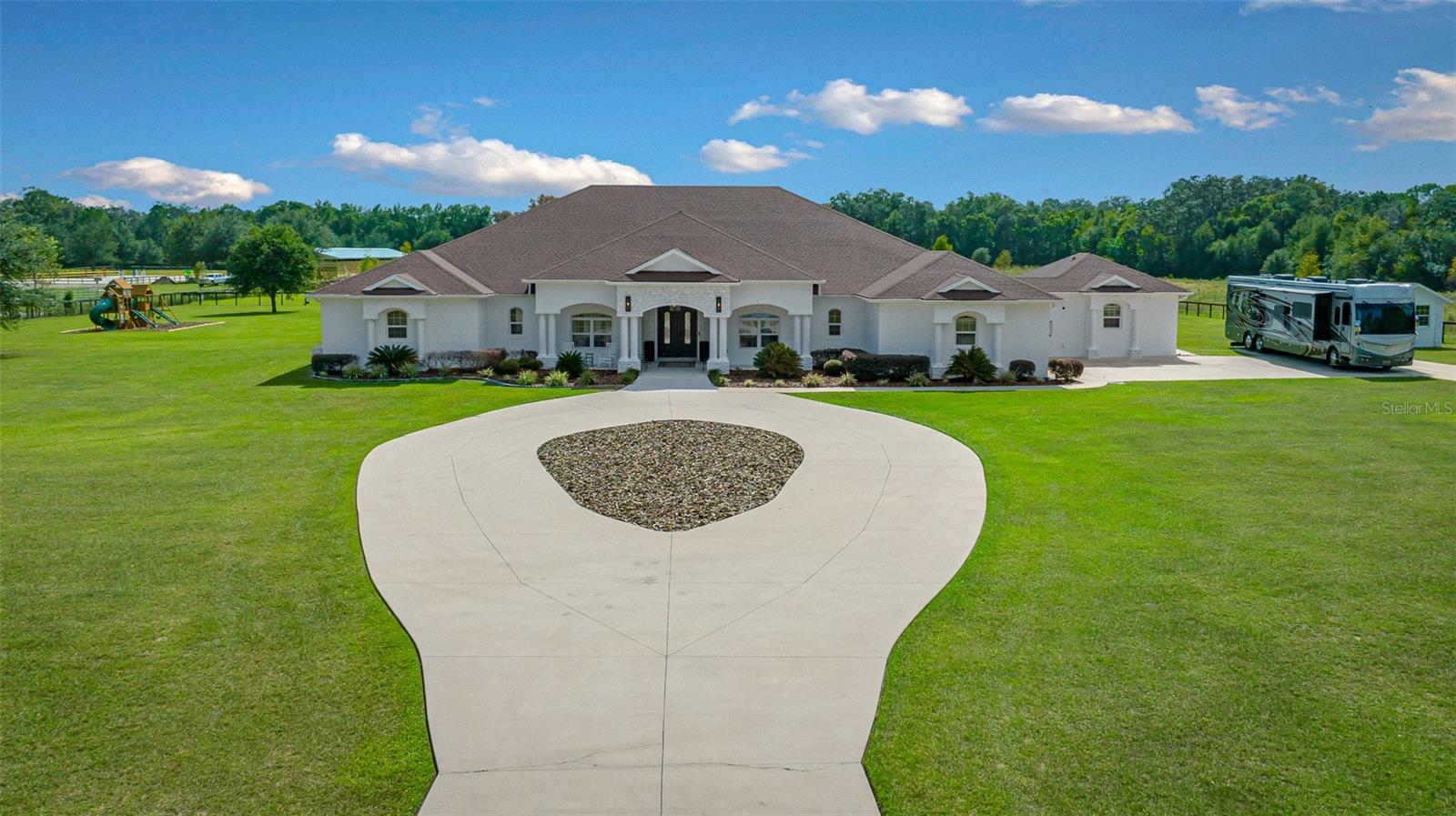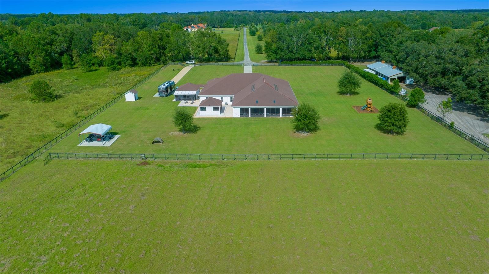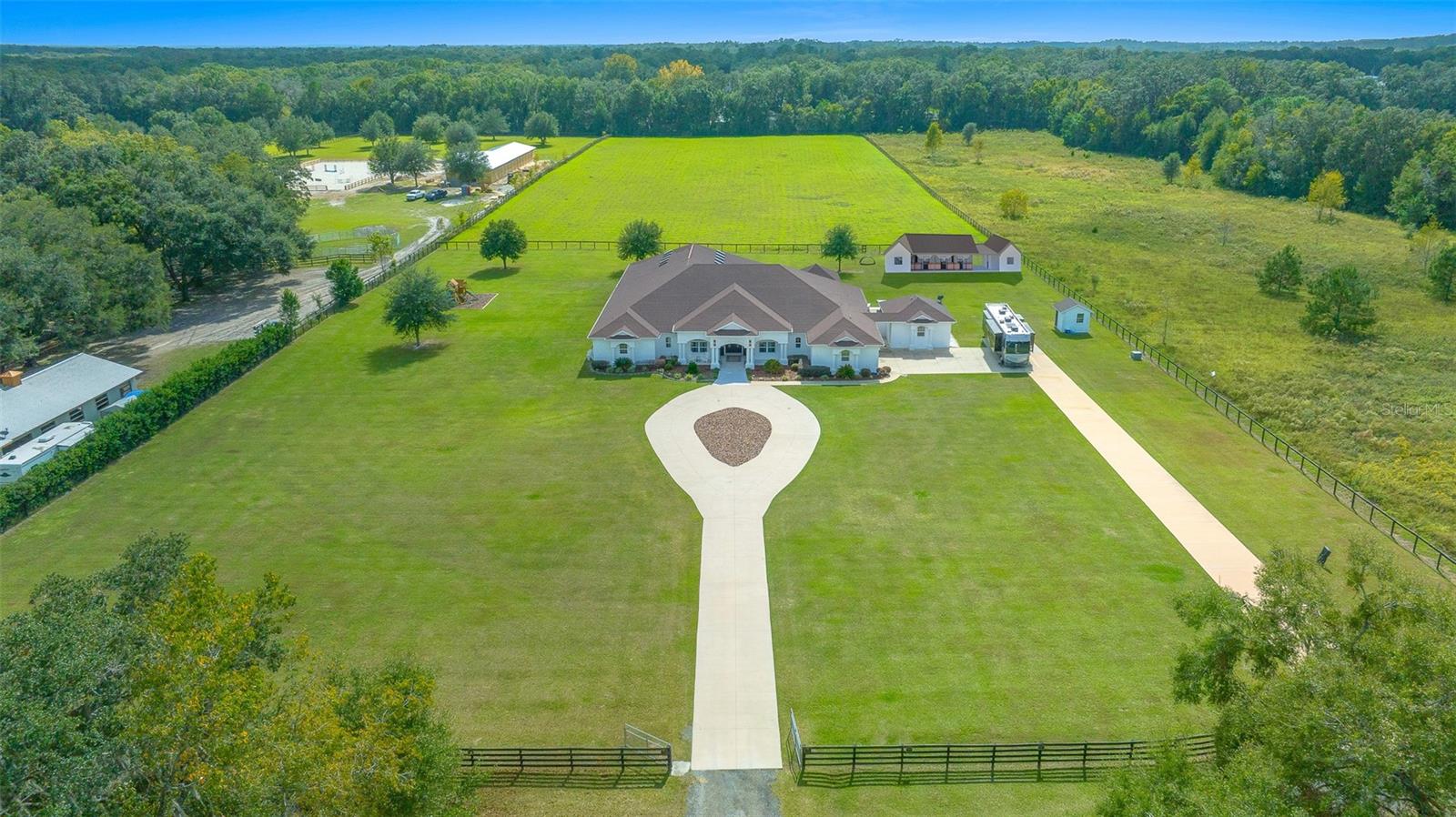 Uma ou mais fotos foram praticamente encenadas. Em uma das áreas mais desejadas do noroeste de Ocala, esta notável propriedade de mais de 10 acres oferece uma mistura de luxo e privacidade. Convenientemente entre Adena Golf e Country Club, Golden Ocala Golf & Equestrian Club e o Centro Equestre Mundial, os residentes podem se entregar a uma variedade vibrante de eventos equestres, golfe de classe mundial, refeições excepcionais, compras e festividades durante todo o ano. Esta propriedade meticulosamente mantida apresenta paisagismo impressionante e uma atmosfera semelhante ao resort. Desde o momento em que você entra na residência principal, você notará que todos os detalhes refletem artesanato excepcional, desde tetos de bandeja crescentes e molduras elegantes da coroa até as luminárias contemporâneas que adornam cada sala. A espaçosa cozinha do chef é um paraíso culinário, equipado com duas ilhas, bancadas de mármore brasileira e aparelhos de ponta, incluindo uma faixa de gás. Uma sala de mídia aconchegante oferece o cenário para noites de cinema, completas com cadeiras de projetor e teatro. A suíte primária serve como um retiro sereno e inclui uma sala de estar em anexo com uma lareira, acesso ao pátio, juntamente com um luxuoso banheira de suíte, com uma banheira de imersão, chuveiro, vanidades duplas e piso de mármore requintado. O expansivo pátio abre para um deck de piscina coberta, que é nada menos que espetacular, completo com lareira, televisão, piscina e spa ideal para entreter os hóspedes. Uma cozinha externa coberta separada atende a todas as suas necessidades de grelhar e cozinha, garantindo experiências de refeições ao ar livre. Além disso, um chalé de hóspedes encantador com seu próprio pátio exibido reflete o design sofisticado da casa principal. Com a oportunidade de construir um celeiro na almofada de concreto existente e em grandes pastagens ideais para adicionar paddocks adaptados às necessidades de seus cavalos, esta propriedade apresenta um estilo de vida incomparável para os entusiastas equestres que buscam luxo e funcionalidade.