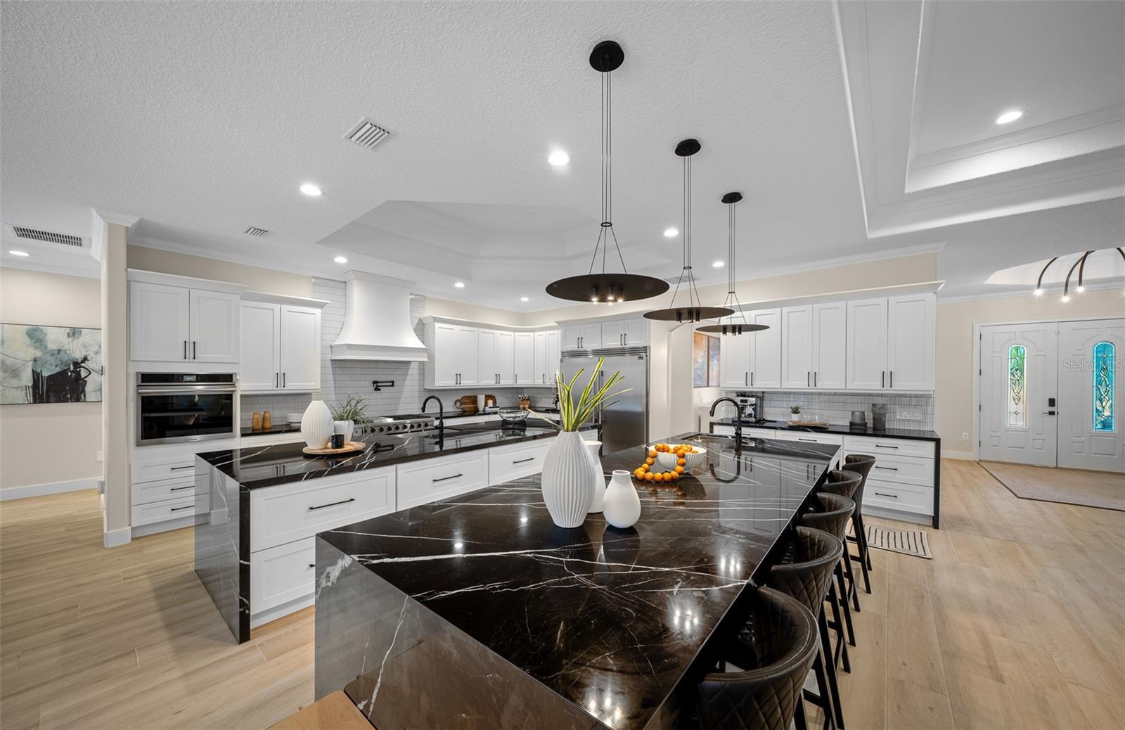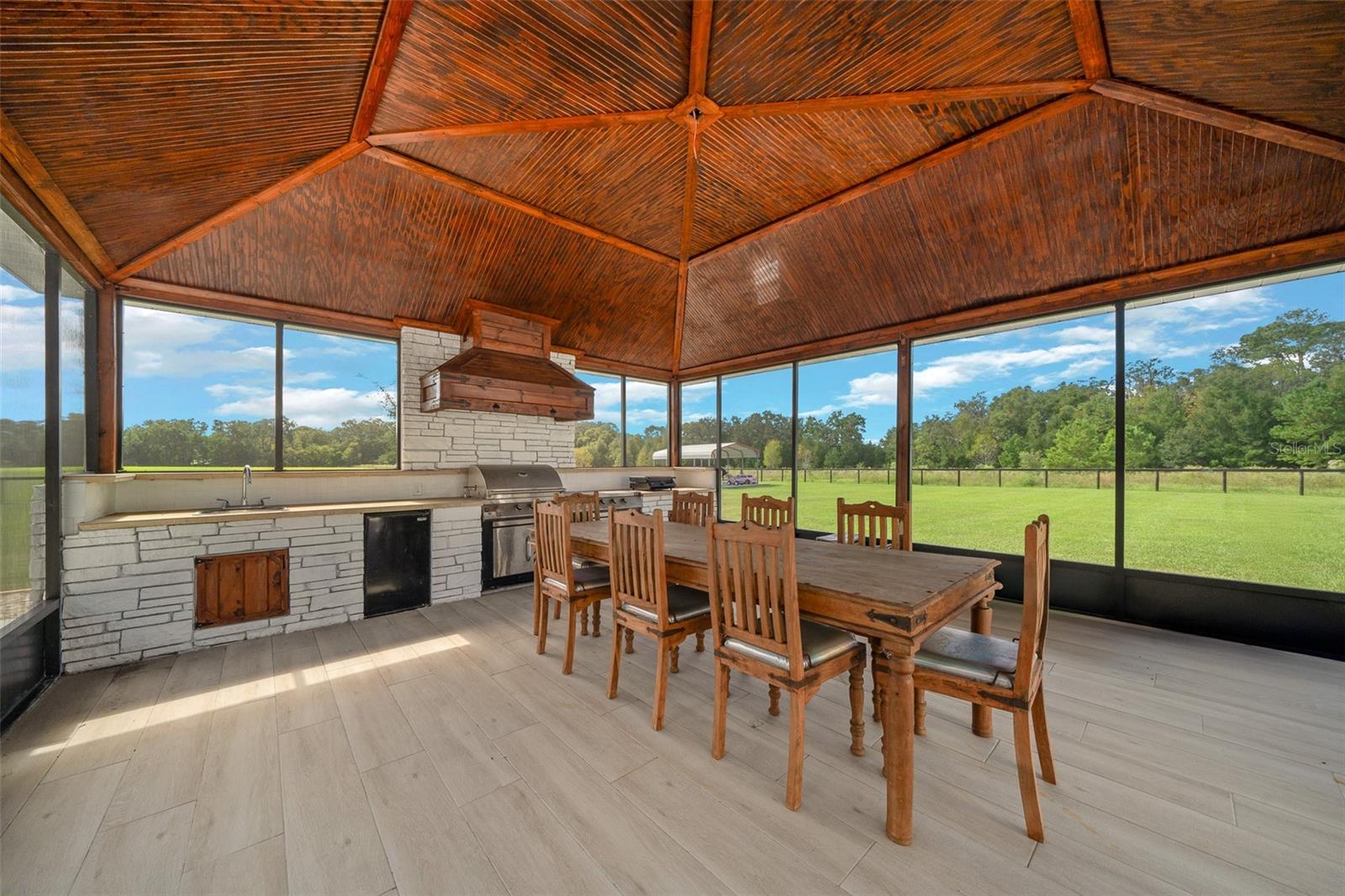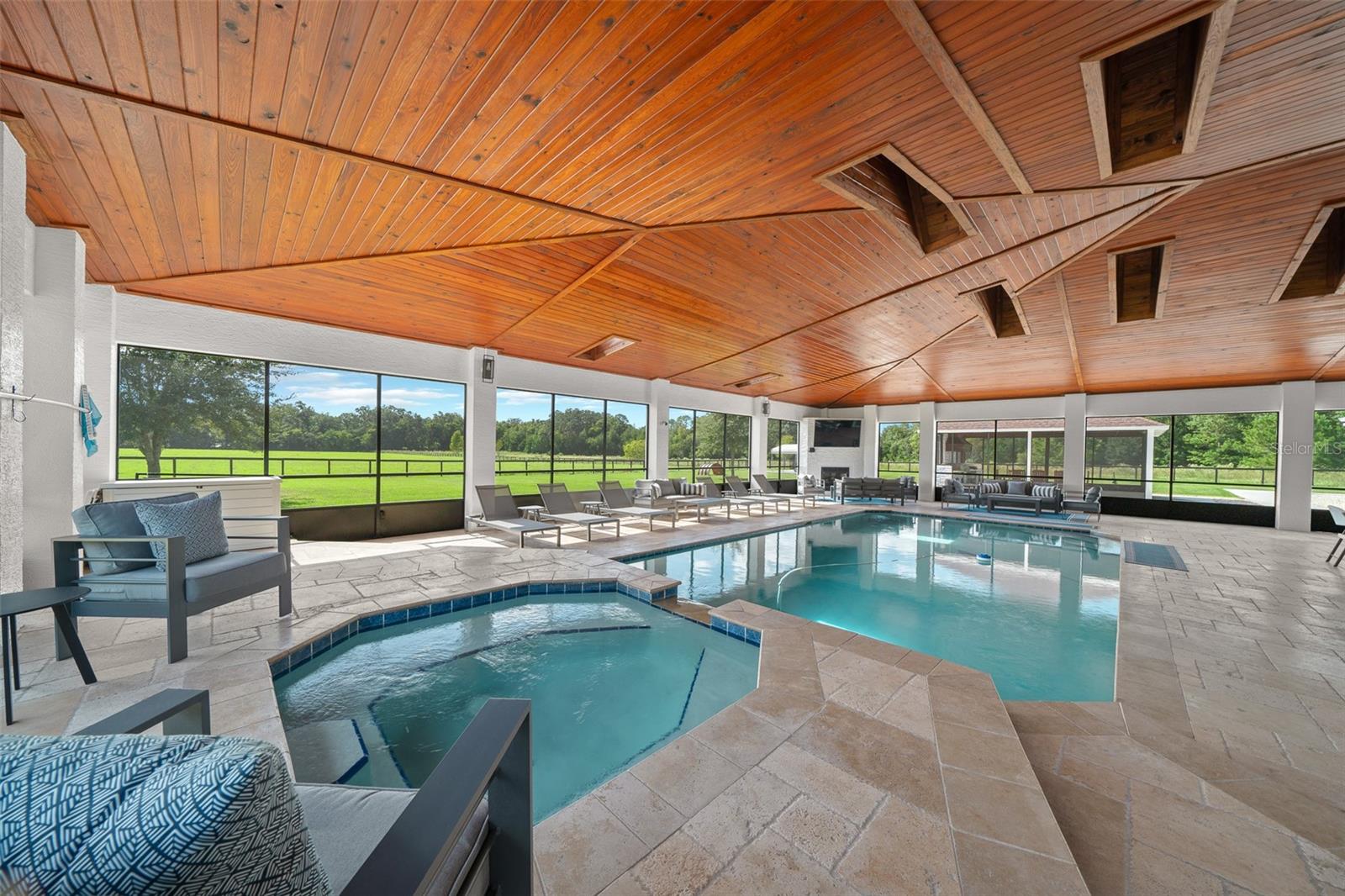Uma ou mais fotos foram praticamente encenadas. Em uma das áreas mais desejadas do noroeste de Ocala, esta notável propriedade de mais de 10 acres oferece uma mistura de luxo e privacidade. Convenientemente entre Adena Golf e Country Club, Golden Ocala Golf & Equestrian Club e o Centro Equestre Mundial, os residentes podem se entregar a uma variedade vibrante de eventos equestres, golfe de classe mundial, refeições excepcionais, compras e festividades durante todo o ano. Esta propriedade meticulosamente mantida apresenta paisagismo impressionante e uma atmosfera semelhante ao resort. Desde o momento em que você entra na residência principal, você notará que todos os detalhes refletem artesanato excepcional, desde tetos de bandeja crescentes e molduras elegantes da coroa até as luminárias contemporâneas que adornam cada sala. A espaçosa cozinha do chef é um paraíso culinário, equipado com duas ilhas, bancadas de mármore brasileira e aparelhos de ponta, incluindo uma faixa de gás. Uma sala de mídia aconchegante oferece o cenário para noites de cinema, completas com cadeiras de projetor e teatro. A suíte primária serve como um retiro sereno e inclui uma sala de estar em anexo com uma lareira, acesso ao pátio, juntamente com um luxuoso banheira de suíte, com uma banheira de imersão, chuveiro, vanidades duplas e piso de mármore requintado. O expansivo pátio abre para um deck de piscina coberta, que é nada menos que espetacular, completo com lareira, televisão, piscina e spa ideal para entreter os hóspedes. Uma cozinha externa coberta separada atende a todas as suas necessidades de grelhar e cozinha, garantindo experiências de refeições ao ar livre. Além disso, um chalé de hóspedes encantador com seu próprio pátio exibido reflete o design sofisticado da casa principal. Com a oportunidade de construir um celeiro na almofada de concreto existente e em grandes pastagens ideais para adicionar paddocks adaptados às necessidades de seus cavalos, esta propriedade apresenta um estilo de vida incomparável para os entusiastas equestres que buscam luxo e funcionalidade.