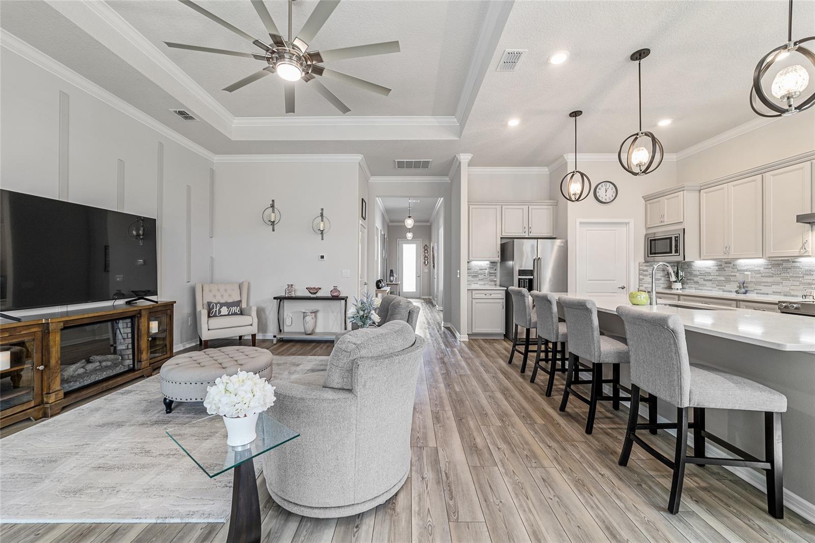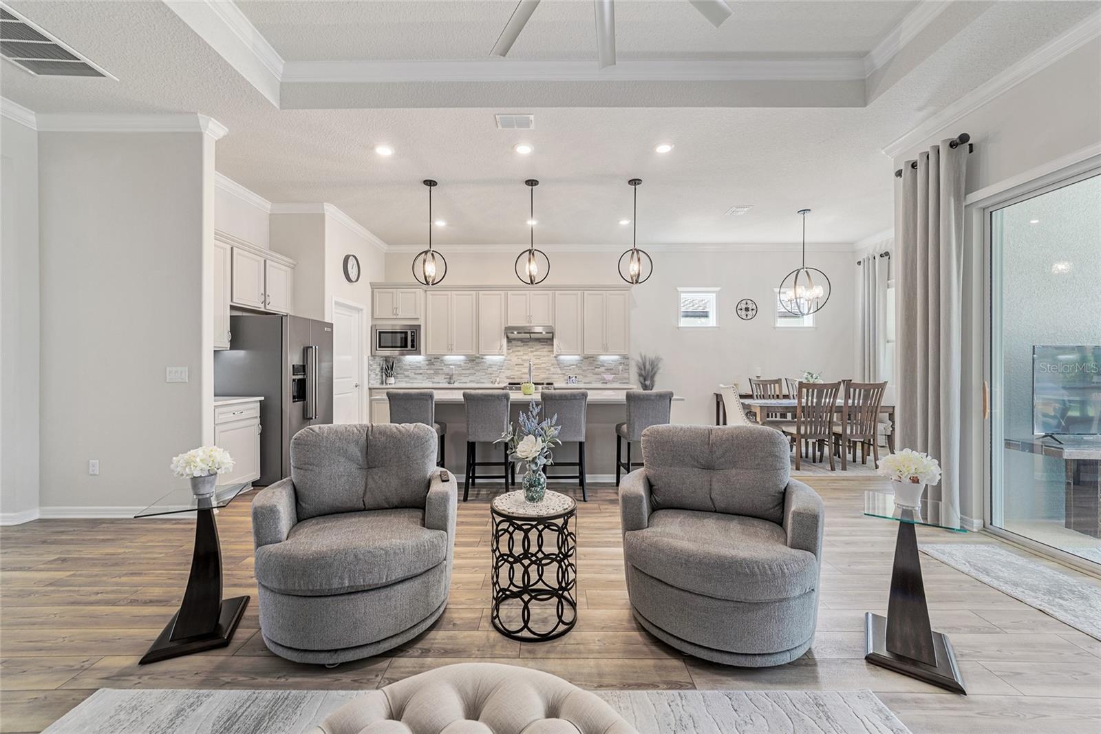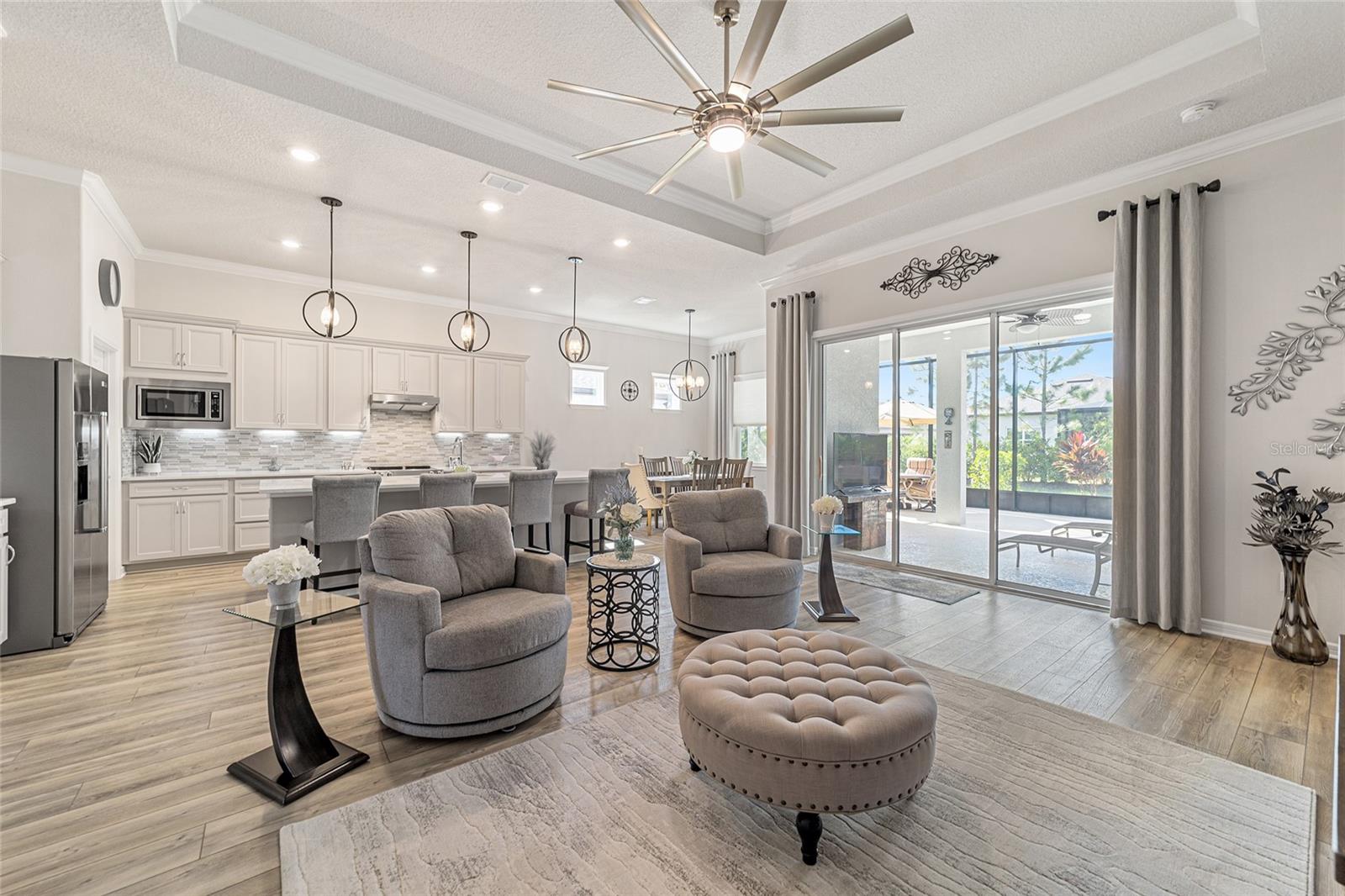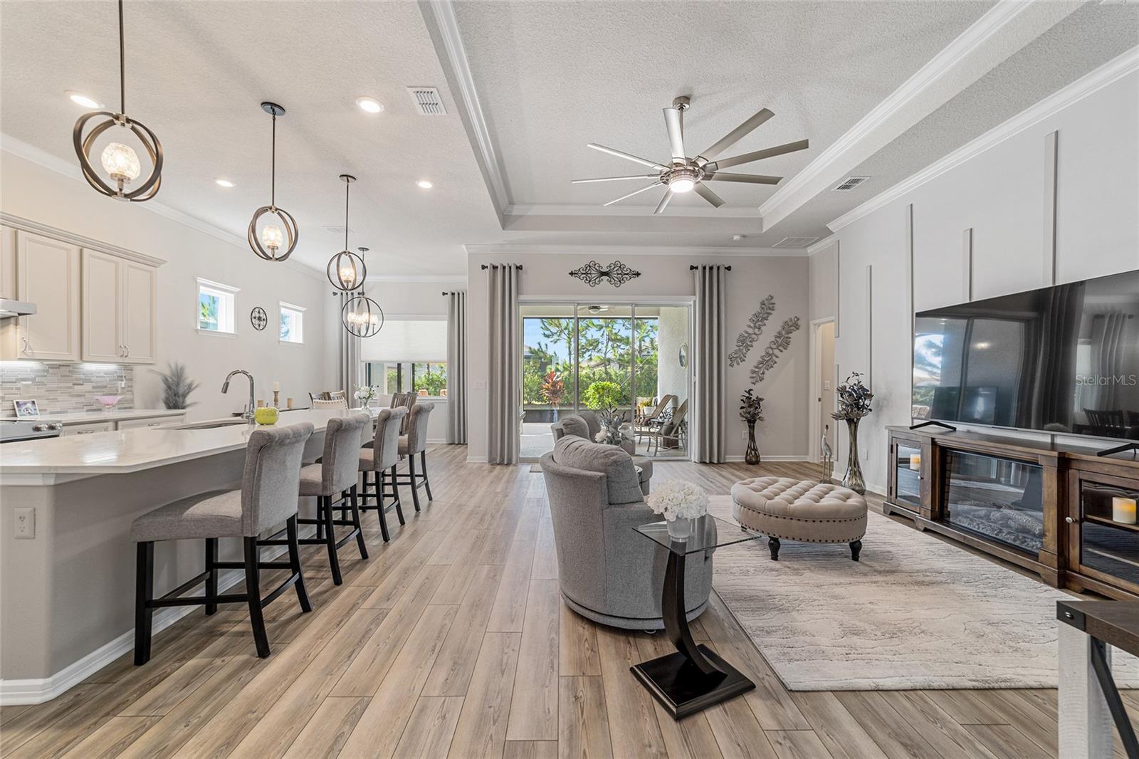 Não perca esta casa Prestige Model de design deslumbrante e cheia de acabamentos de alta qualidade que diferenciam esta casa das outras! Esta casa quase nova de 2 quartos/2 banheiros com uma sala bônus, garagem estendida de 4' e varanda expandida oferece toneladas de apelo e vida em estilo resort no seu melhor no condomínio fechado de golfe Stone Creek com mais de 55 anos, repleto de comodidades fantásticas. Esta casa meticulosamente projetada possui tetos altos, piso de tábuas escalonadas com aparência de madeira e belas sancas em um espaço contemporâneo em plano aberto, tornando a vida e o entretenimento muito fáceis. Os espaços claros e luminosos proporcionam uma sensação de conceito aberto com uma espaçosa sala de reuniões que oferece um belo teto de bandeja e enormes portas de vidro deslizantes que proporcionam acesso conveniente à grande varanda coberta e ao pátio estendido com tela de bolha, proporcionando um espaço tranquilo para apreciar o ar livre. Delicie-se com o conceito aberto Chef's Kitchen com luxuosos armários estilo Shaker com iluminação sob o armário, bancadas de quartzo, backsplash de azulejos de vidro, eletrodomésticos de aço inoxidável Kitchen Aid, assentos na altura do bar com iluminação pendente elegante e uma despensa para todo o seu armazenamento extra precisa. A suíte do proprietário possui luz natural abundante, um espaçoso closet com porta de lavanderia que conecta à lavanderia, banheiro privativo com pia dupla de altura confortável e chuveiro romano revestido de azulejos com janela de popa e borda de assento. Esta casa também possui um quarto secundário que oferece banheiro privativo completo e closet, lavabo separado para hóspedes e um gerador doméstico completo para uma tranquilidade inestimável. Faça sua mudança hoje mesmo e aproveite esta comunidade vibrante e ativa com inúmeras atividades e comodidades, incluindo campo de golfe, piscinas estilo resort, quadras esportivas, spa, passeios e entretenimento e muito mais!