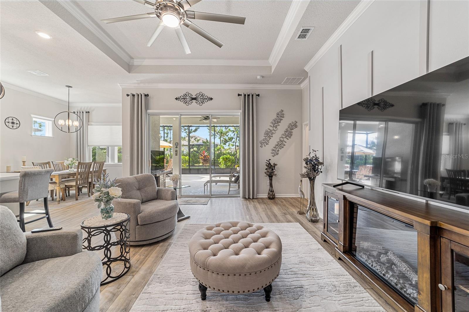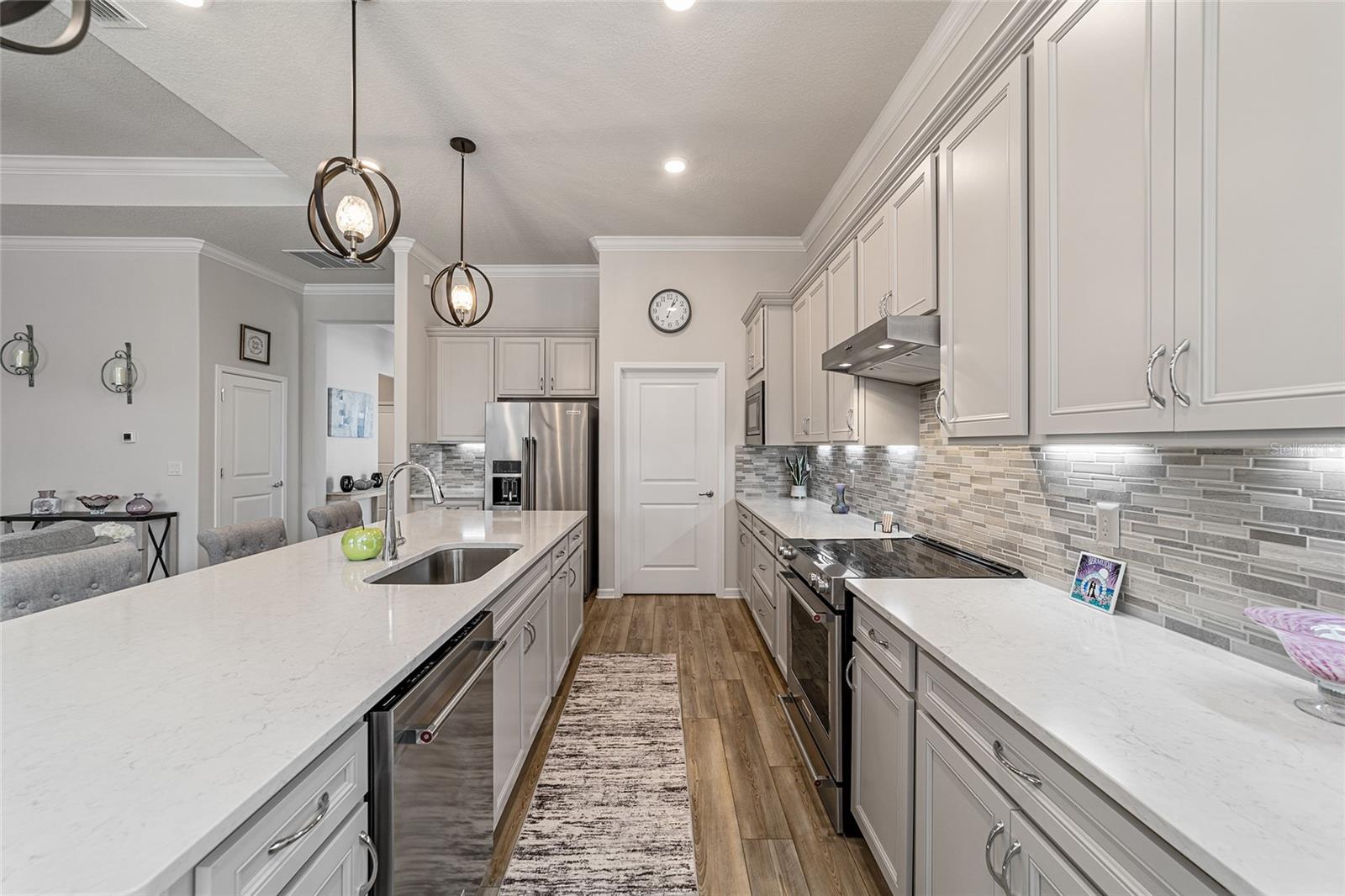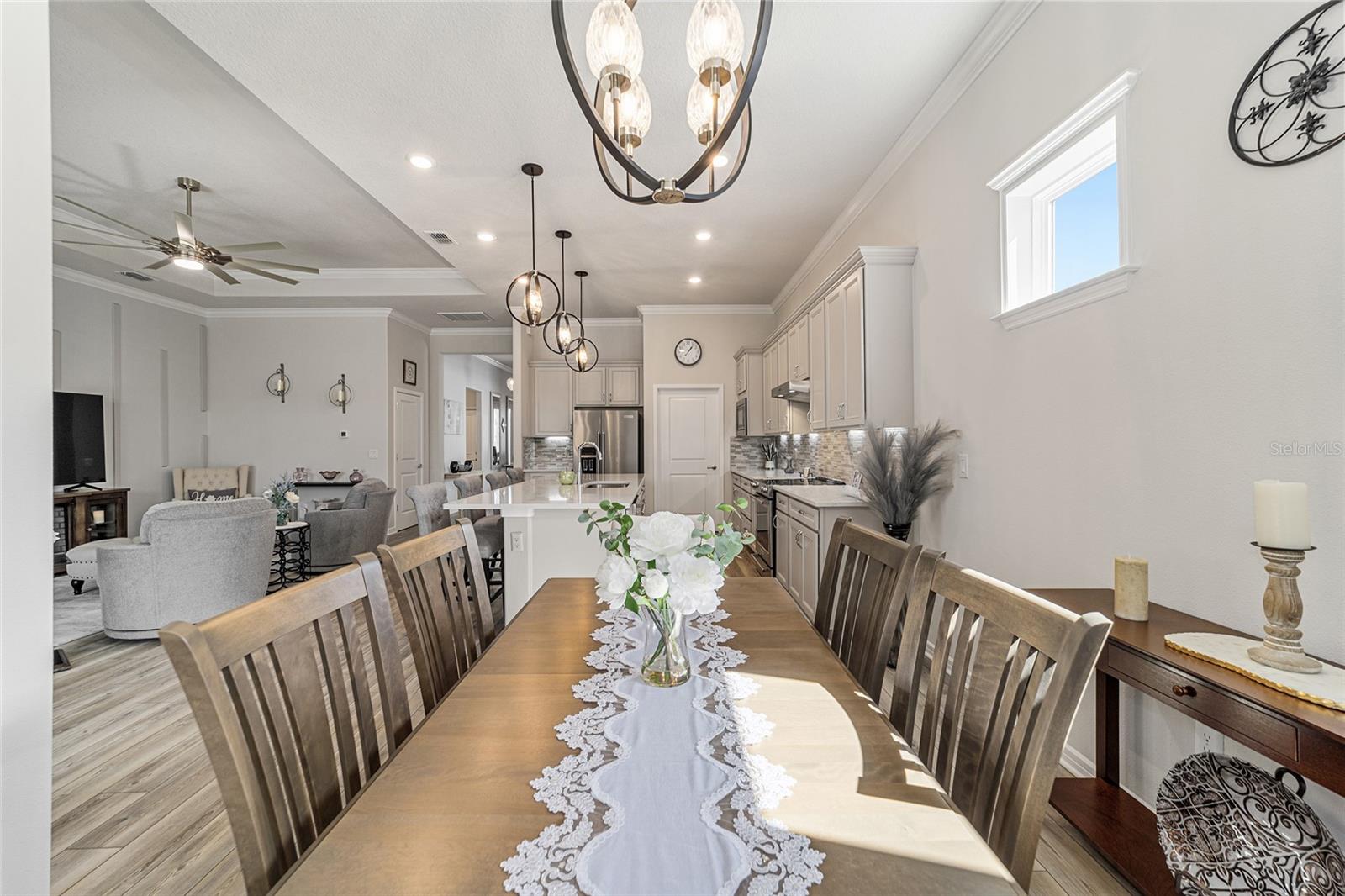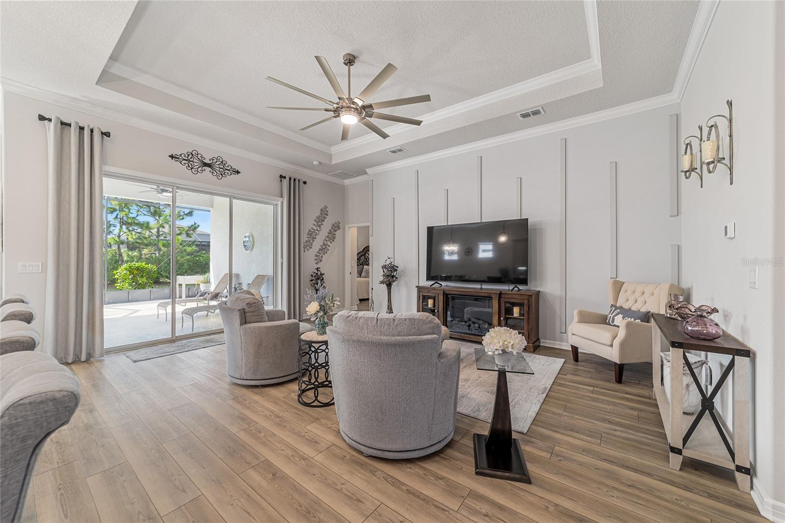 Não perca esta casa Prestige Model de design deslumbrante e cheia de acabamentos de alta qualidade que diferenciam esta casa das outras! Esta casa quase nova de 2 quartos/2 banheiros com uma sala bônus, garagem estendida de 4' e varanda expandida oferece toneladas de apelo e vida em estilo resort no seu melhor no condomínio fechado de golfe Stone Creek com mais de 55 anos, repleto de comodidades fantásticas. Esta casa meticulosamente projetada possui tetos altos, piso de tábuas escalonadas com aparência de madeira e belas sancas em um espaço contemporâneo em plano aberto, tornando a vida e o entretenimento muito fáceis. Os espaços claros e luminosos proporcionam uma sensação de conceito aberto com uma espaçosa sala de reuniões que oferece um belo teto de bandeja e enormes portas de vidro deslizantes que proporcionam acesso conveniente à grande varanda coberta e ao pátio estendido com tela de bolha, proporcionando um espaço tranquilo para apreciar o ar livre. Delicie-se com o conceito aberto Chef's Kitchen com luxuosos armários estilo Shaker com iluminação sob o armário, bancadas de quartzo, backsplash de azulejos de vidro, eletrodomésticos de aço inoxidável Kitchen Aid, assentos na altura do bar com iluminação pendente elegante e uma despensa para todo o seu armazenamento extra precisa. A suíte do proprietário possui luz natural abundante, um espaçoso closet com porta de lavanderia que conecta à lavanderia, banheiro privativo com pia dupla de altura confortável e chuveiro romano revestido de azulejos com janela de popa e borda de assento. Esta casa também possui um quarto secundário que oferece banheiro privativo completo e closet, lavabo separado para hóspedes e um gerador doméstico completo para uma tranquilidade inestimável. Faça sua mudança hoje mesmo e aproveite esta comunidade vibrante e ativa com inúmeras atividades e comodidades, incluindo campo de golfe, piscinas estilo resort, quadras esportivas, spa, passeios e entretenimento e muito mais!