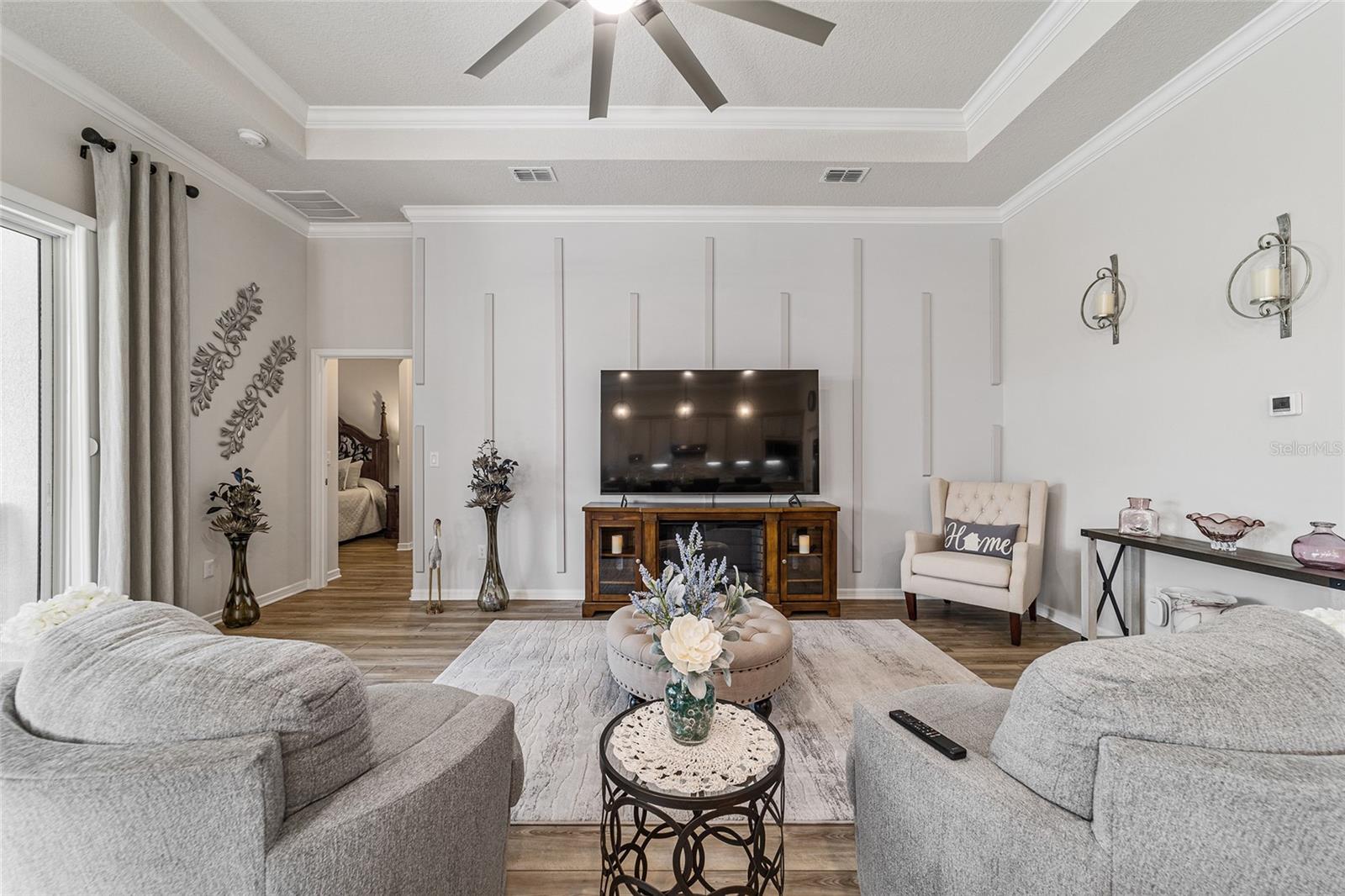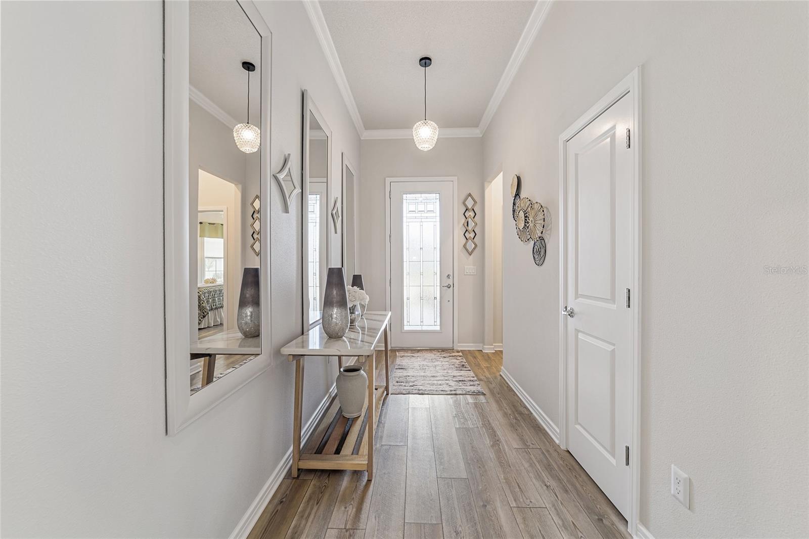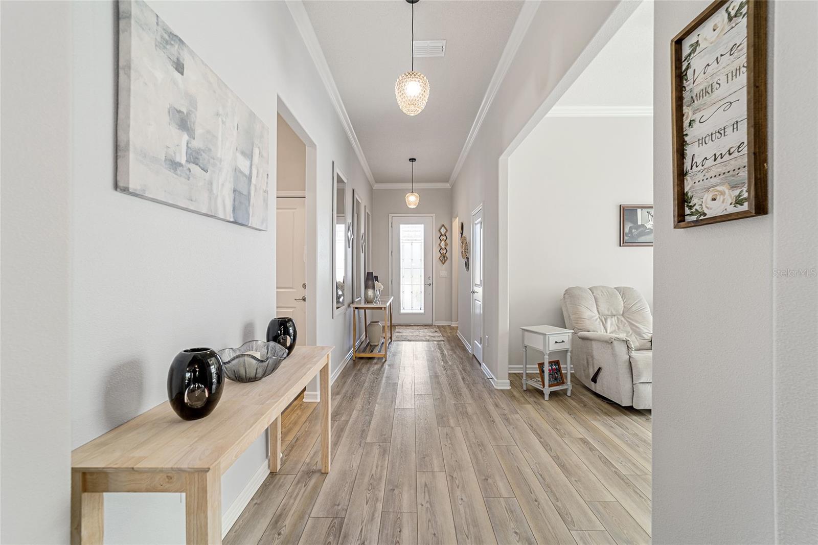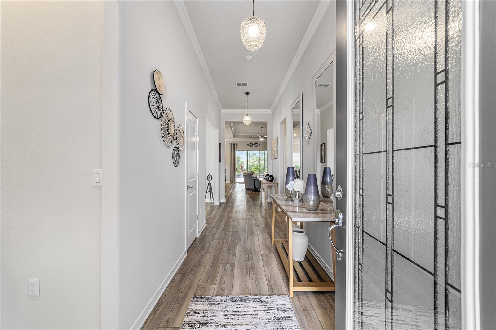 Não perca esta casa Prestige Model de design deslumbrante e cheia de acabamentos de alta qualidade que diferenciam esta casa das outras! Esta casa quase nova de 2 quartos/2 banheiros com uma sala bônus, garagem estendida de 4' e varanda expandida oferece toneladas de apelo e vida em estilo resort no seu melhor no condomínio fechado de golfe Stone Creek com mais de 55 anos, repleto de comodidades fantásticas. Esta casa meticulosamente projetada possui tetos altos, piso de tábuas escalonadas com aparência de madeira e belas sancas em um espaço contemporâneo em plano aberto, tornando a vida e o entretenimento muito fáceis. Os espaços claros e luminosos proporcionam uma sensação de conceito aberto com uma espaçosa sala de reuniões que oferece um belo teto de bandeja e enormes portas de vidro deslizantes que proporcionam acesso conveniente à grande varanda coberta e ao pátio estendido com tela de bolha, proporcionando um espaço tranquilo para apreciar o ar livre. Delicie-se com o conceito aberto Chef's Kitchen com luxuosos armários estilo Shaker com iluminação sob o armário, bancadas de quartzo, backsplash de azulejos de vidro, eletrodomésticos de aço inoxidável Kitchen Aid, assentos na altura do bar com iluminação pendente elegante e uma despensa para todo o seu armazenamento extra precisa. A suíte do proprietário possui luz natural abundante, um espaçoso closet com porta de lavanderia que conecta à lavanderia, banheiro privativo com pia dupla de altura confortável e chuveiro romano revestido de azulejos com janela de popa e borda de assento. Esta casa também possui um quarto secundário que oferece banheiro privativo completo e closet, lavabo separado para hóspedes e um gerador doméstico completo para uma tranquilidade inestimável. Faça sua mudança hoje mesmo e aproveite esta comunidade vibrante e ativa com inúmeras atividades e comodidades, incluindo campo de golfe, piscinas estilo resort, quadras esportivas, spa, passeios e entretenimento e muito mais!