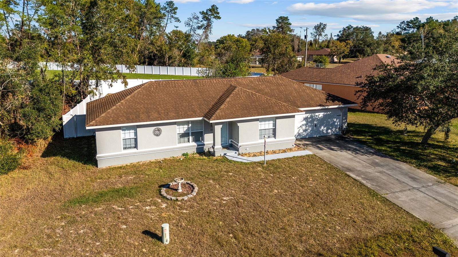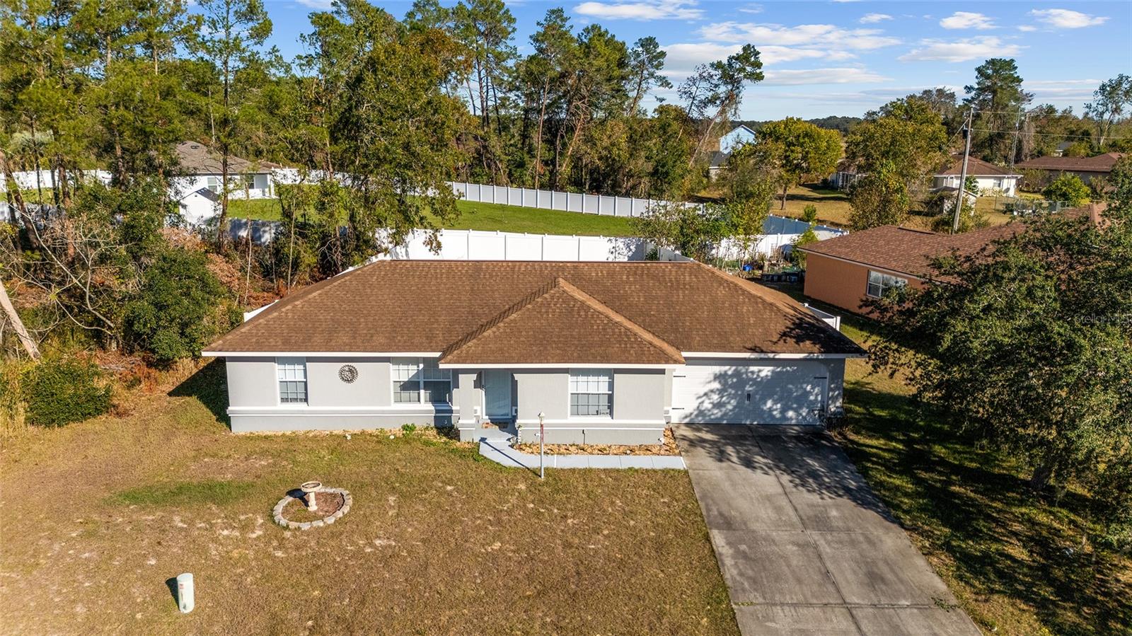 Descubra esta casa de 3 quartos e 2 banheiros lindamente conservada, construída em 2006 e localizada na próspera área de Marion Oaks. A residência possui luxuoso piso de vinil por toda parte, realçando a beleza e a durabilidade. Bancadas de granito, novos eletrodomésticos e uma unidade de ar condicionado recentemente atualizada contribuem para o conforto moderno desta casa. A espaçosa garagem para 2 carros possui piso pintado profissionalmente e opções de armazenamento adicionais, perfeitas para organizar seus itens essenciais. Saia para um quintal privado totalmente cercado, completo com uma grande laje de pátio, ideal para entretenimento ao ar livre ou relaxamento pessoal. Não perca esta joia - com certeza ela será retirada do mercado rapidamente!