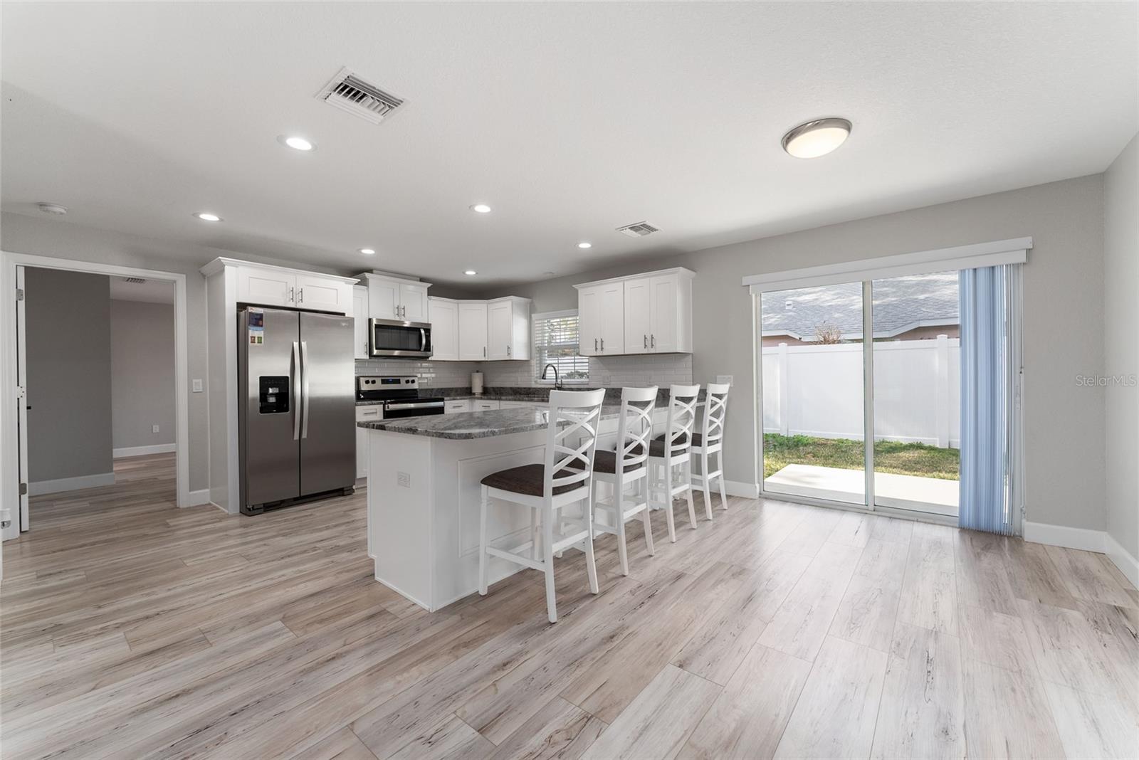 Descubra a mistura perfeita de luxo moderno e confortável vivendo neste lindamente projetado de 3 quartos | Casa de 2 banheiros situada em um espaçoso lote de canto na desejável comunidade de Oaks de outono. Ao entrar, você será recebido por uma planta baixa brilhante e arejada que promove um fluxo contínuo nos espaços de estar. O interior recém -pintado exala uma vibração contemporânea, destacada por equipamentos elegantes e pisos premium que criam uma atmosfera convidativa. O coração da casa - a cozinha - é uma delícia de chef! Este oásis culinário possui bancadas de granito elegantes, utensílios de aço inoxidável de última geração, um chique de backsplash de ladrilhos de metrô e uma conveniente descarte de lixo alojada dentro da elegante pia de drop-in. Você vai adorar a barra de café da manhã de 10 pés, perfeita para refeições casuais ou convidados divertidos. Retire para o quarto primário sereno, projetado para relaxamento e conforto. Este espaço tranquilo apresenta um luxuoso banheiro privativo completo com vaidades duplas, um espaçoso chuveiro e um closet considerável para todas as suas necessidades de armazenamento. No lado oposto da casa, você encontrará dois generosos quartos de hóspedes, cada um equipado com closets, proporcionando amplo espaço para a família ou os visitantes. Esses quartos compartilham um banheiro elegante de hóspedes com uma vaidade com tampo de granito de 5 pés e uma banheira/chuveiro combo conveniente. A praticidade encontra conforto com uma garagem de dois carros que oferece acesso direto à casa, além de uma porta de entrada lateral adicional que leva ao quintal lateral. Desfrute de paz de espírito nesta comunidade restrita de ações, completa com calçadas adoráveis para passear sem o fardo das taxas do HOA. Abrace o estilo de vida vibrante que Ocala, FL, tem que mostrar nesta residência lindamente decorada. Não perca a chance de chamar isso de casa imaculada de sua!