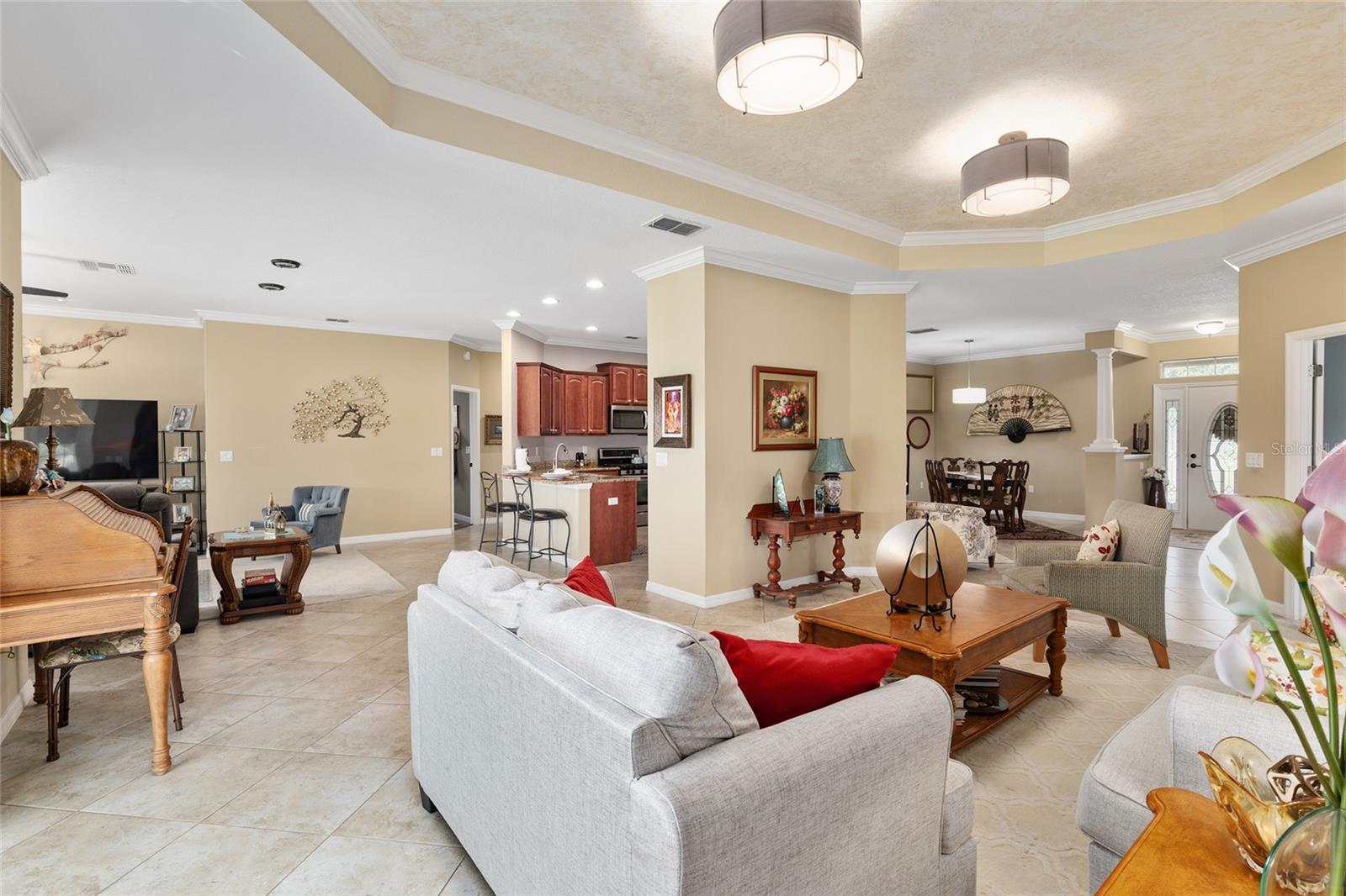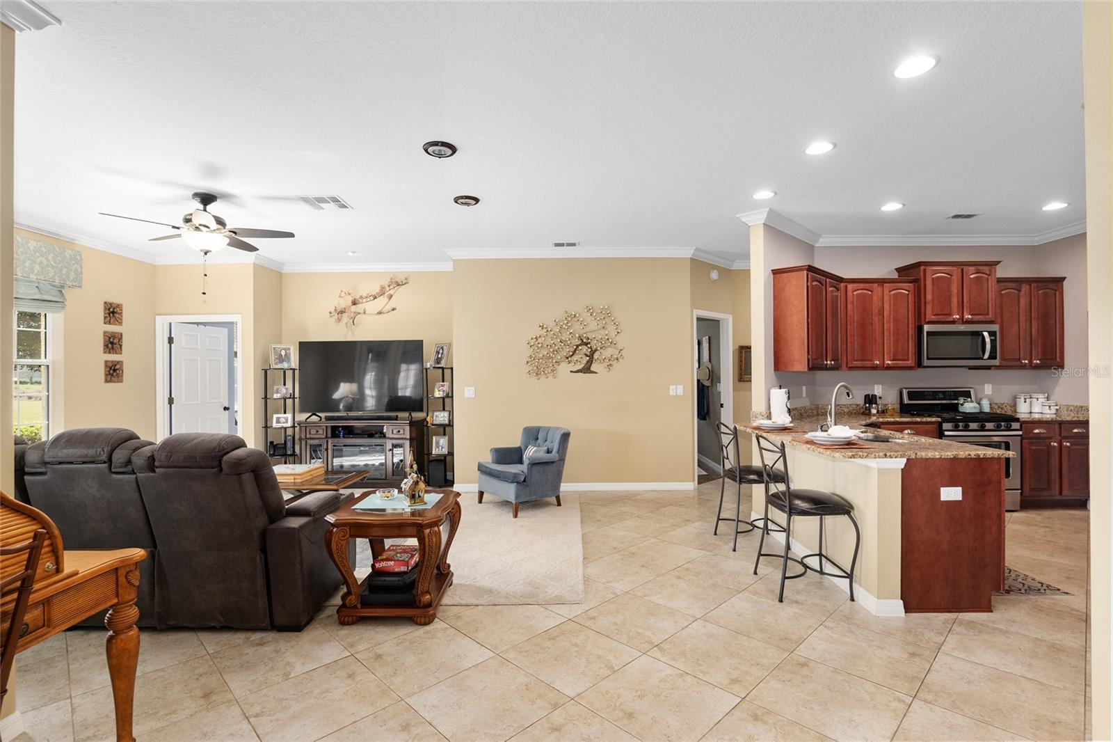 Bem-vindo à casa dos seus sonhos na comunidade "On Top of the World"! Localizado em uma das mais de 55 comunidades mais procuradas, "On Top of the World" oferece uma variedade de comodidades projetadas para enriquecer seu estilo de vida. Esta residência lindamente atualizada de 3 quartos e 2 banheiros oferece uma combinação perfeita de conforto, estilo e tranquilidade. Entre para descobrir um espaço de conceito aberto que é perfeito para relaxar e se divertir. Home oferece um espaçoso escritório/escritório para usar como espaço de escritório ideal, sala de arte ou qualquer que seja seu hobby. Desfrute de vistas deslumbrantes do campo de golfe em seu próprio quintal ou varanda que inclui sua própria banheira de hidromassagem, fazendo com que cada momento em casa pareça um retiro. A cozinha se conecta à sala familiar para maior comodidade. A garagem para dois carros possui uma área para carrinhos de golfe duplos. A casa está sendo vendida mobiliada COM banheira de hidromassagem aquecida E carrinho de golfe!! Tudo que você precisa fazer é se mudar!! Esta comunidade oferece uma grande quantidade de atividades para que cada dia seja uma experiência nova. Não perca a oportunidade de possuir este imóvel excepcional!