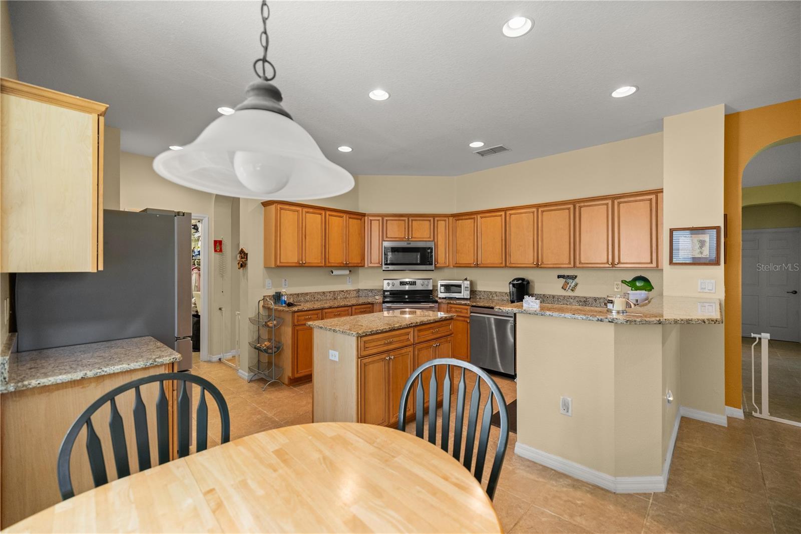 MUDANÇA DE PREÇO! Entre nesta espaçosa casa Heather Model de 2.032 pés quadrados e 3 quartos em Indigo East! TETOS ALTOS de 9 pés e 4 pol.! Uma sala de jantar/estar formal E um visual de planta aberta com sua cozinha atualizada com bar de café da manhã e ilha, supervisionando a sala de família e o recanto! Todos os armários atualizados, eletrodomésticos 2024, TELHADO 2021, HVAC 2023 e AQUECEDOR DE ÁGUA SEM TANQUE. Janelas de painel duplo, iluminação embutida, ventiladores de teto e SALA FLÓRIDA FECHADA com controles deslizantes triplos e duplos. Pátio traseiro pavimentado separado com quintal cercado. SEM TAPETE! Paisagismo maduro. Esta Cozinha não carece de balcão com bancada em Granito e Ilha. O quarto principal possui 2 closets com pias duplas no banheiro principal. A lavanderia inclui uma pia de lavanderia/utilitário! Esta comunidade aceita carrinhos de golfe e possui trilhas para caminhada, parque para cães, academia de ginástica, centro comunitário, 2 piscinas, banheira de hidromassagem, cabanas, estações de ginástica externas e atividades para residentes. O Indigo East oferece piscina aquecida, spa, salão de festas, lounge, pavilhão, estúdios de fitness e parque de fitness externo coberto. Trilhas para caminhada, muitos clubes e atividades sociais. Você estará perto de lojas, restaurantes, serviços médicos e da OTOW Circle Square com entretenimento divertido. Com um passe Gate Way, os residentes de Indigo também podem usar todas as comodidades do On Top of the World - E há 4 parques para cães no OTOW. Cada parque é uma área cercada com áreas de recreação separadas para cães pequenos e grandes. Água está disponível para os cães e bancos sombreados para os proprietários; aberto diariamente; os residentes agora se referem às reuniões no final da tarde como Doggie Happy Hour.
