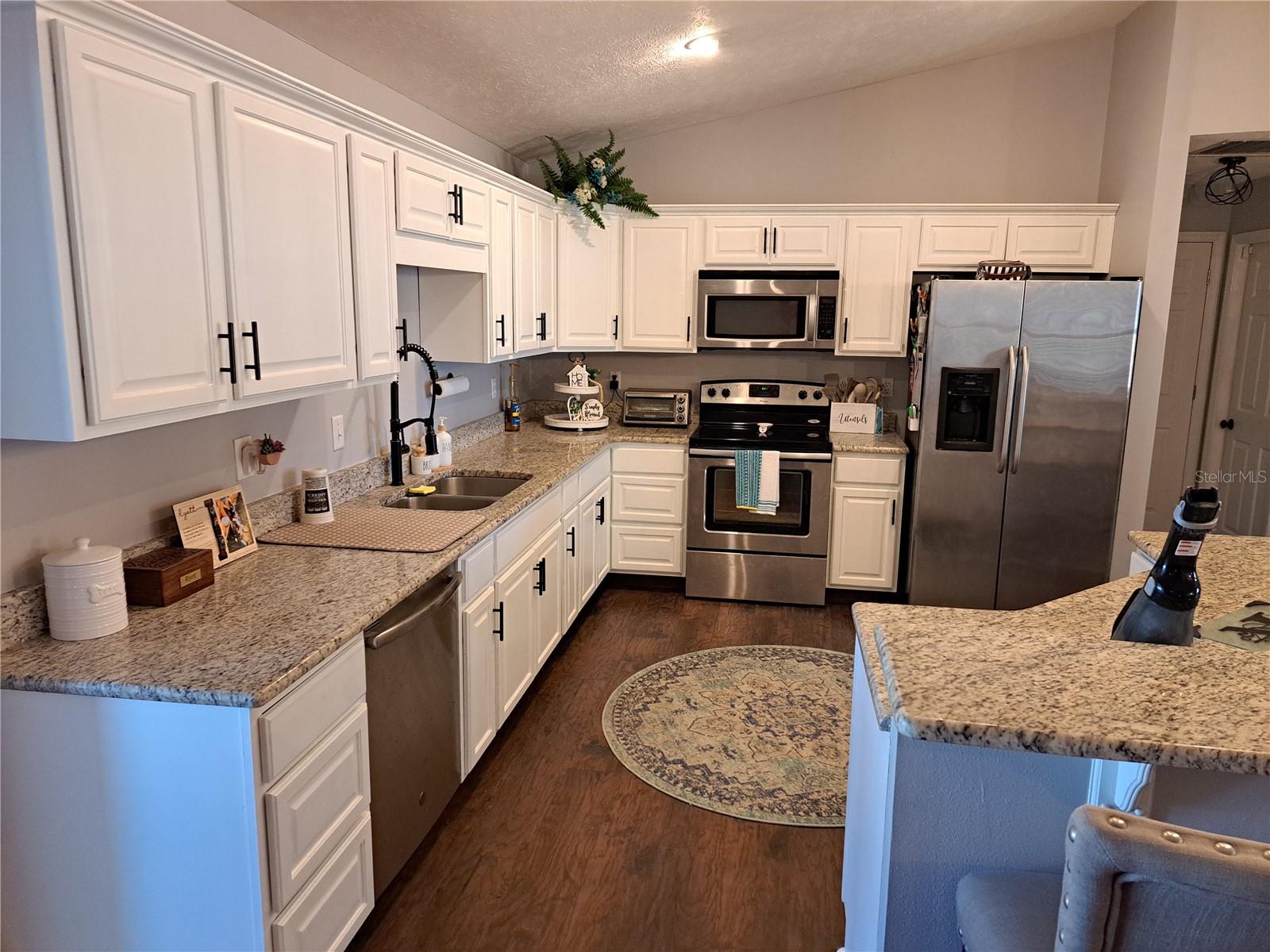DE VOLTA AO MERCADO, o financiamento dos compradores fracassou, a perda deles é o seu ganho. Esta deslumbrante casa de 4 quartos construída sob medida fica em mais de 1/3 de acre, perto da frente do loteamento e no final de um beco sem saída tranquilo. As características incluem um jardim paisagístico, uma varanda frontal com corrimão, uma grande entrada, tetos de catedral, prateleiras de plantas, muitos ventiladores e acessórios mais novos, piso de pranchas de vinil de luxo em toda a área de estar principal acentuado com carpetes de parede a parede nos quartos, uma planta de quarto dividida aberta, uma sala de estar separada e sala de família, uma luz muito aberta e cozinha gourmet brilhante com muitos armários bonitos, bancadas de granito, eletrodomésticos de aço inoxidável, uma despensa, um bar exclusivo de 2 degraus com iluminação de destaque e perto de a cozinha é uma grande área de jantar. Esses dois espaços combinados proporcionam um ótimo entretenimento. A suíte master tem closet, área de maquiagem, pias duplas de vidro e box amplo com azulejos de cerâmica. Há também uma porta estilo celeiro que fecha a sala de família do resto da casa, uma lavanderia interna onde a lavadora e secadora de carregamento frontal ficam com a casa, e uma lareira a lenha na sala de estar. Na parte traseira da casa há um enorme quintal cercado de vinil e privacidade e um pátio. Existem painéis solares instalados no telhado, o que dá ao proprietário da casa uma conta de luz mensal aproximada de US$ 40. Este é um que você só precisa ver por si mesmo, marque uma consulta hoje mesmo.
