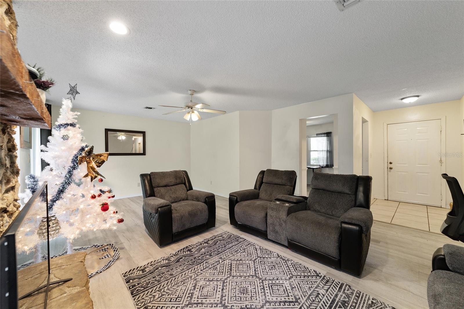 Esta adorável casa de três quartos, dois banheiros e garagem para um carro oferece a combinação perfeita de charme, atualizações e funcionalidade. Com 1.195 pés quadrados de área útil, possui inúmeras atualizações modernas, incluindo um telhado mais novo, HVAC e porta de garagem (2018), janelas atualizadas (2022), luxuoso piso de pranchas de vinil e carpete (2023) e pintura interna fresca (2023). Entre em uma cozinha bem iluminada que oferece muito espaço no balcão, um armário de despensa duplo e uma aconchegante sala de jantar. A espaçosa sala de estar é adornada com novo piso LVP, lareira a lenha na fachada de pedra e portas de correr que levam a um enorme pátio traseiro de 12x36 e quintal cercado, perfeito para entretenimento ou relaxamento. A suíte principal possui closet duplo e banheiro privativo com chuveiro de azulejos. Dois quartos adicionais incluem armários deslizantes e fácil acesso ao banheiro de hóspedes com combinação de banheira/chuveiro e penteadeira atualizada. A garagem individual 27x14 oferece ampla arrumação com sótão desmontável, zona de lavandaria e porta de acesso lateral ao pátio. O quintal cercado inclui uma mistura de privacidade e cerca de arame, um galpão de armazenamento e um paisagismo exuberante com plantas tropicais e murtas crepe. Construída com exterior em pedra e bloco, esta casa também possui calhas e calhas. Convenientemente localizada perto da SR 40, mercearias, restaurantes e do trevo 326/I-75, esta casa oferece ocupação imediata e é imperdível! Não perca esta oportunidade incrível – agende sua exibição hoje mesmo!
