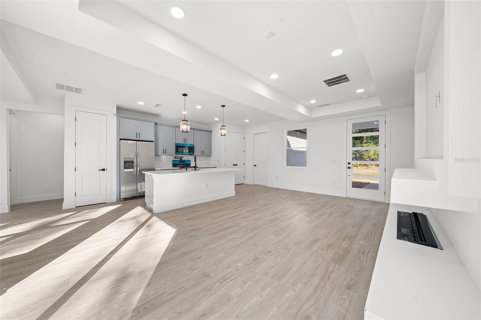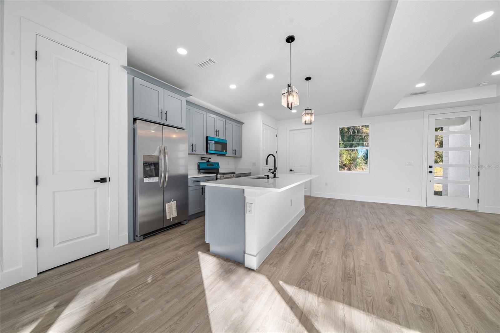 Casa requintada personalizada. Toda atenção aos detalhes foi pensada, o que fica evidente desde o momento em que você chega à propriedade. Desde as linhas arquitetônicas modernas e convidativas e a iluminação externa atualizada até o interior com design excepcional, esta casa tem de tudo. Piso vinílico de tábuas luxuosas, tetos bandeja e embutidos. Sala de jantar formal. Cozinha dos sonhos com eletrodomésticos de inox, ilha grande para preparação ou uma refeição rápida, muito balcão e armários. Depois de um longo dia, aproveite o máximo em luxo em sua suíte principal com closets que se abrem com ricas portas de celeiro, pias duplas com torneiras em cascata e um grande degrau no chuveiro de azulejos com acessórios de chuva. Pátio aberto cercado por uma paisagem exuberante. Perto das principais estradas, com lojas e entretenimento a poucos minutos em todas as direções.
