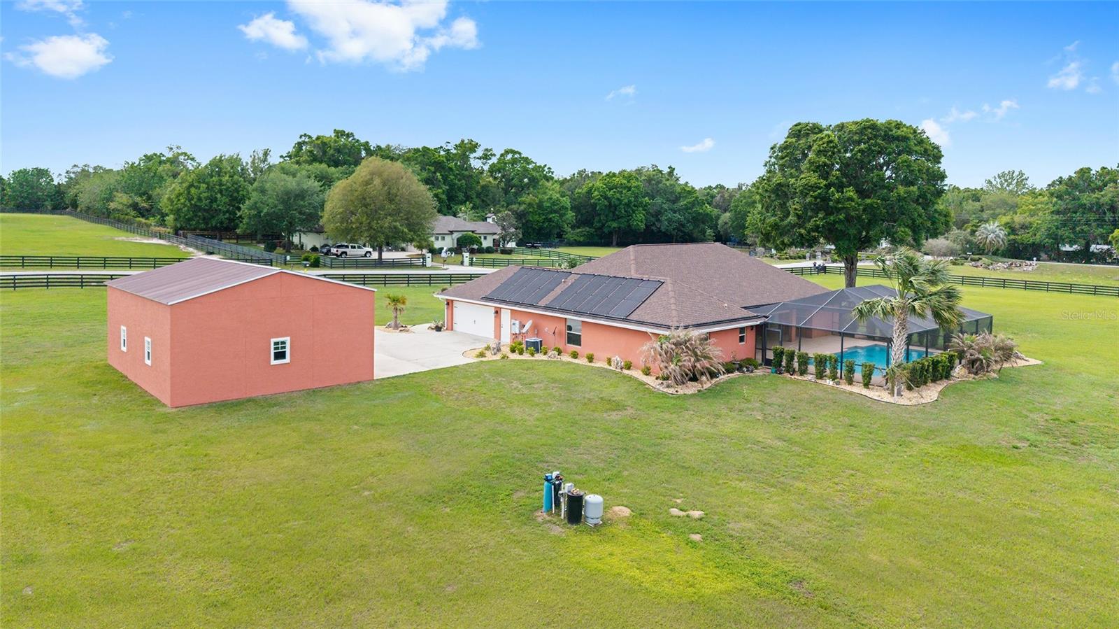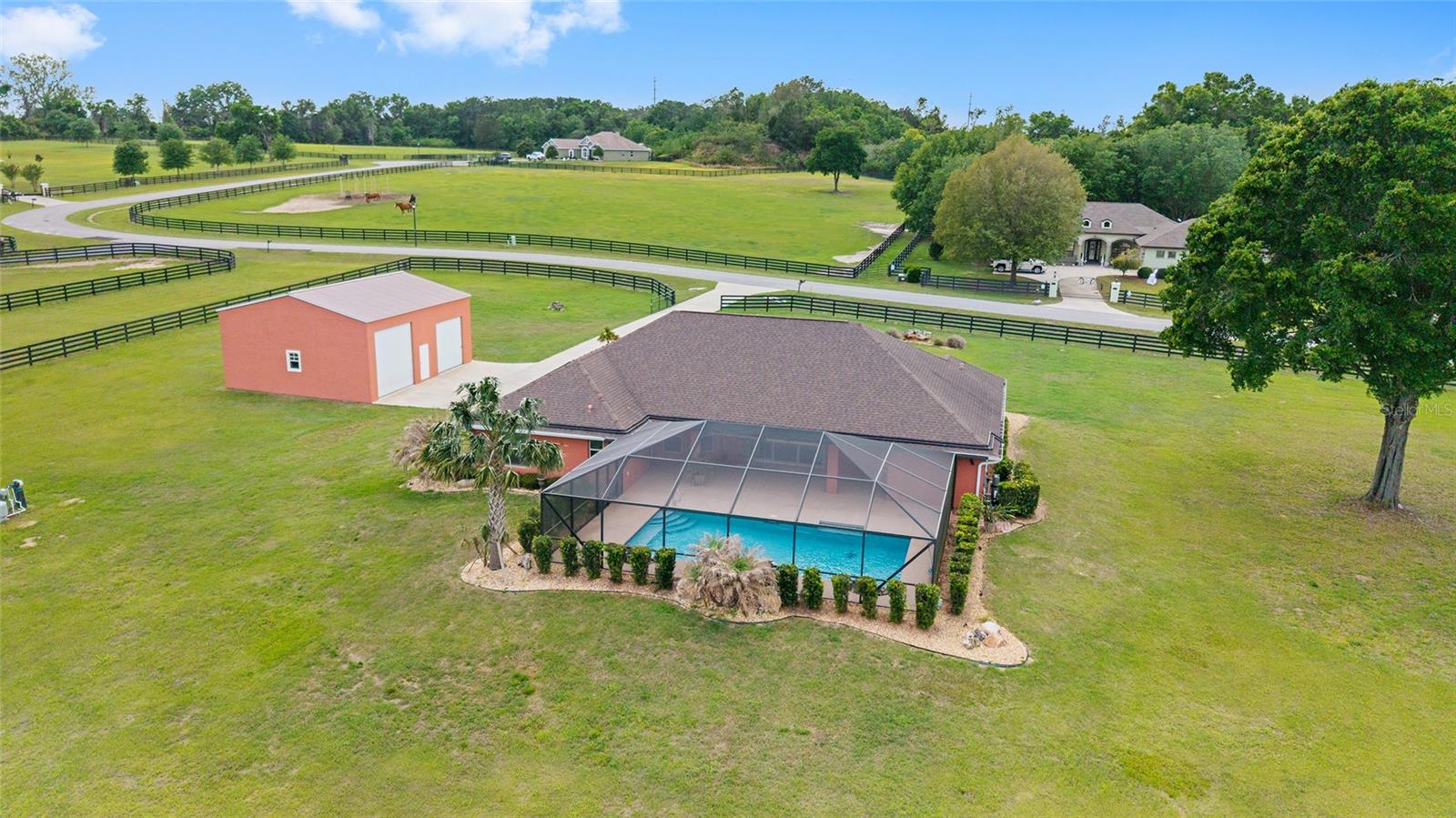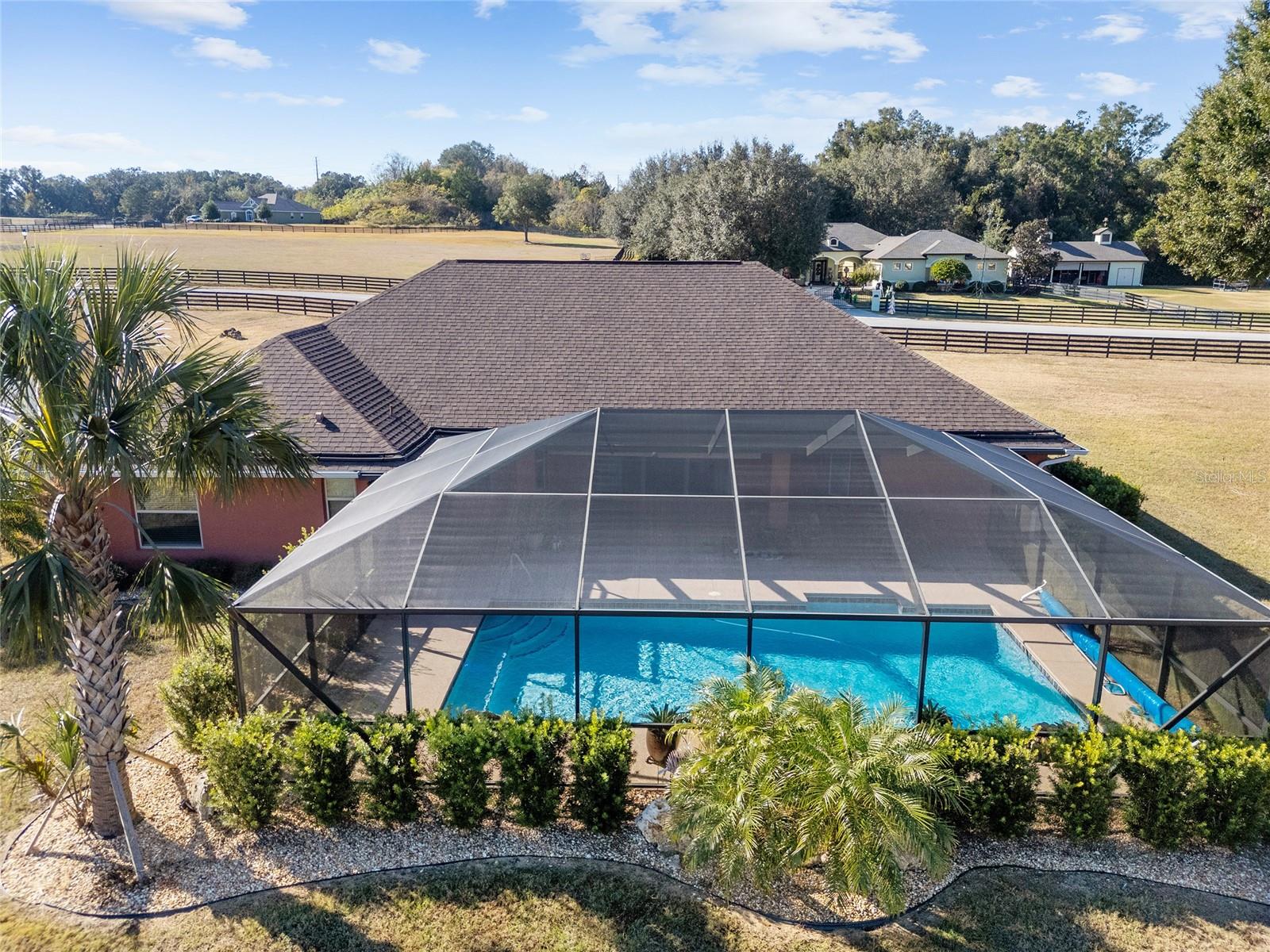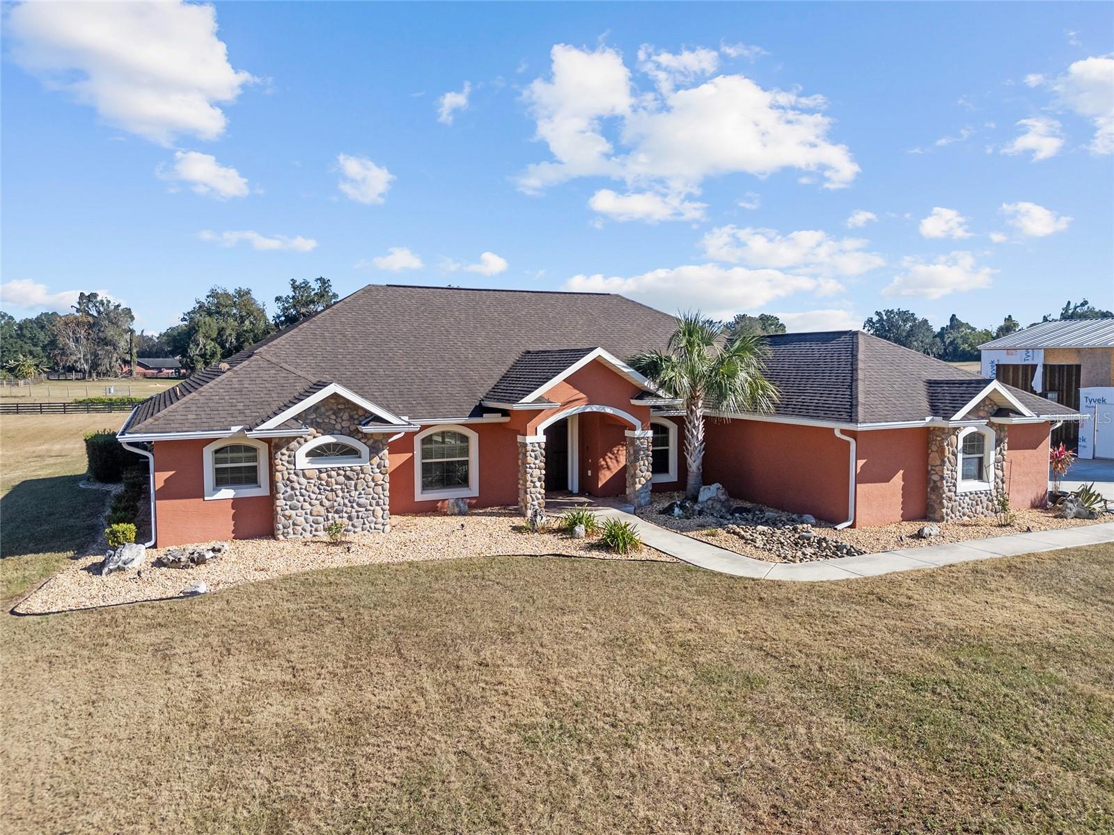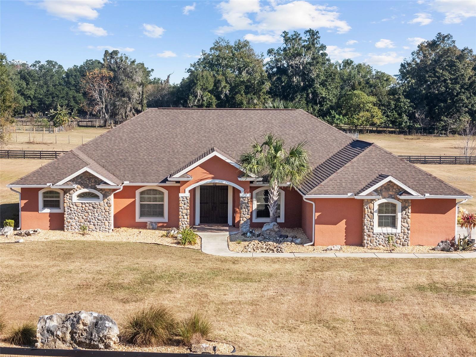 Seu oásis espera por você! Situada em 5,42 acres no tranquilo Hamlet de Manor Hill Estates, esta casa construída em 2019 oferece 2.517 pés quadrados de espaço aquecido e resfriado a apenas 15 minutos do centro de Ocala. A planta dividida cuidadosamente projetada apresenta uma área de estar em conceito aberto, uma cozinha espaçosa com uma grande despensa e uma lavanderia conveniente. A suíte principal de grandes dimensões possui um luxuoso banheiro privativo, closets para ele e para ela e acesso direto à piscina de água salgada fechada. Dois quartos adicionais compartilham um banheiro com acesso à piscina, tornando esta casa perfeita para famílias ou convidados. Com piscina com aquecimento solar, pátio coberto e garagem quase concluída com portas amplas, esta propriedade pronta para morar combina conforto, comodidade e estilo em um cenário natural deslumbrante. A garagem separada com portas altas de enrolar é uma oficina perfeita ou uma garagem extra.