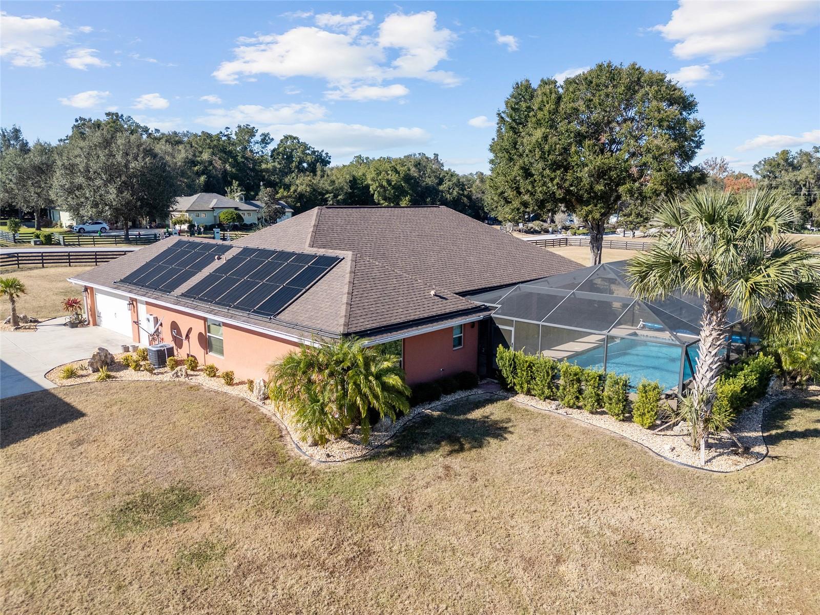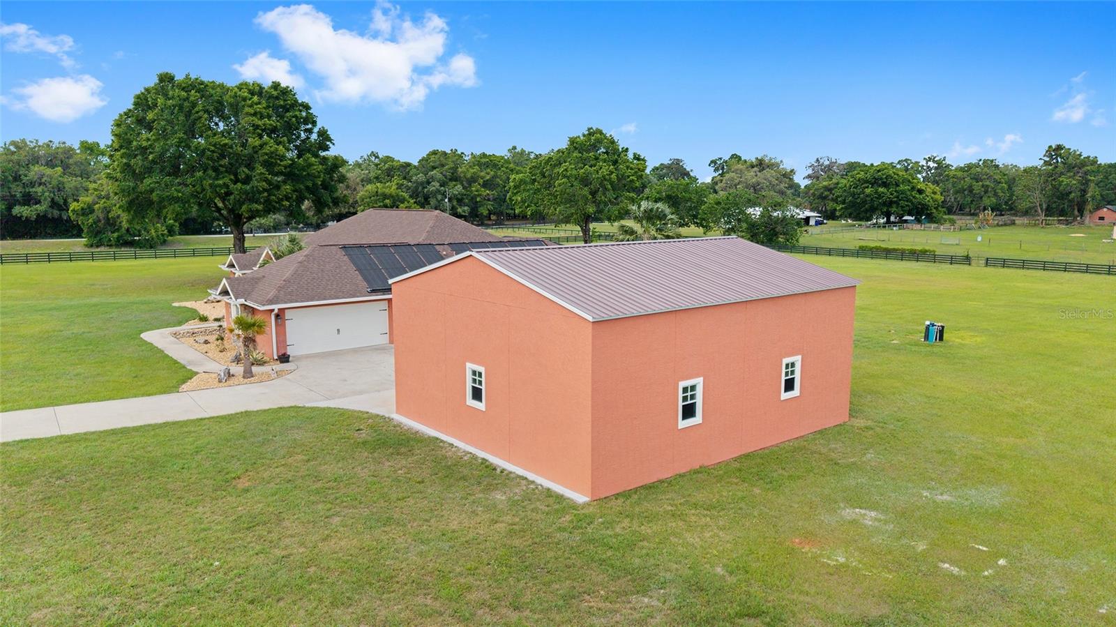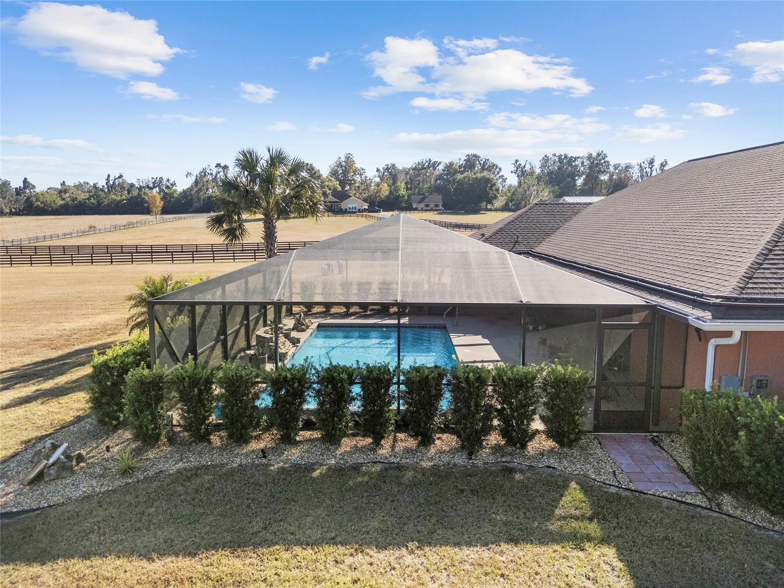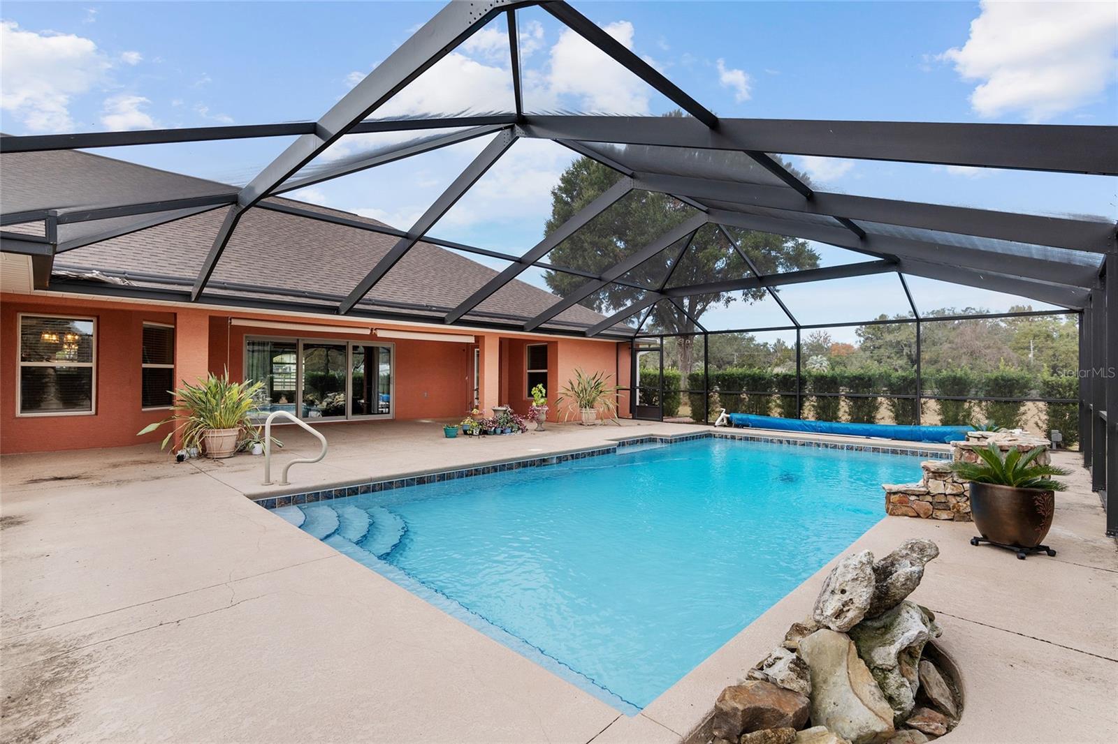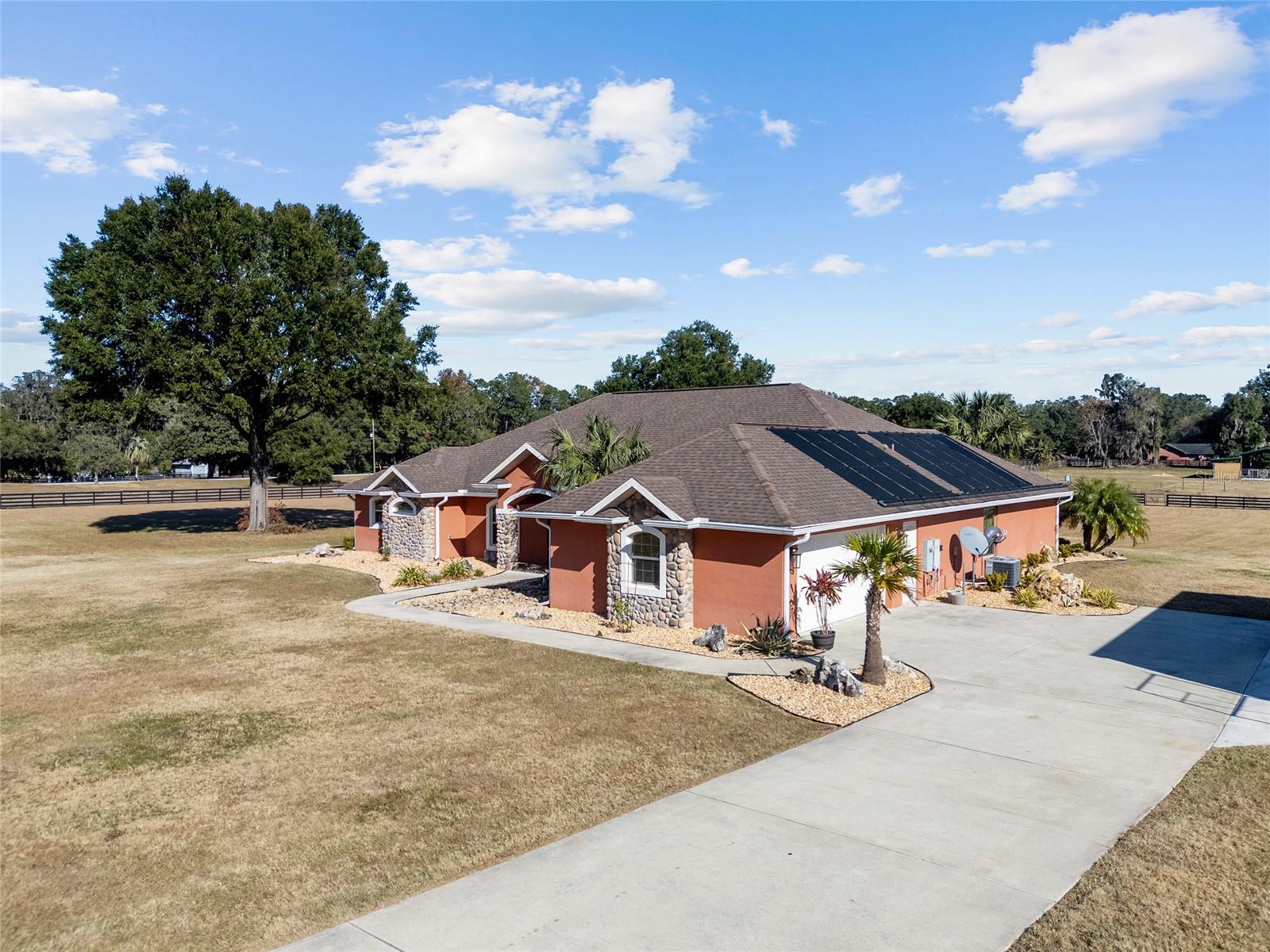 Seu oásis espera por você! Situada em 5,42 acres no tranquilo Hamlet de Manor Hill Estates, esta casa construída em 2019 oferece 2.517 pés quadrados de espaço aquecido e resfriado a apenas 15 minutos do centro de Ocala. A planta dividida cuidadosamente projetada apresenta uma área de estar em conceito aberto, uma cozinha espaçosa com uma grande despensa e uma lavanderia conveniente. A suíte principal de grandes dimensões possui um luxuoso banheiro privativo, closets para ele e para ela e acesso direto à piscina de água salgada fechada. Dois quartos adicionais compartilham um banheiro com acesso à piscina, tornando esta casa perfeita para famílias ou convidados. Com piscina com aquecimento solar, pátio coberto e garagem quase concluída com portas amplas, esta propriedade pronta para morar combina conforto, comodidade e estilo em um cenário natural deslumbrante. A garagem separada com portas altas de enrolar é uma oficina perfeita ou uma garagem extra.