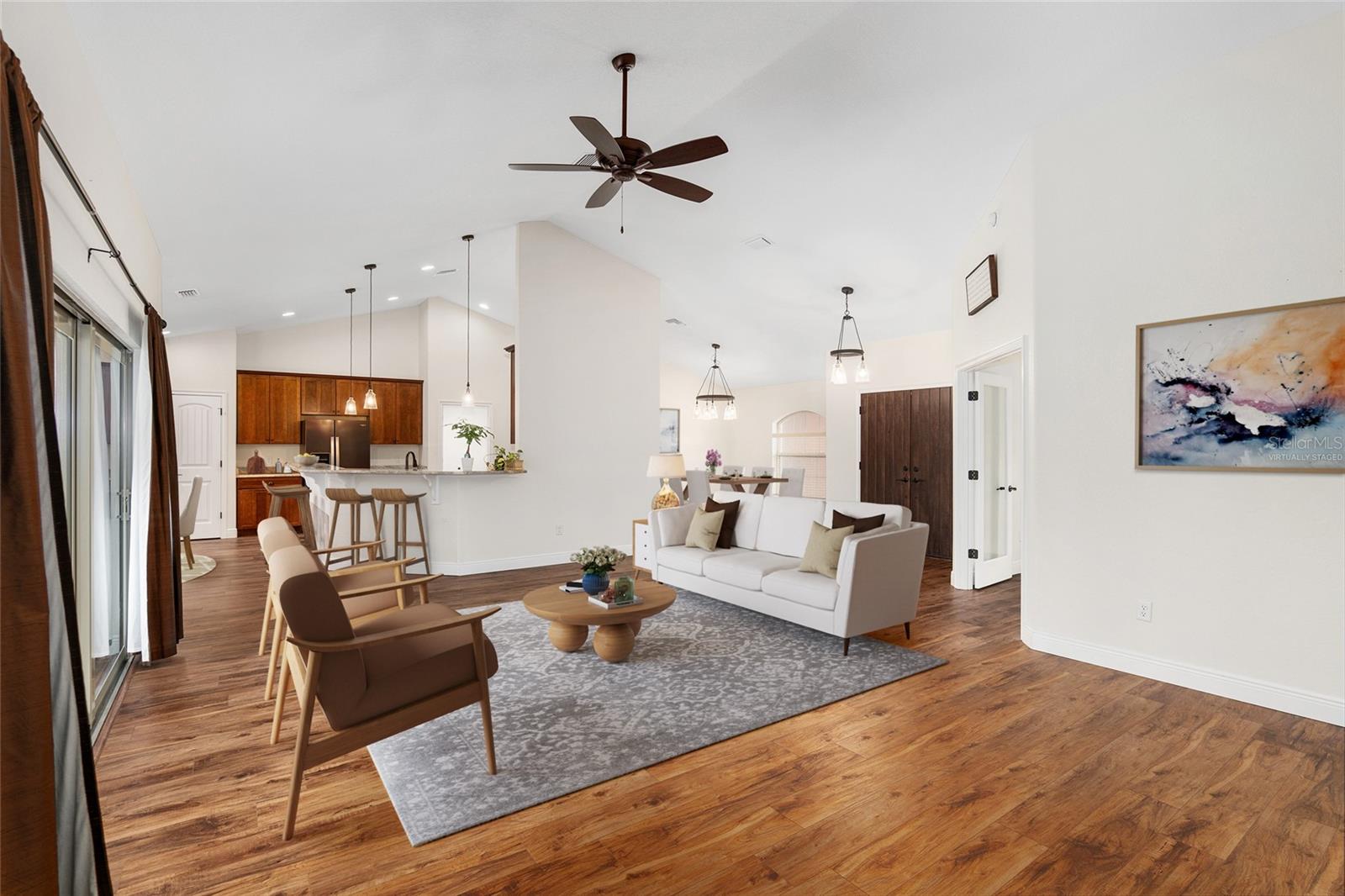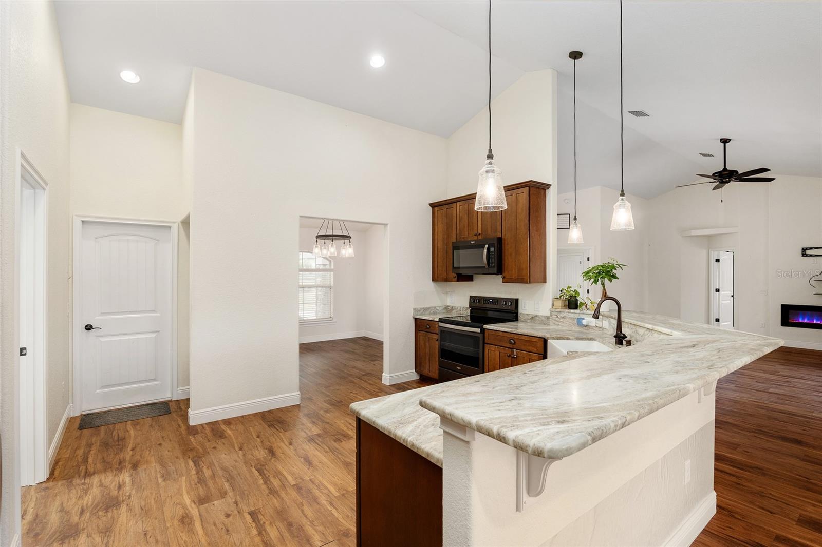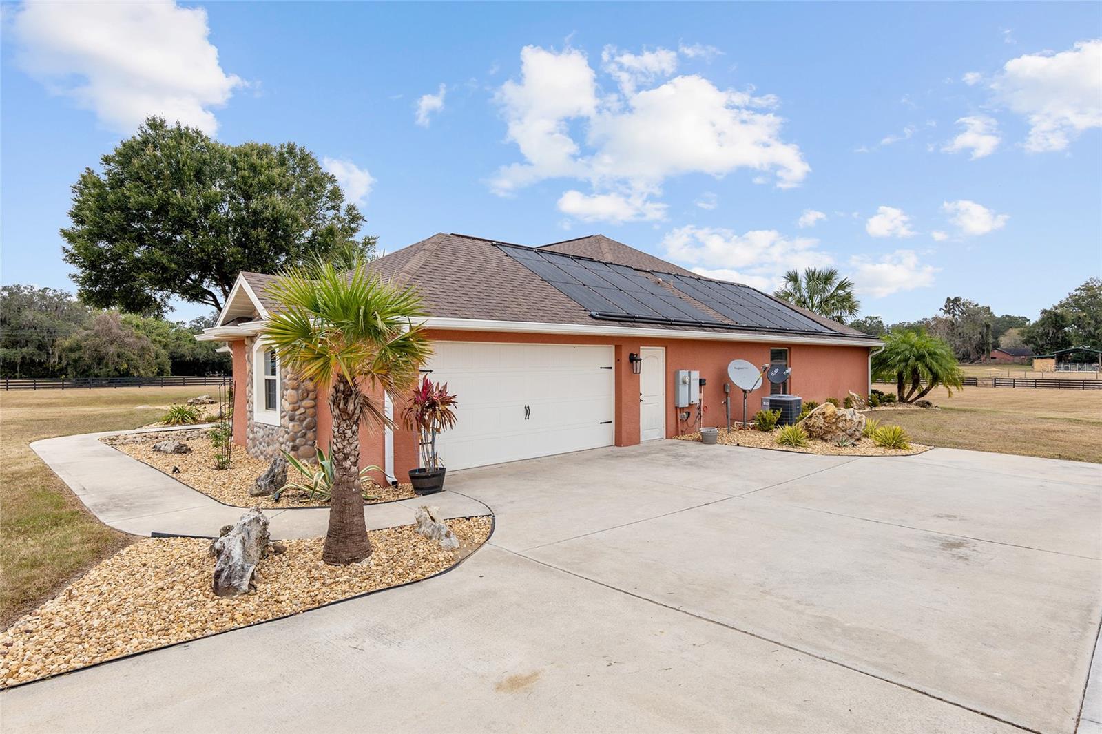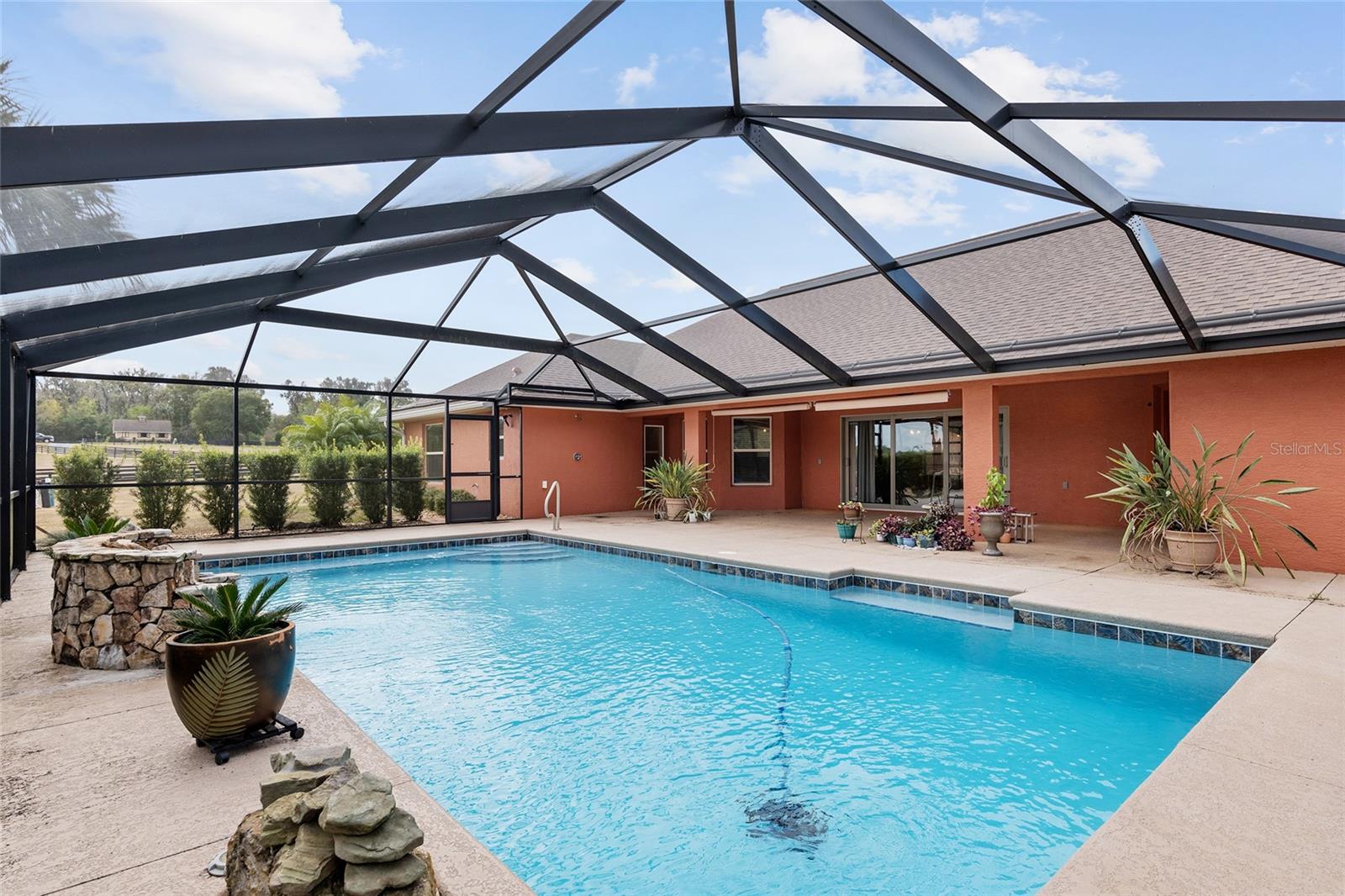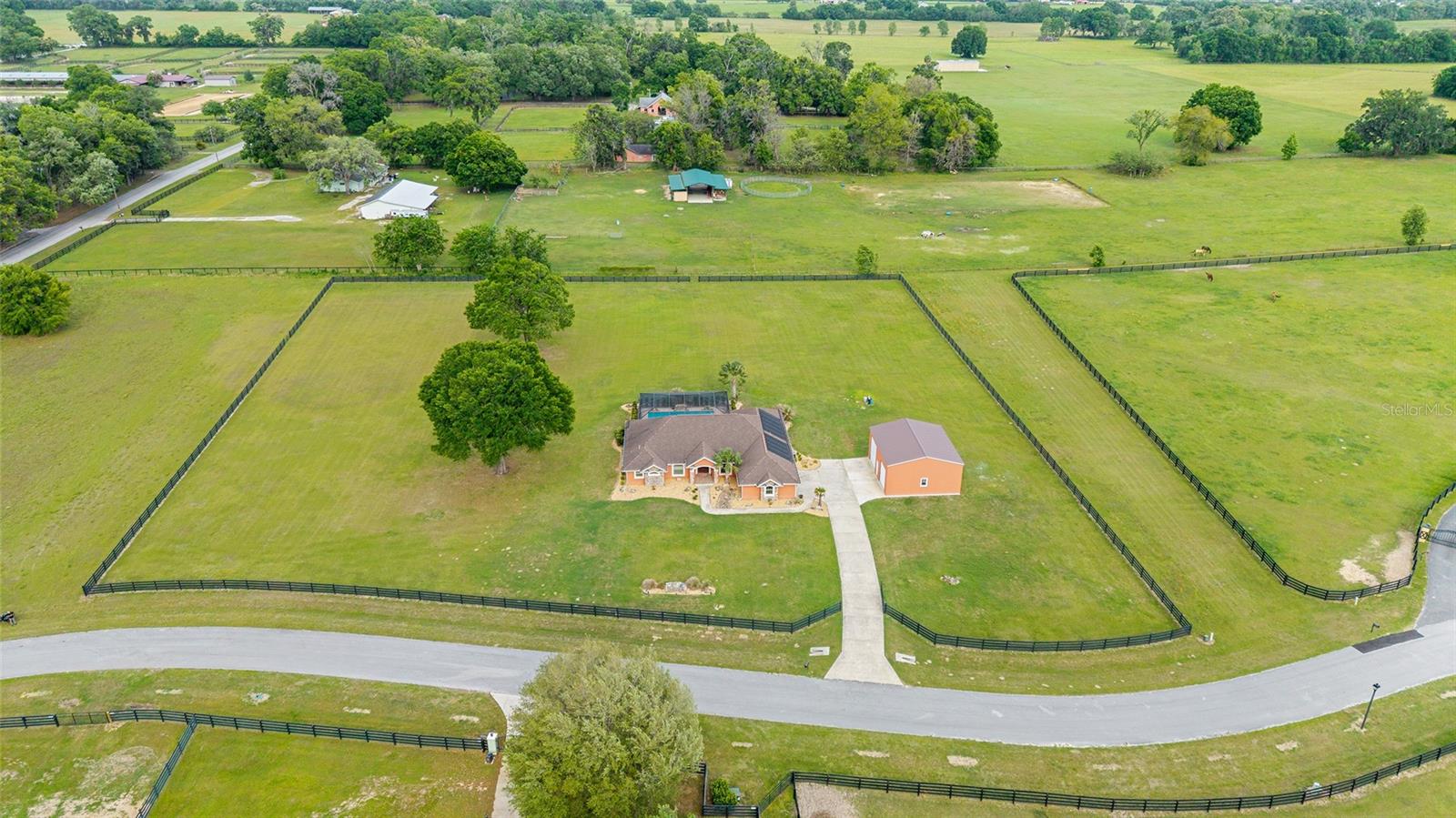 Seu oásis espera por você! Situada em 5,42 acres no tranquilo Hamlet de Manor Hill Estates, esta casa construída em 2019 oferece 2.517 pés quadrados de espaço aquecido e resfriado a apenas 15 minutos do centro de Ocala. A planta dividida cuidadosamente projetada apresenta uma área de estar em conceito aberto, uma cozinha espaçosa com uma grande despensa e uma lavanderia conveniente. A suíte principal de grandes dimensões possui um luxuoso banheiro privativo, closets para ele e para ela e acesso direto à piscina de água salgada fechada. Dois quartos adicionais compartilham um banheiro com acesso à piscina, tornando esta casa perfeita para famílias ou convidados. Com piscina com aquecimento solar, pátio coberto e garagem quase concluída com portas amplas, esta propriedade pronta para morar combina conforto, comodidade e estilo em um cenário natural deslumbrante. A garagem separada com portas altas de enrolar é uma oficina perfeita ou uma garagem extra.