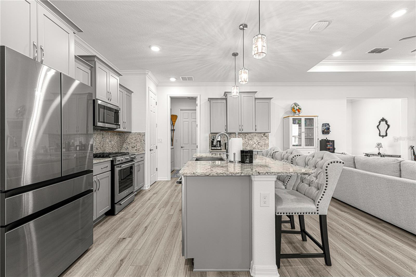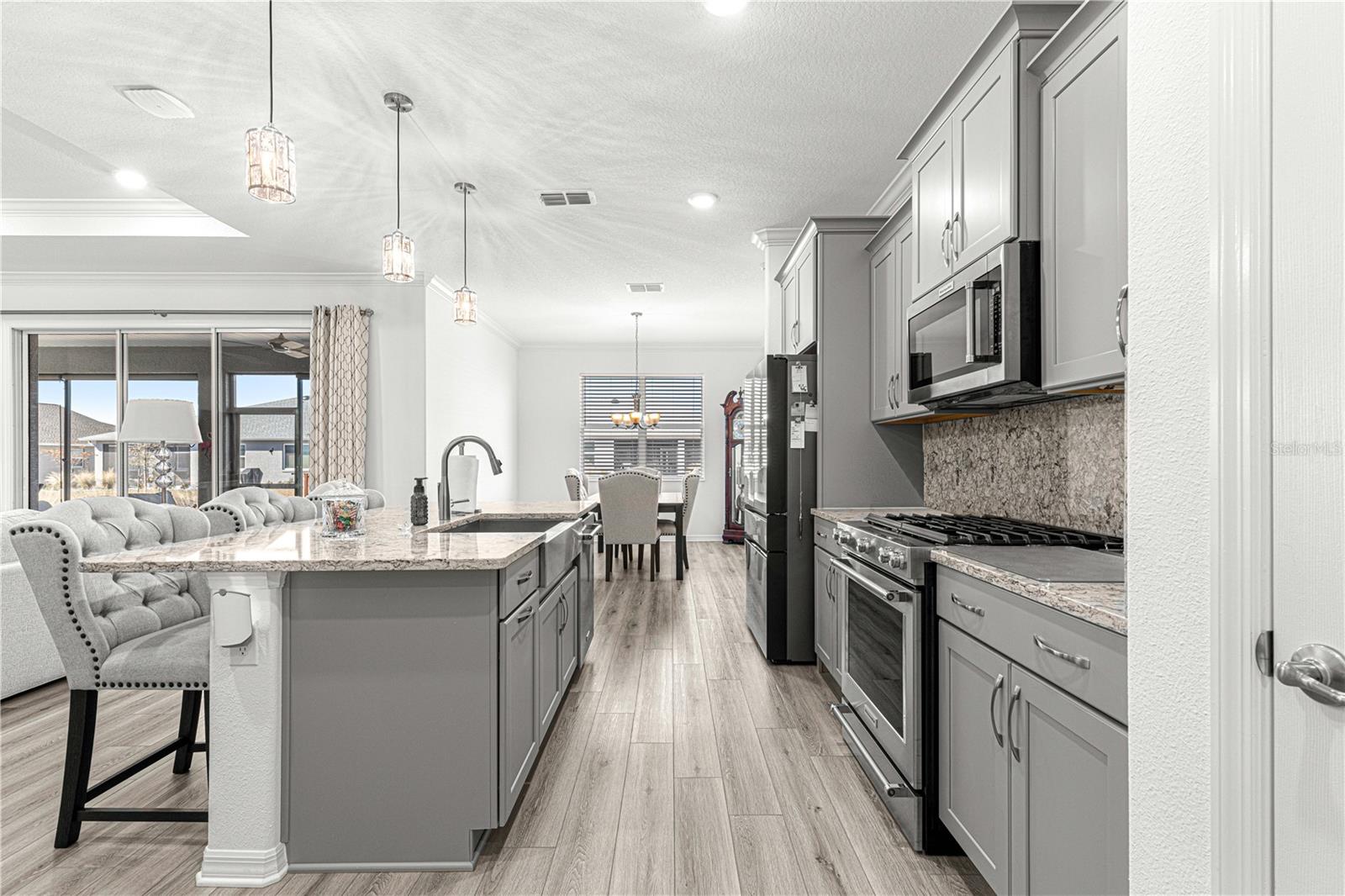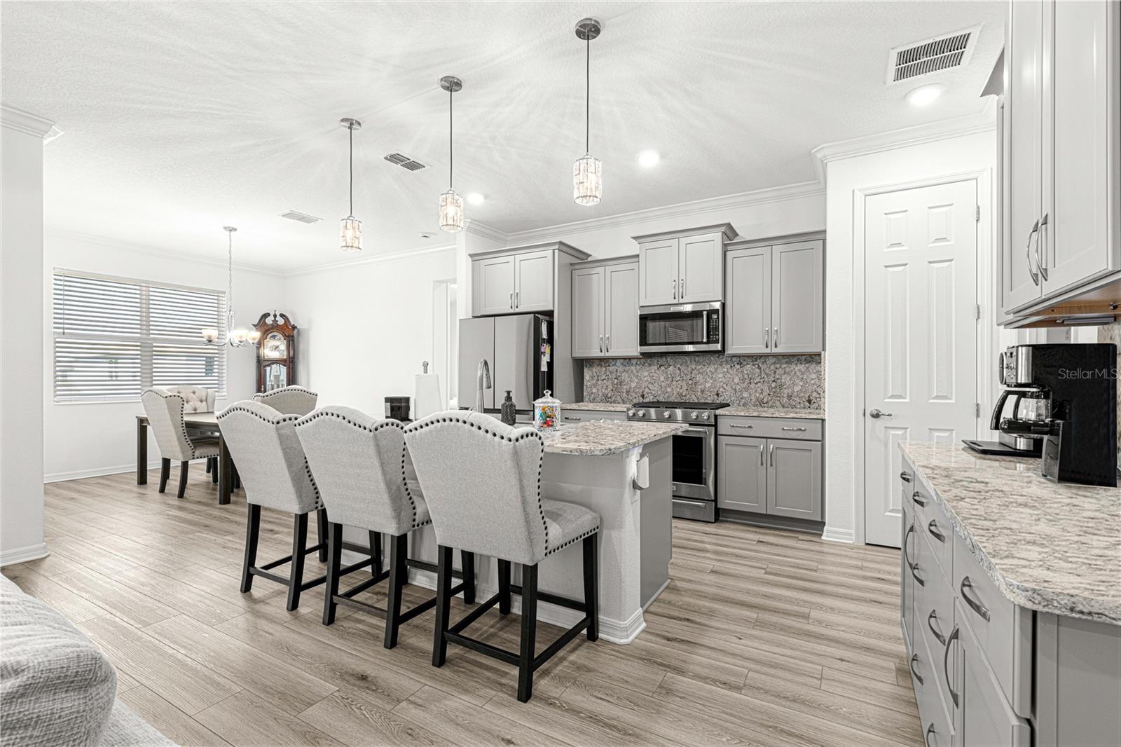 Você pode ignorar a zona de construção e fazer esse movimento em casa de Modelo Young Livingston de 1 ano! Localizado em Longleaf Ridge 5, na comunidade de mais de 55 anos, no topo do mundo, onde a aposentadoria é de vida livre e viver sua melhor vida. Golfe, piscinas, caminhadas/caminhadas, clubes, entretenimento e muito mais atividades. O vendedor não poupou o meio -fio atualizado para esta casa. Menas da pavimentadora estendida, paisagismo de coalhamento e pedra. Recebendo o caminho de entrada. Entrando na casa da grande sala, cozinha e lanchonete tem o piso plano aberto. Quarto principal com closet e banheiro privativo com chuveiro de azulejo, pia de dupla vaidade e armazenamento de linho. O quarto de hóspedes e o banheiro à direita da casa têm a planta dividida de privacidade. Este banheiro de 2/2 e a sala flexível e fechada tem US $ 30.000 em atualizações que o vendedor acrescentou. Moldagem da coroa/armários cinzentos de pomba com características de close macio/balcões de quartzo/sala flexível portas francesas/piso de vinil de luxo/filtração de água/painéis de entrada/entrada solares prolongados/assentos de ilhas de cozinha/Luzes de pendências/Luzes de back splash/2 mais garagem de carro e estacionamento de carrinho de golfe com piso de epóxi. Esta casa é de vida livre de manutenção. Ligue para sua visualização hoje! O vendedor tem um novo carrinho de golfe disponível para compra!