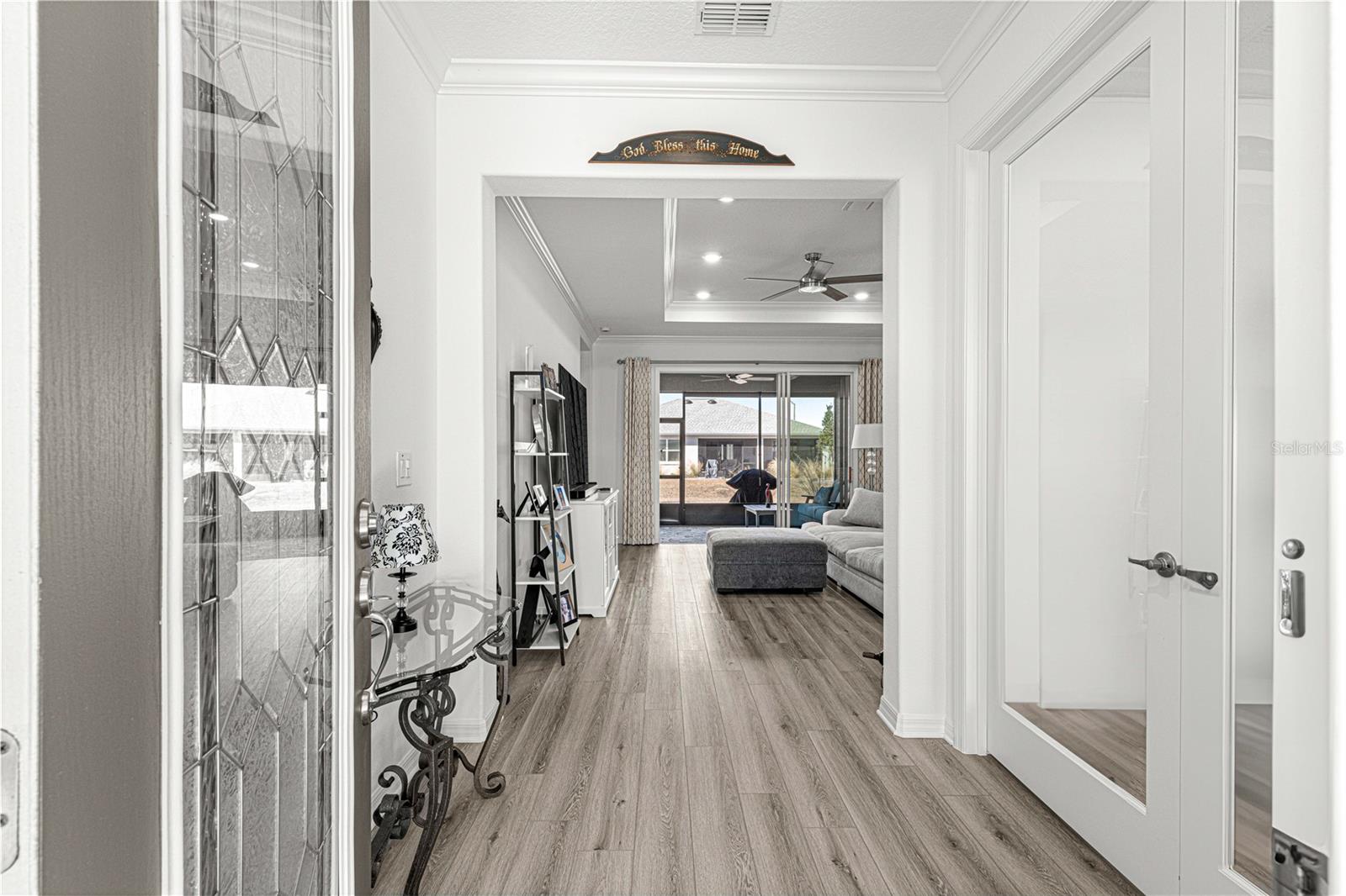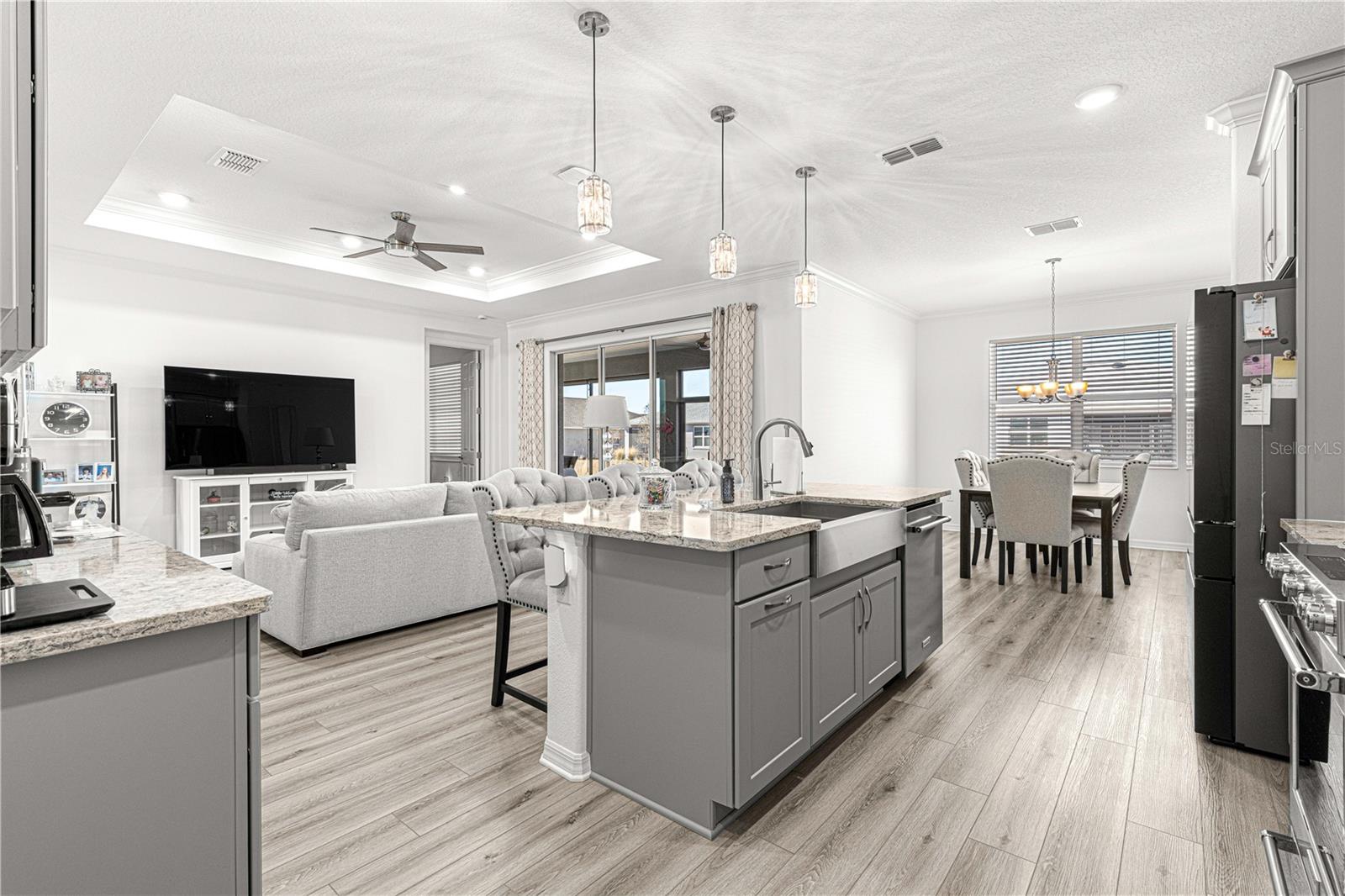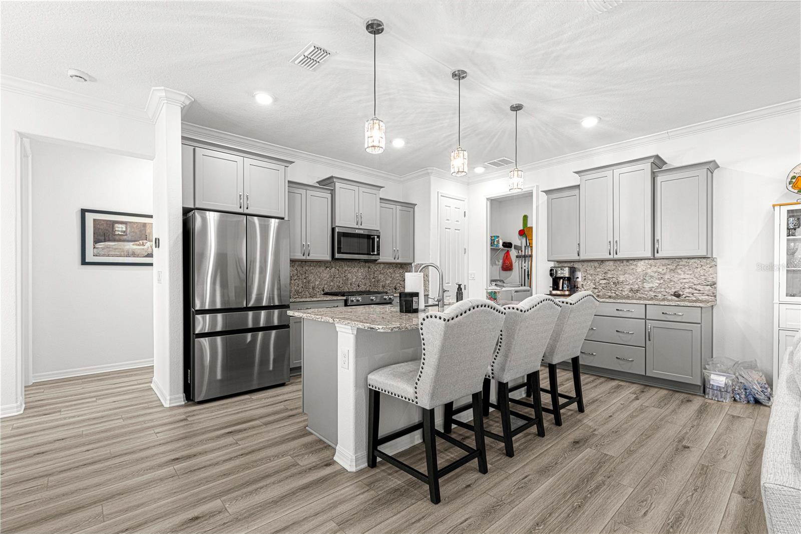 Você pode ignorar a zona de construção e fazer esse movimento em casa de Modelo Young Livingston de 1 ano! Localizado em Longleaf Ridge 5, na comunidade de mais de 55 anos, no topo do mundo, onde a aposentadoria é de vida livre e viver sua melhor vida. Golfe, piscinas, caminhadas/caminhadas, clubes, entretenimento e muito mais atividades. O vendedor não poupou o meio -fio atualizado para esta casa. Menas da pavimentadora estendida, paisagismo de coalhamento e pedra. Recebendo o caminho de entrada. Entrando na casa da grande sala, cozinha e lanchonete tem o piso plano aberto. Quarto principal com closet e banheiro privativo com chuveiro de azulejo, pia de dupla vaidade e armazenamento de linho. O quarto de hóspedes e o banheiro à direita da casa têm a planta dividida de privacidade. Este banheiro de 2/2 e a sala flexível e fechada tem US $ 30.000 em atualizações que o vendedor acrescentou. Moldagem da coroa/armários cinzentos de pomba com características de close macio/balcões de quartzo/sala flexível portas francesas/piso de vinil de luxo/filtração de água/painéis de entrada/entrada solares prolongados/assentos de ilhas de cozinha/Luzes de pendências/Luzes de back splash/2 mais garagem de carro e estacionamento de carrinho de golfe com piso de epóxi. Esta casa é de vida livre de manutenção. Ligue para sua visualização hoje! O vendedor tem um novo carrinho de golfe disponível para compra!