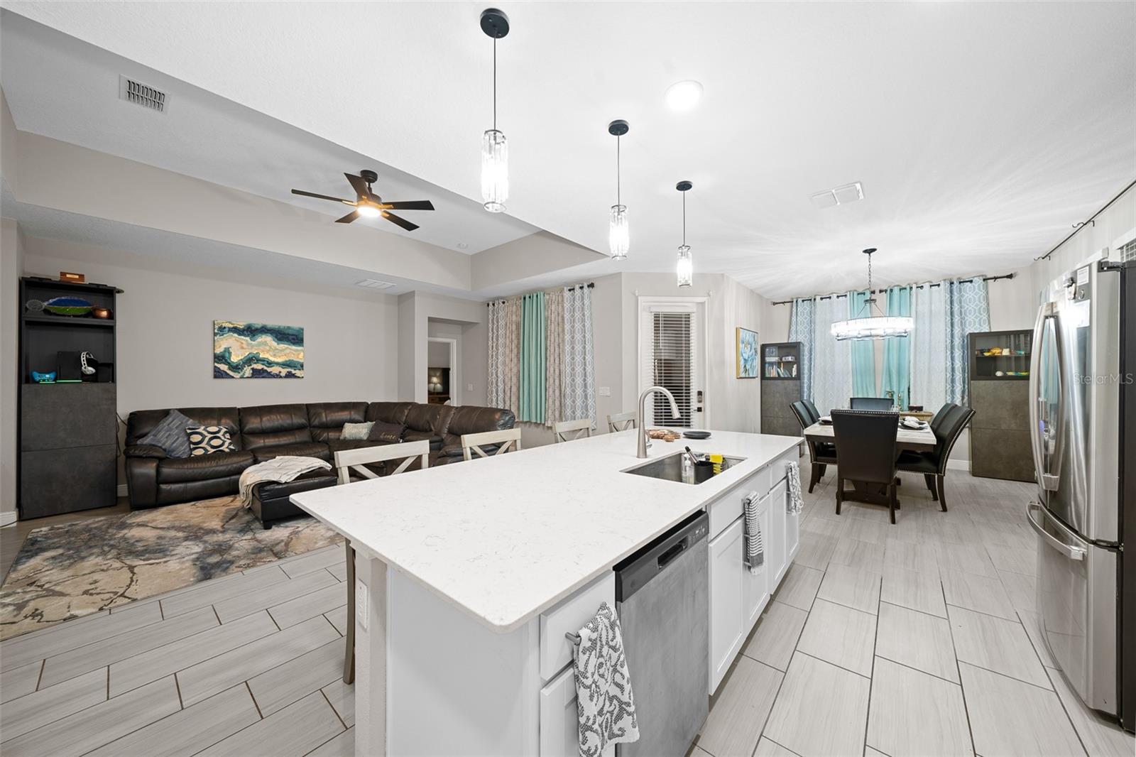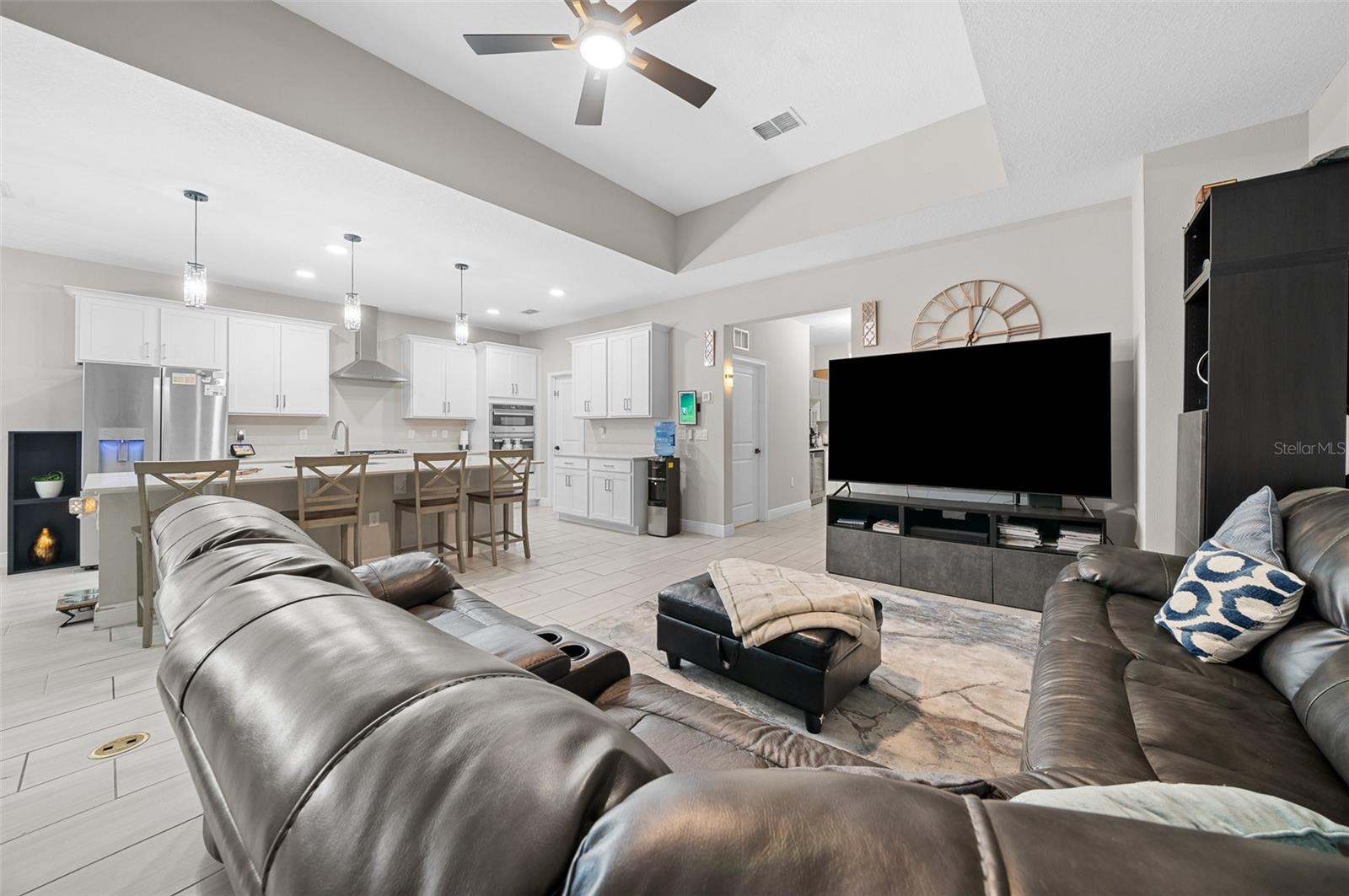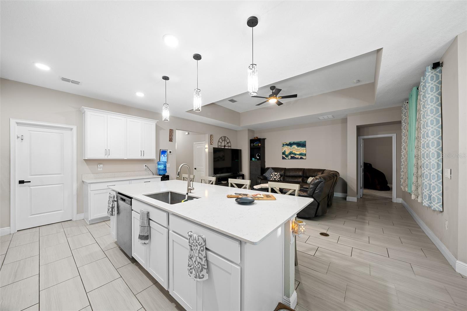 Uma ou mais fotos foram virtualmente encenadas. A casa perfeita que você esperava no desejável bairro Bellechase nas Villages está aqui! Apresentando 3 quartos grandes com uma sala bônus/flexível que pode facilmente ser usada como um 4º quarto! Também possui 3 banheiros completos, closets, bar de café da manhã e bar de café/vinho com refrigerador de vinho e prateleiras personalizadas! Esta casa inteligente é uma nova versão do sempre popular modelo Brindley da Lennar, apresentando tudo, desde um layout moderno e arejado até ambientes internos. oportunidades ao ar livre em uma área de pátio coberta e considerável! A área principal é de tábuas cerâmicas com carpete nos quartos. A cozinha gourmet apresenta de tudo, desde bancadas de quartzo a armários extra altos com eletrodomésticos GE de última geração e lavadora e secadora combinando na lavanderia! A casa está perfeitamente posicionada em um terreno de esquina enorme. Esta casa é a mistura perfeita de acabamentos de luxo equilibrados com funcionalidade e preço acessível.