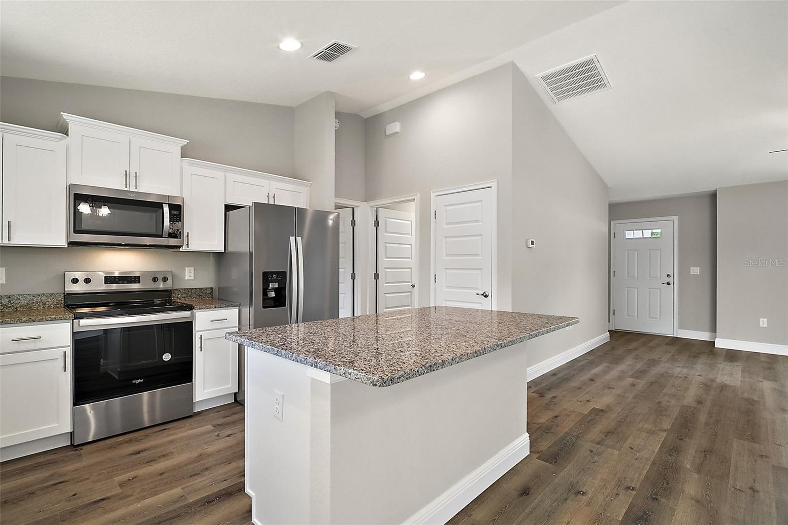 Em um terreno altamente desejável, esta casa possui 3 quartos com 2 banheiros completos. Viva de forma ampla com tetos abobadados ao entrar no layout de conceito aberto. A cozinha Eat-In, incluindo uma despensa convenientemente posicionada, é ideal para entretenimento com uma ilha grande com vista para a área de estar principal. A suíte principal possui tetos retangulares, closet, pia dupla e chuveiro embutido em azulejos. As características da casa incluem bancadas de granito e armários de madeira com fechamento suave. O piso em estilo de tábua é instalado em toda a casa e SEM TAPETE! O armário de roupa de cama no corredor de hóspedes e o armário interno na lavanderia são ideais para armazenamento adicional. Saia em seu pátio traseiro coberto - ventilador de teto incluído - com vista para seu quintal. A garantia do construtor está incluída - esta casa é imperdível. Pergunte sobre o fechamento de concessões de custos.